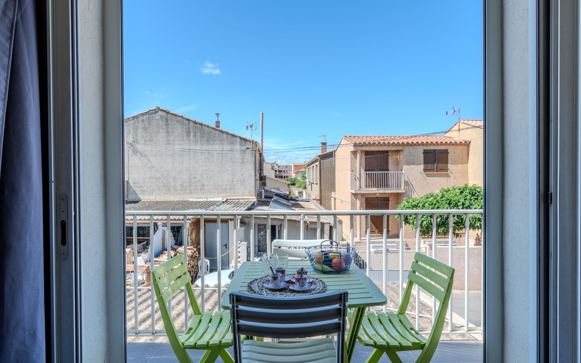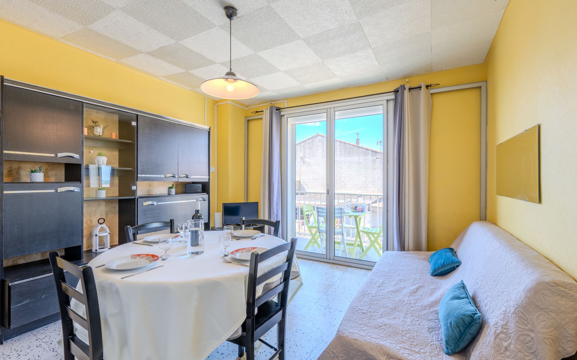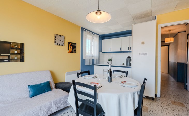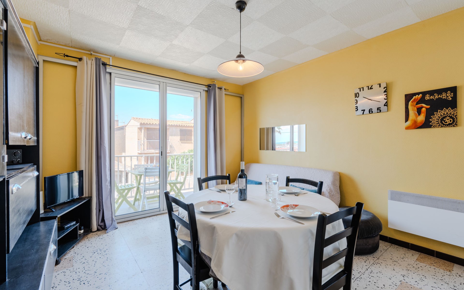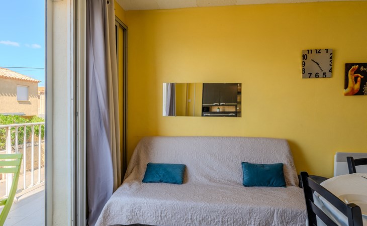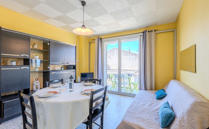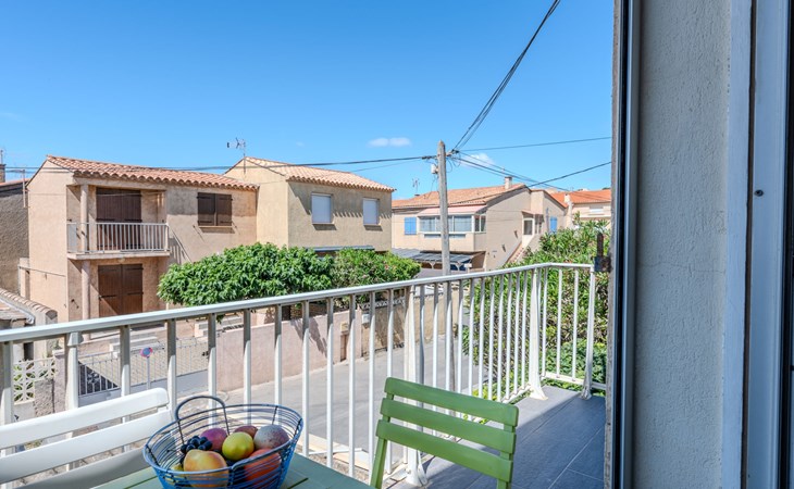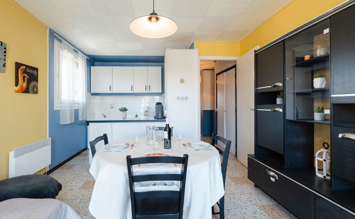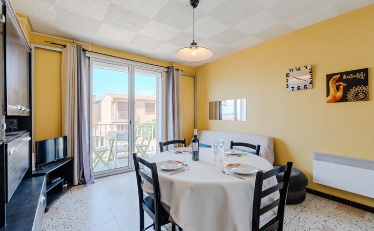 Residence "Vicente". In the centre of Saint Pierre La Mer, in a busy position, 150 m from the sea, road to cross. Public parking 100 m. Shop 10 m, restaurant, bar 200 m, bus stop 80 m, diving center 3.5 km. Sports harbour 3.5 km, riding stable 2.8 km. Nearby attractions: Réseve Africaine de Sigean 36 km, Cité de Carcassonne 78 km, Espace balnéoludique de Gruissan 11 km. The keys‘ handover takes place by the agency Interhome in Narbonne Plage, 3 km. This small residence with 3 apartment is situated above a restaurant.