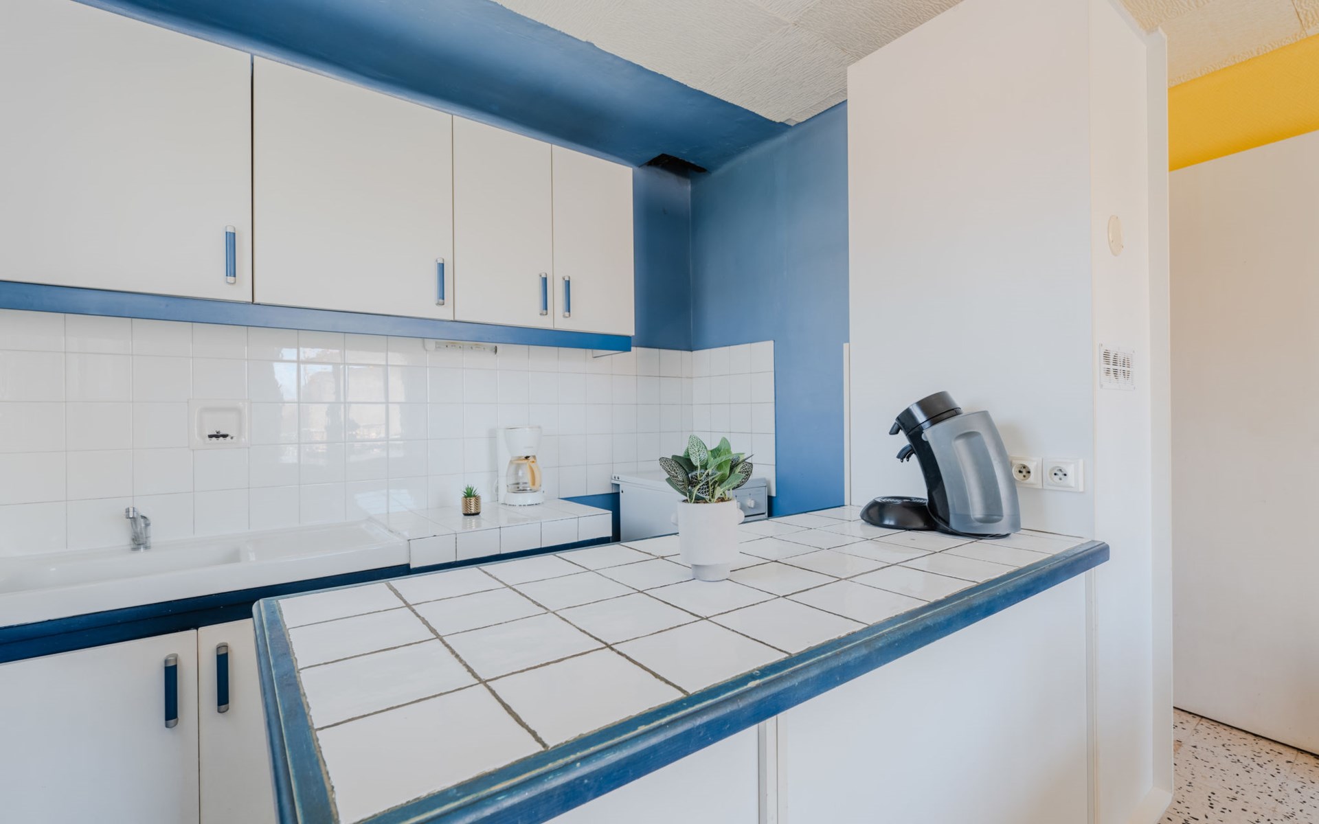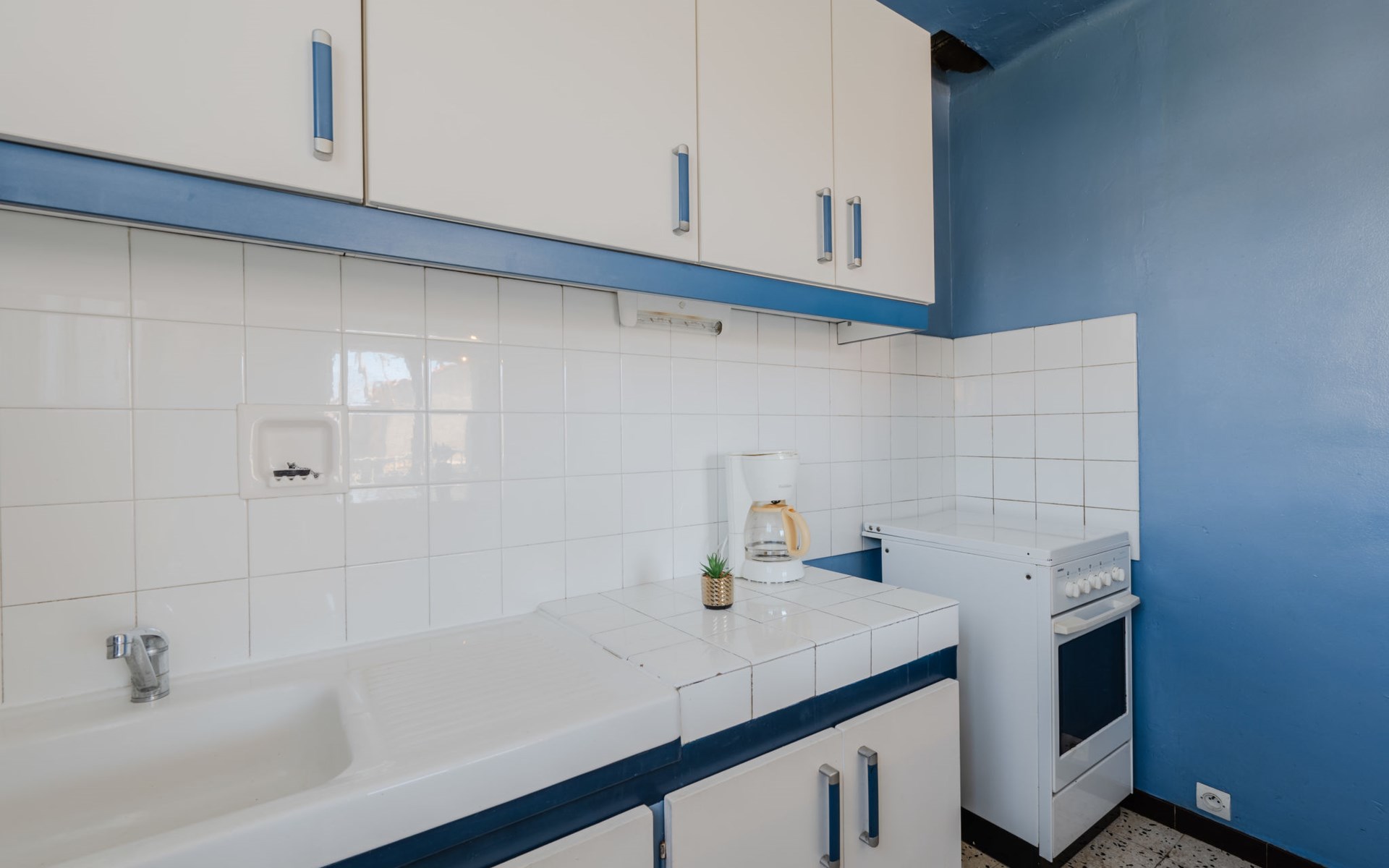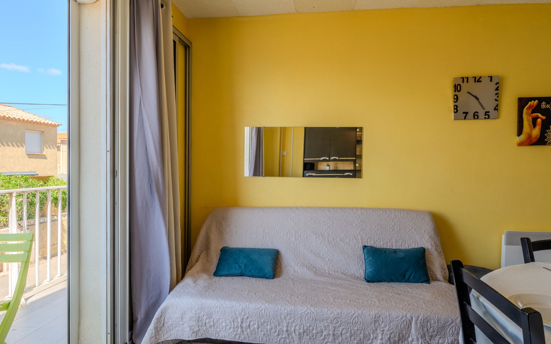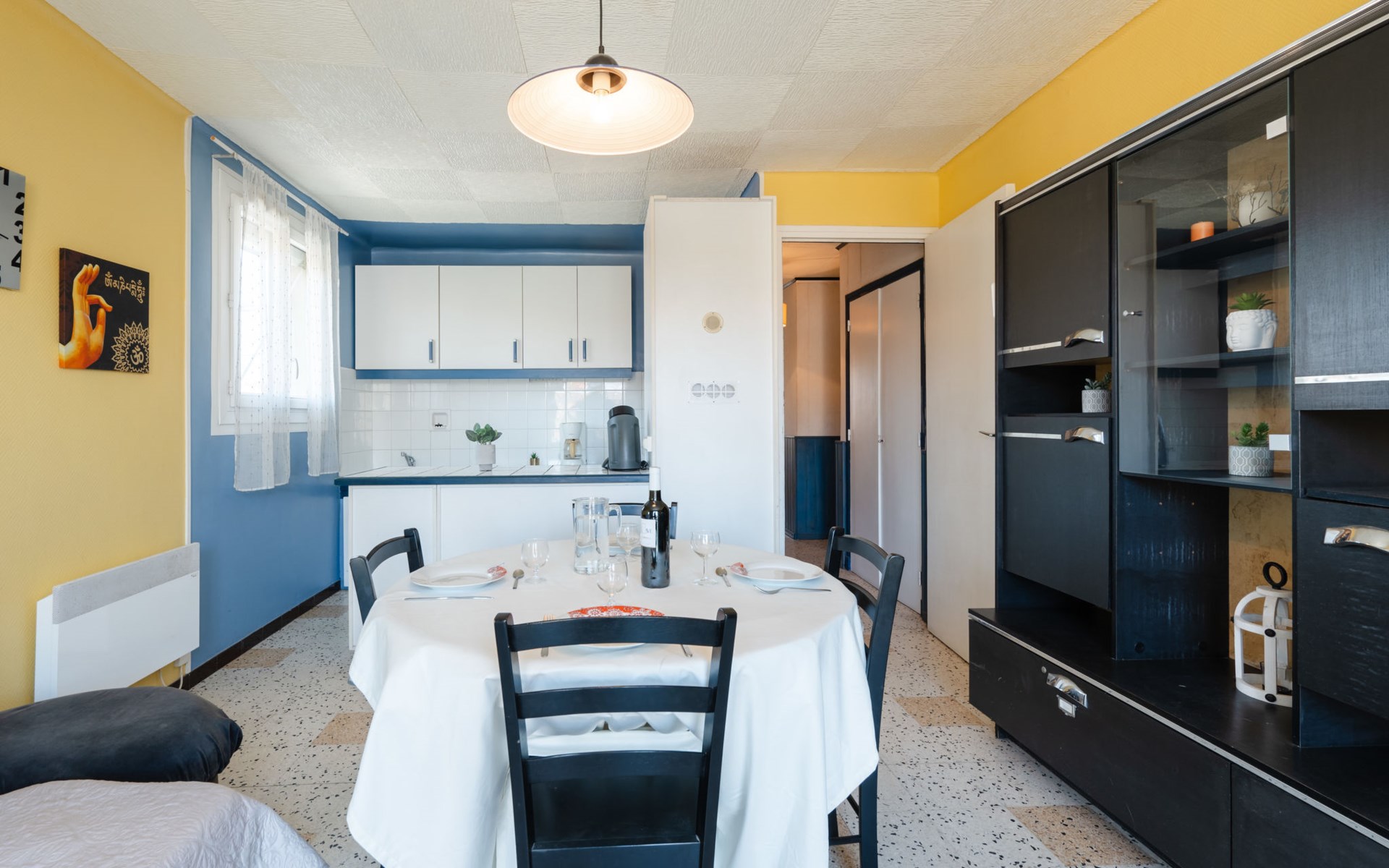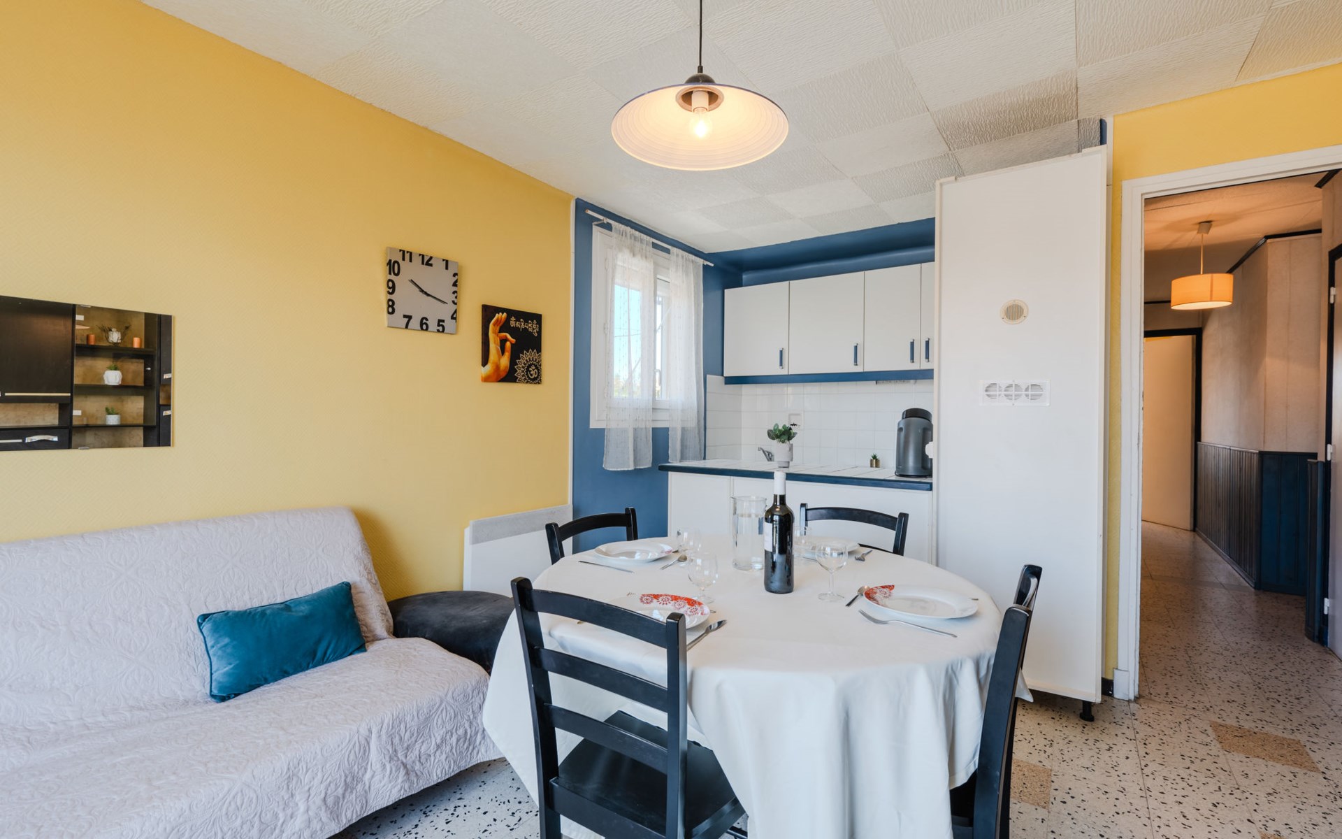 Residence "Vicente". In the centre of Saint Pierre La Mer, in a busy position, 150 m from the sea, road to cross. Public parking 100 m. Shop 10 m, restaurant, bar 200 m, bus stop 80 m, diving center 3.5 km. Sports harbour 3.5 km, riding stable 2.8 km. Nearby attractions: Réseve Africaine de Sigean 36 km, Cité de Carcassonne 78 km, Espace balnéoludique de Gruissan 11 km. The keys‘ handover takes place by the agency Interhome in Narbonne Plage, 3 km. This small residence with 3 apartment is situated above a restaurant.