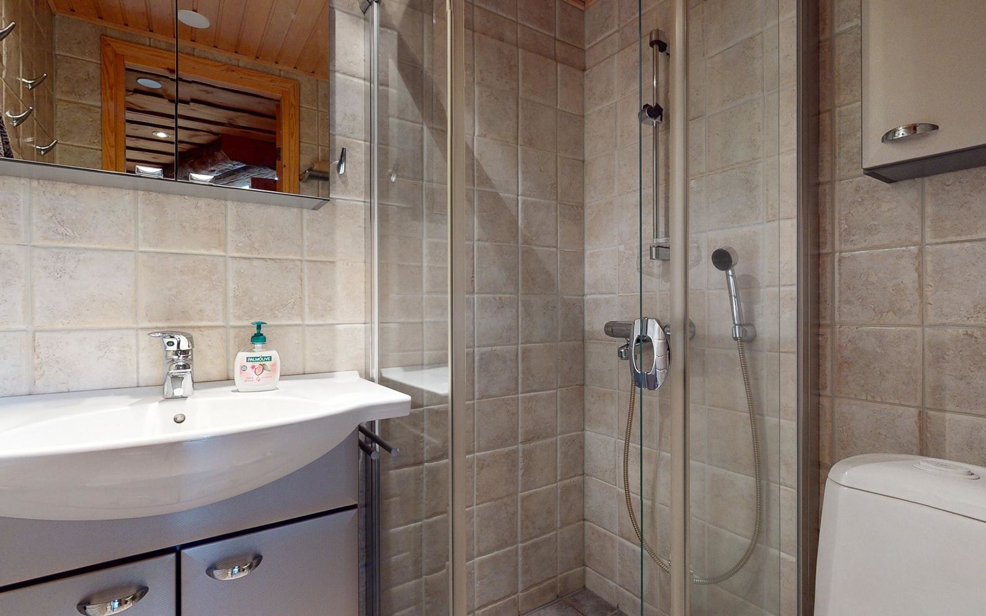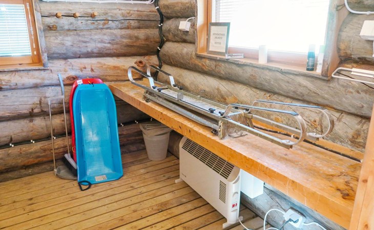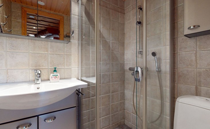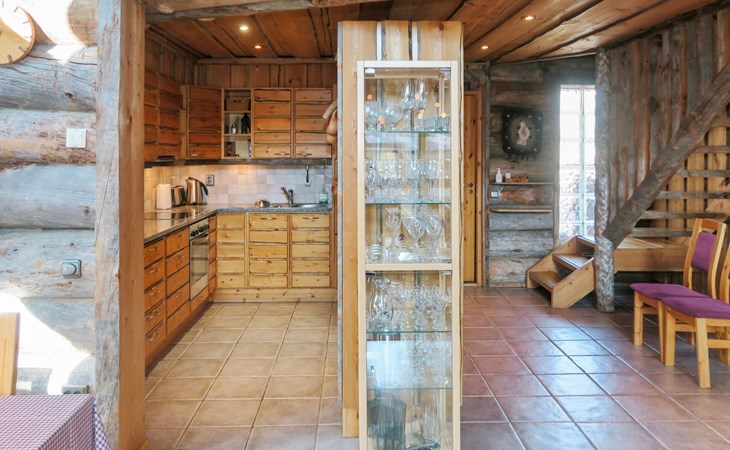 The 110 square meter cabin has a kitchen/living room, 3 bedrooms, a bathroom, a sauna, a utility room, 2 toilets and a living room on the upper floor. A warm ski maintenance room in the outbuilding.