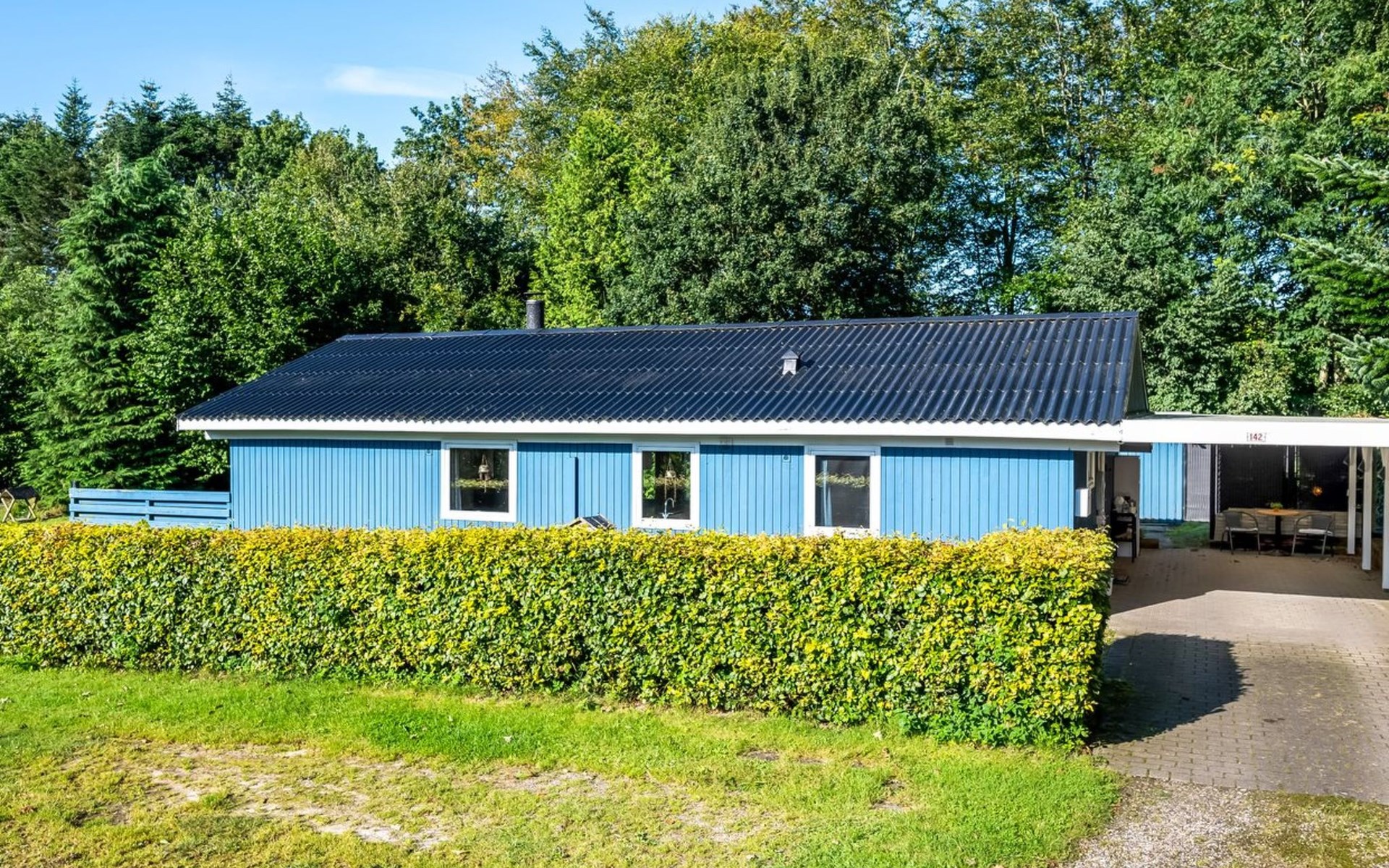 Single-family house, built in 1977. 30 km from the sea. Private: natural state property 850 m2. Barbecue. In the house: washing machine. Parking at the house. Carport. Grocery 1 km. Golf course 150 m.