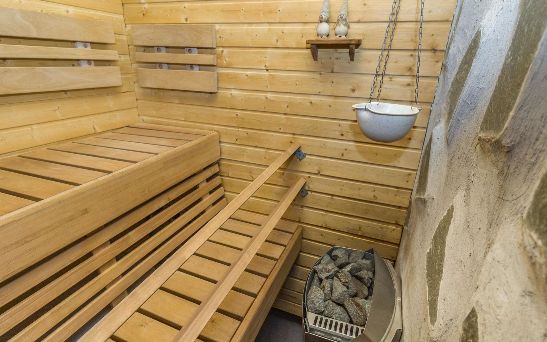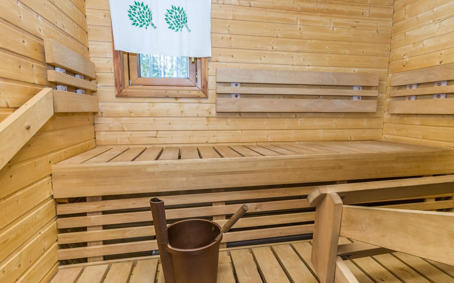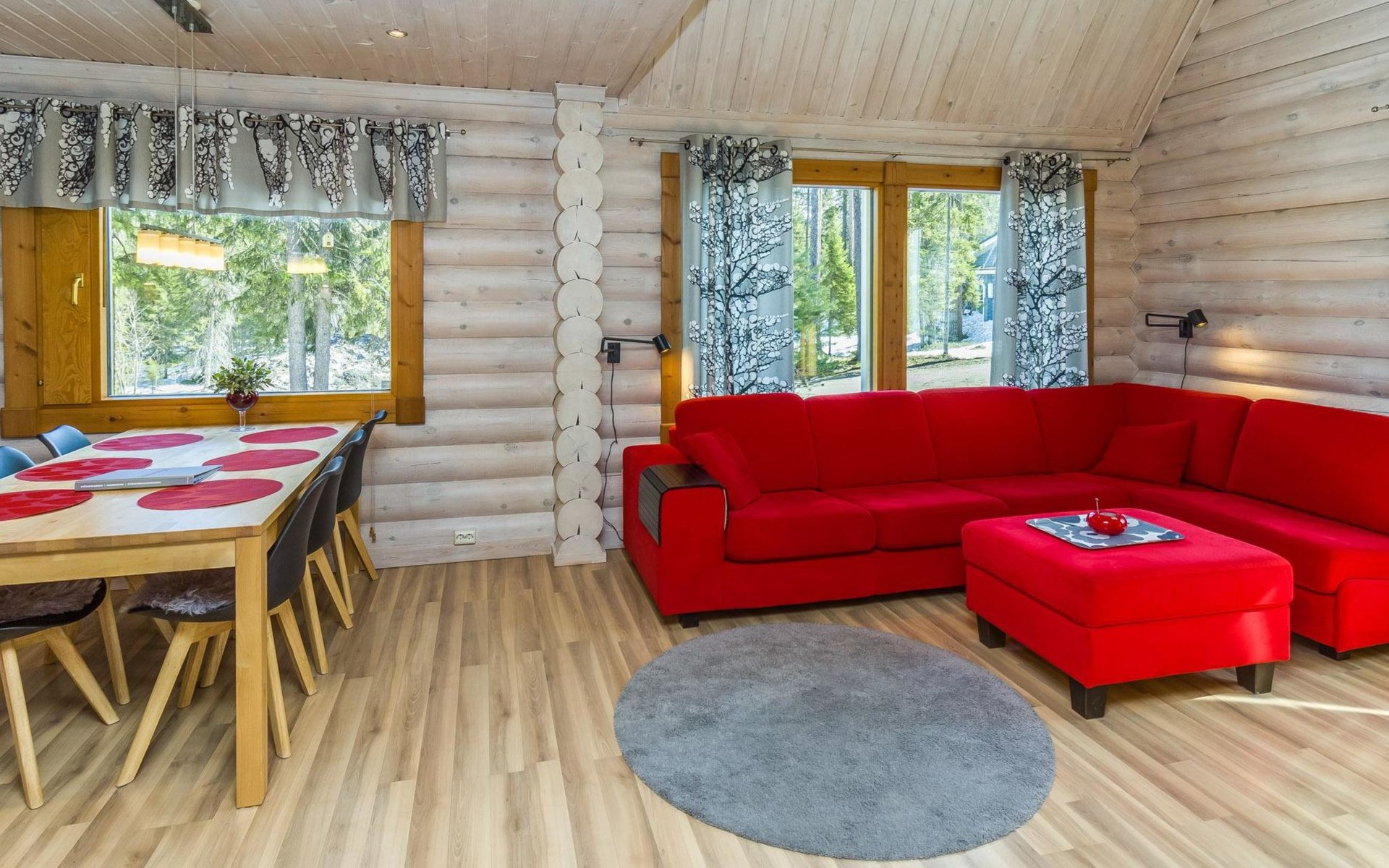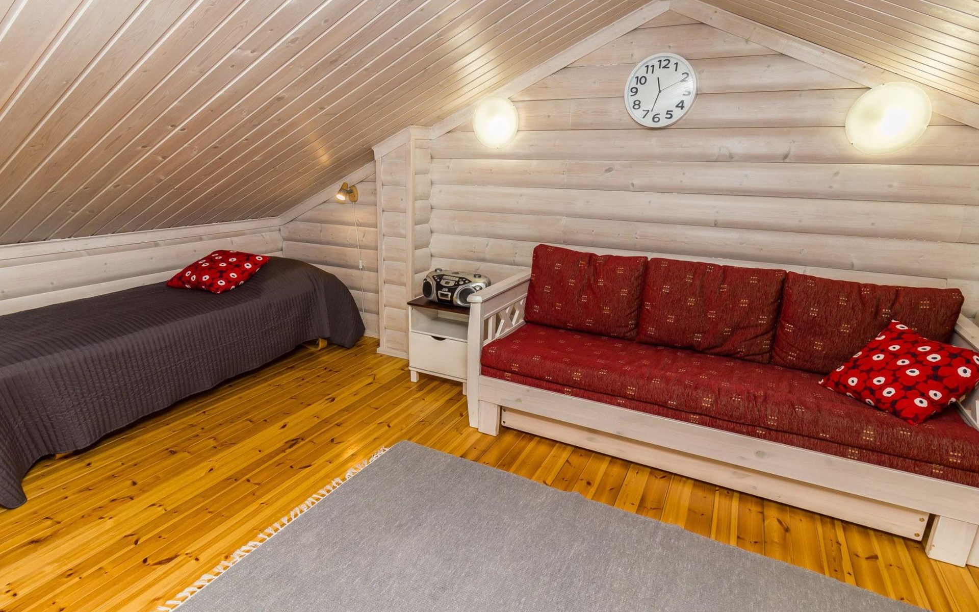 Welcome to enjoy a holiday in this magnificent log-built semi-detached cabin, which offers ideal conditions for both families and groups of friends. This bright and spacious cabin is perfect for relaxing and enjoying nature year-round. The ground floor features a bedroom with a double bed. The spacious loft has two single beds, a sofa bed for two, and additional mattresses. The cabin accommodates a maximum of 6 people, so there is plenty of space for everyone. The living room/kitchen allows you to prepare delicious meals during your stay, and the electric sauna provides relaxing moments after an active day.