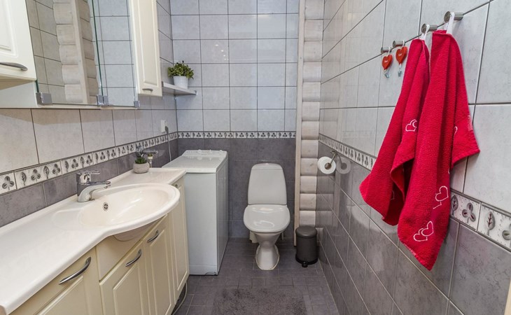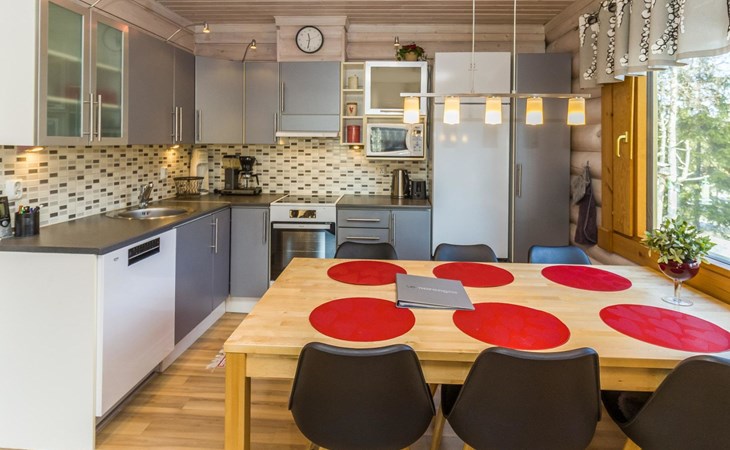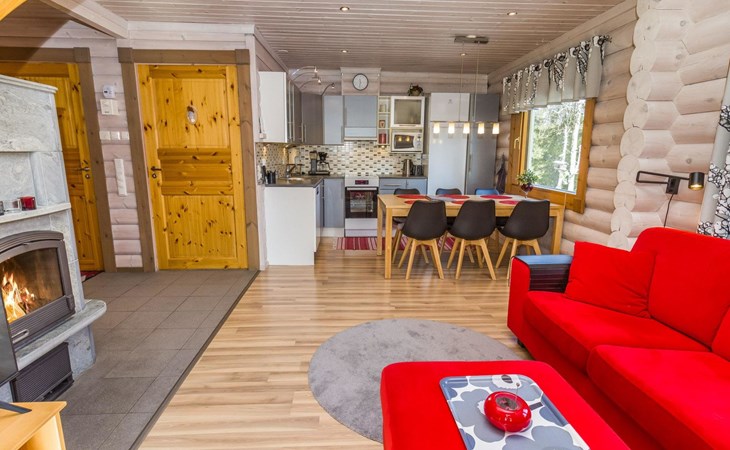 The location is excellent, with ski trails passing right by and a Ski bus stop just about 80 meters away, which conveniently takes you to the diverse services of Ruka village. Here you can spend your holiday in peace, enjoying the unique nature of Ruka and Kuusamo in all seasons. Whether it's winter sports, hiking, or simply relaxing in a beautiful environment, this cabin offers the perfect base for your holiday. Come and experience an unforgettable holiday in the stunning landscapes of Ruka and Kuusamo! Book today! Additional equipment: Child safety gate at the top of the loft stairs. Pet fee/pet.