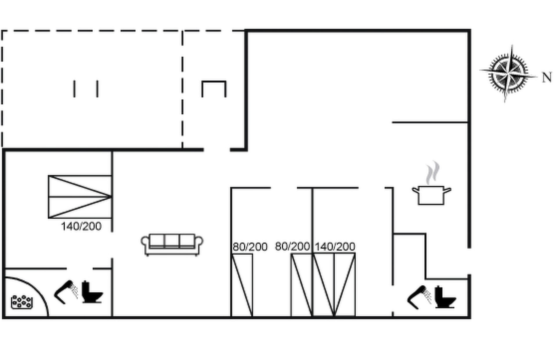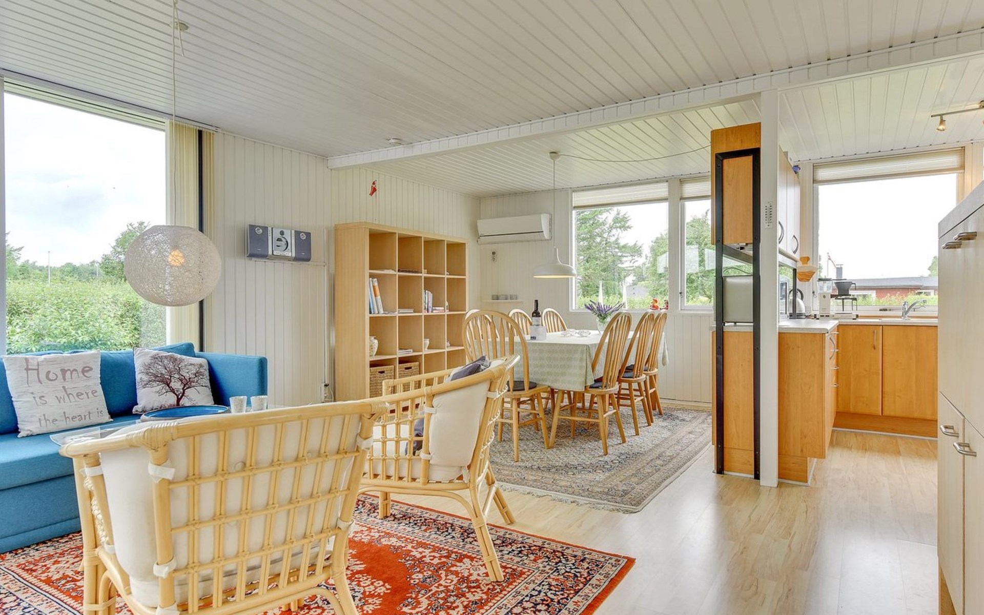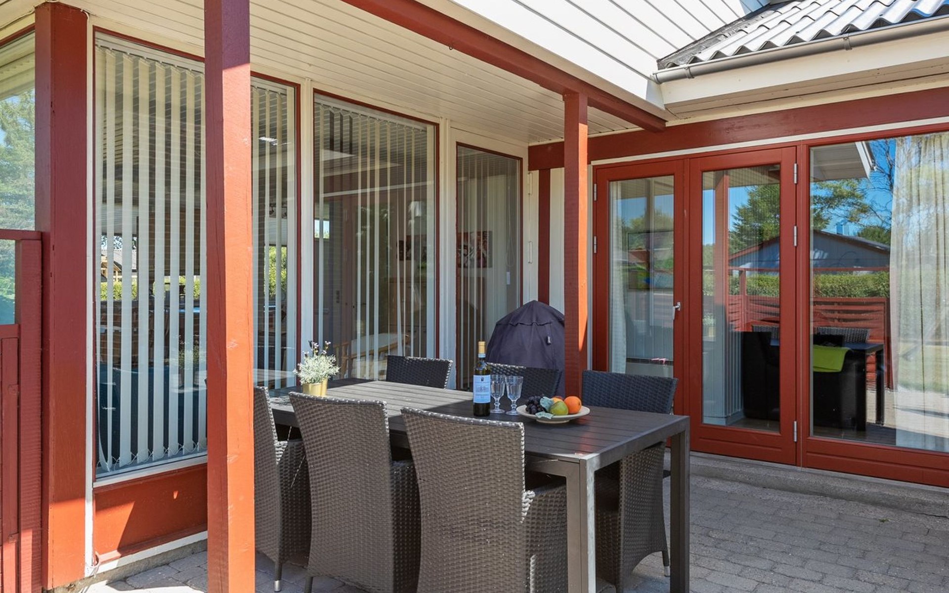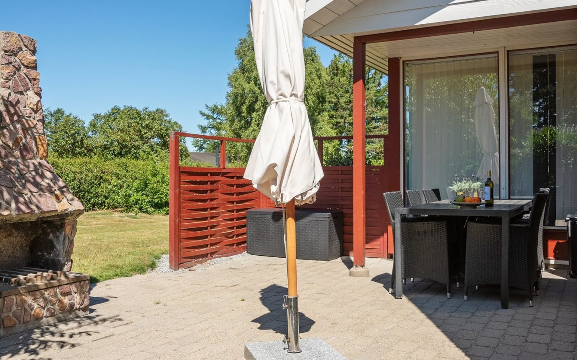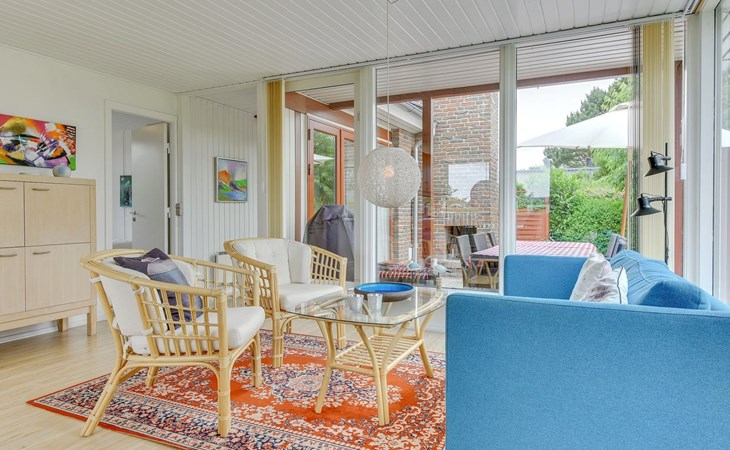 Single-family house, built in 1969. 200 m from the sea. Private: property 690 m2, well-kept garden. Terrace (30 m2), fireplace, children's playground (swing). In the house: washing machine. Parking at the house. Carport. Grocery 2.6 km. Golf course 6 km. The owner does not accept any youth groups.