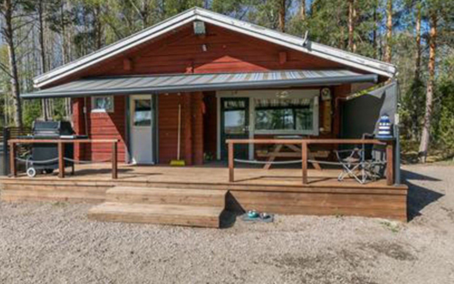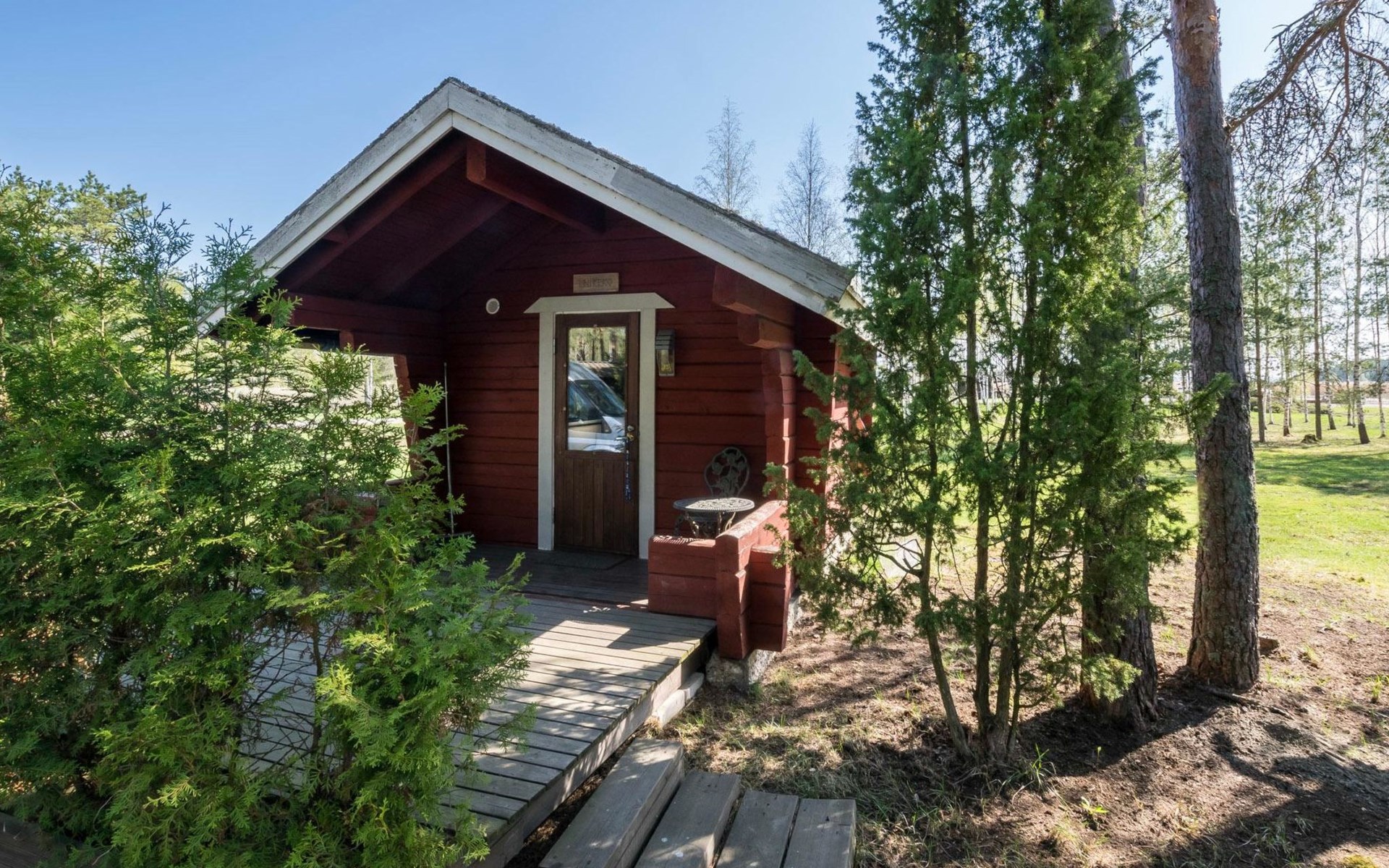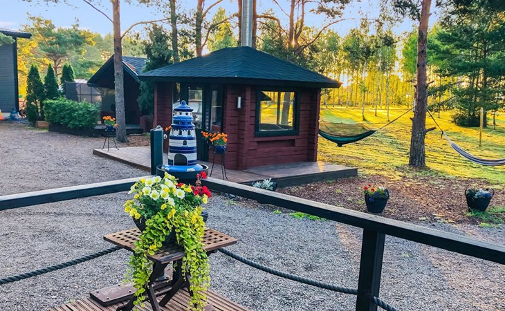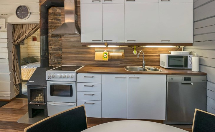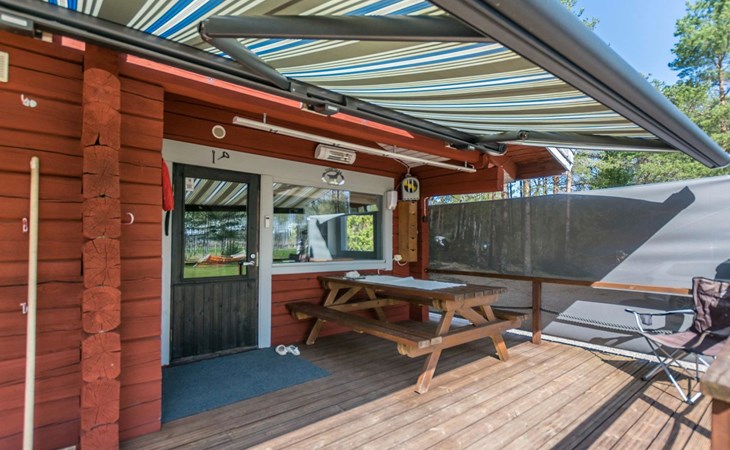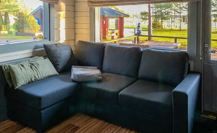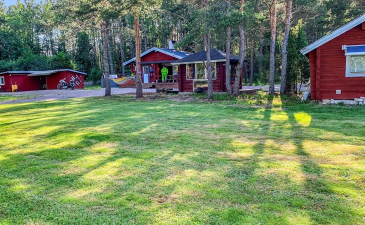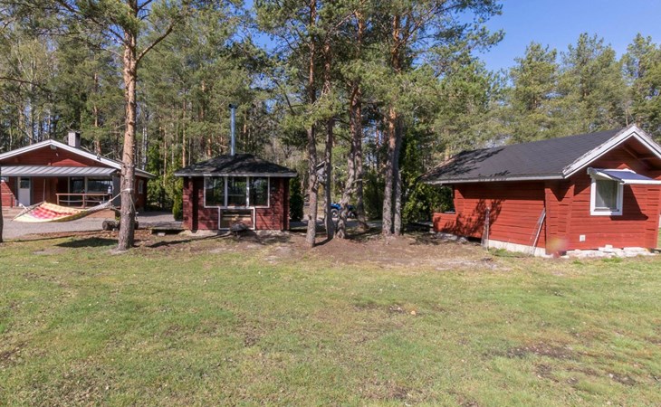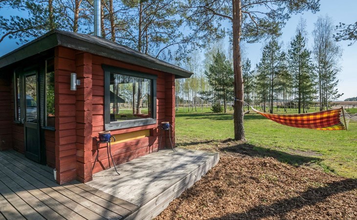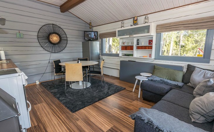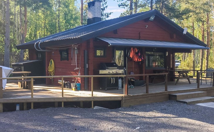 Log cottage 1996, living room sofa bed, kitchen, 1 sleeping area with double bed (160 cm), wood-heated sauna, shower, toilet. Terrace in front of the cottage, gas grill. Air source heat pump (also cooling feature).