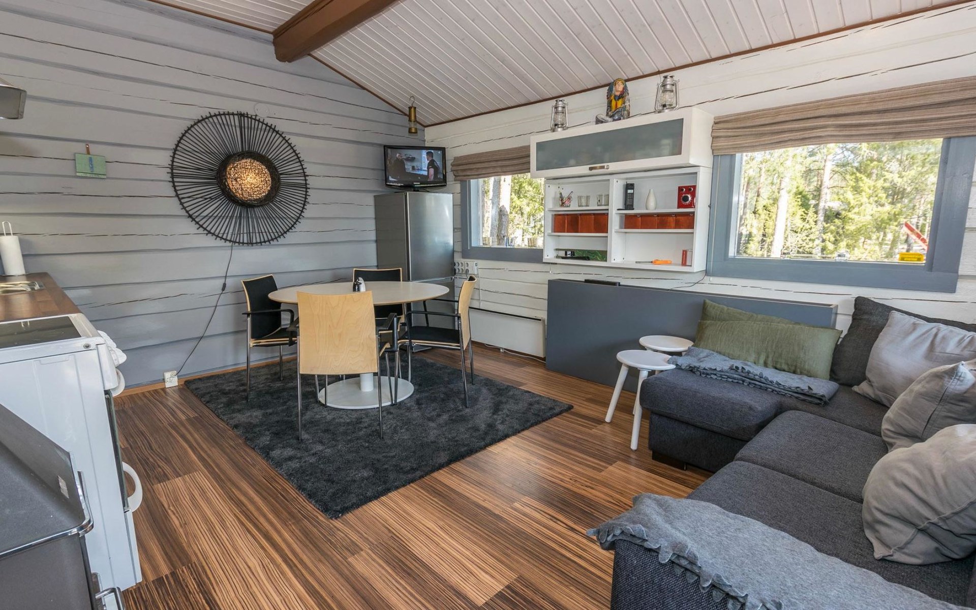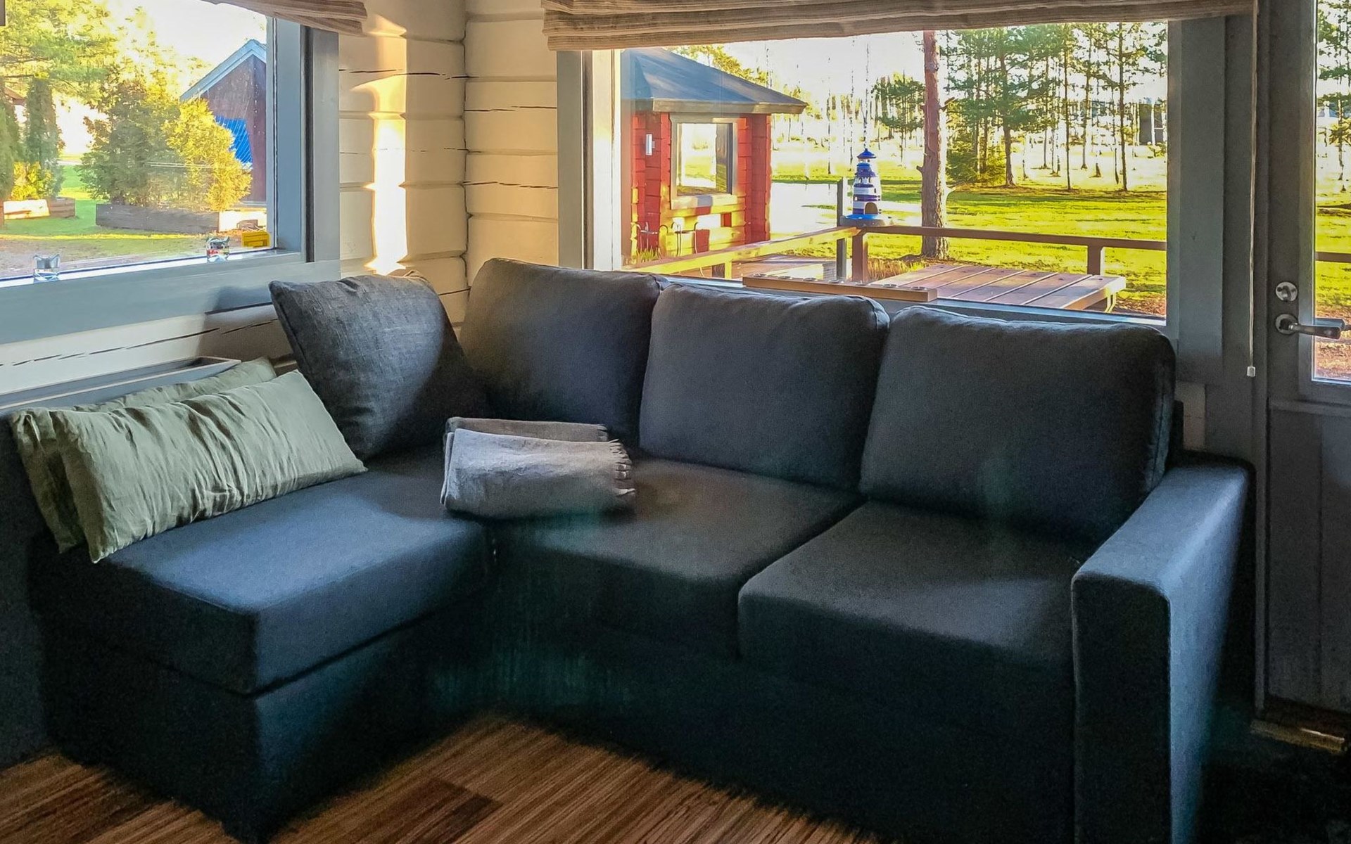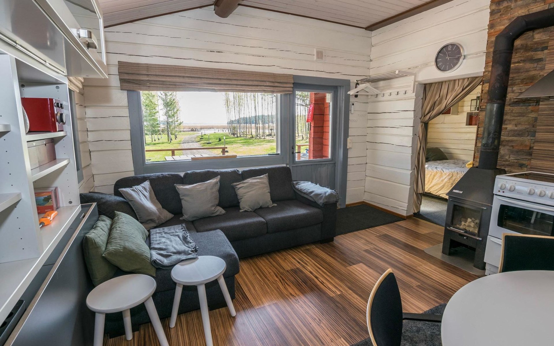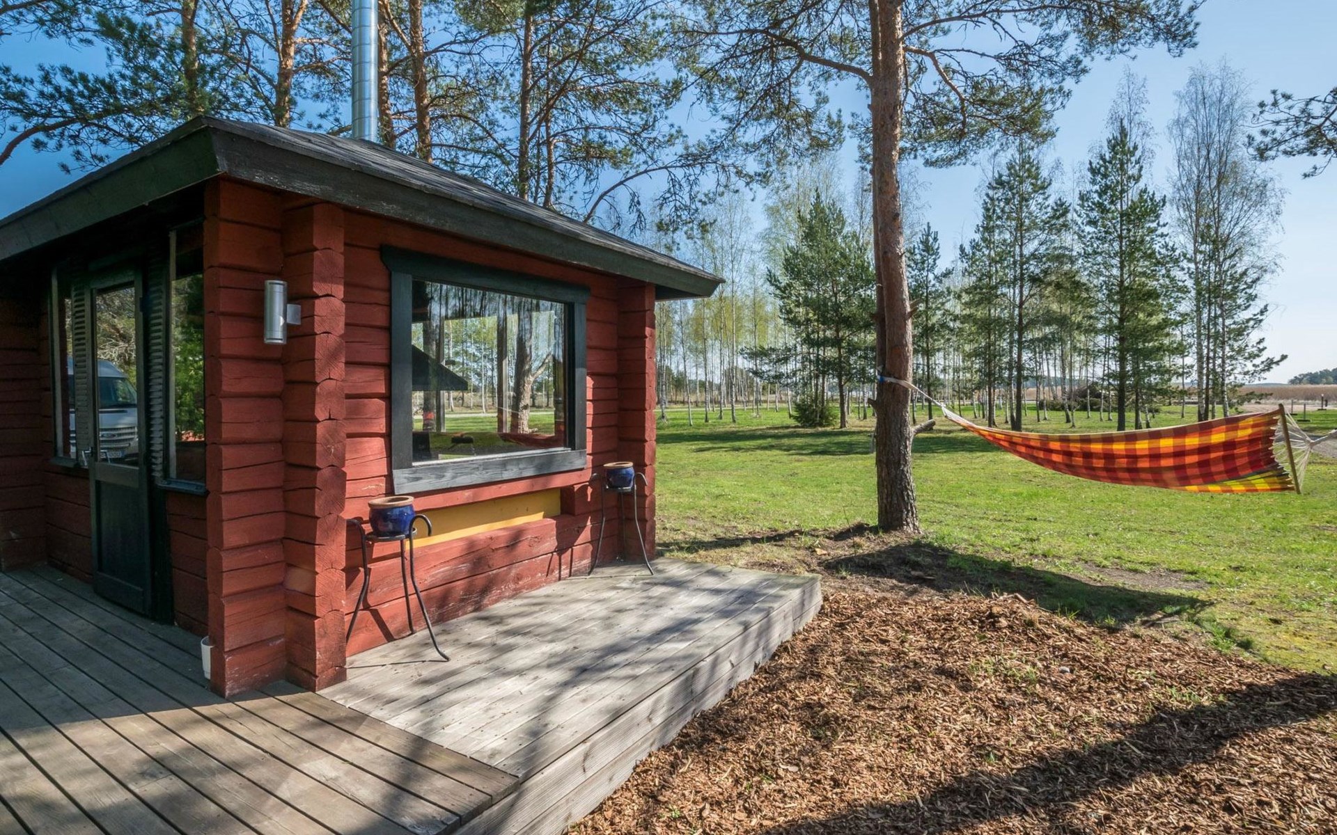 Log cottage 1996, living room sofa bed, kitchen, 1 sleeping area with double bed (160 cm), wood-heated sauna, shower, toilet. Terrace in front of the cottage, gas grill. Air source heat pump (also cooling feature).