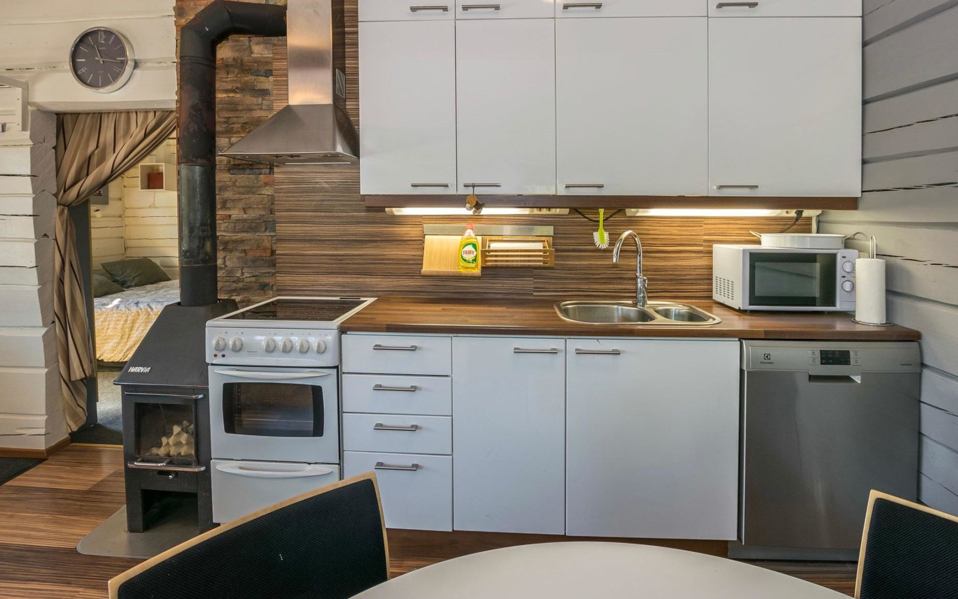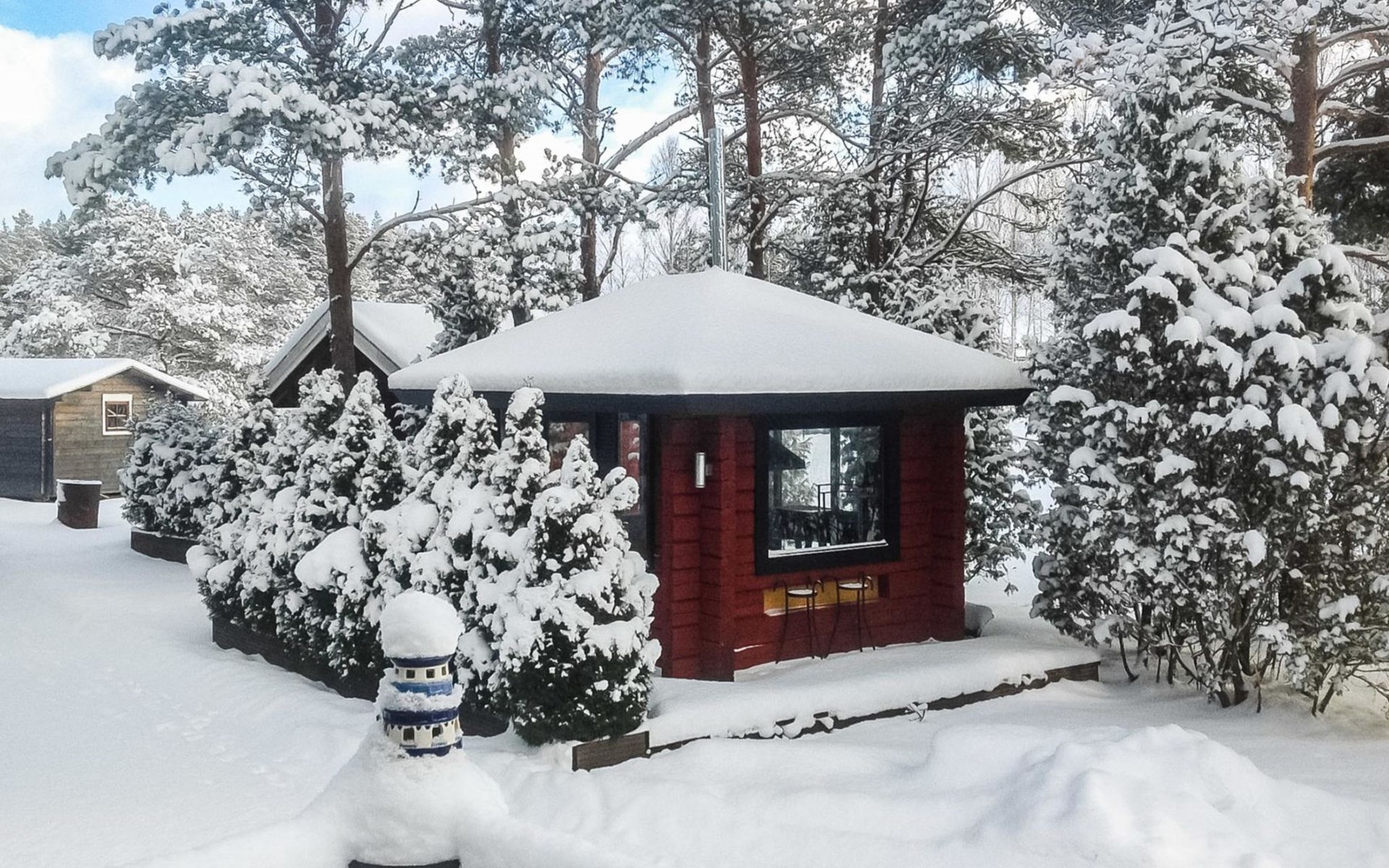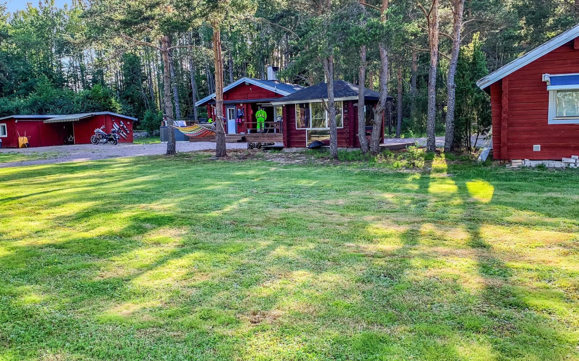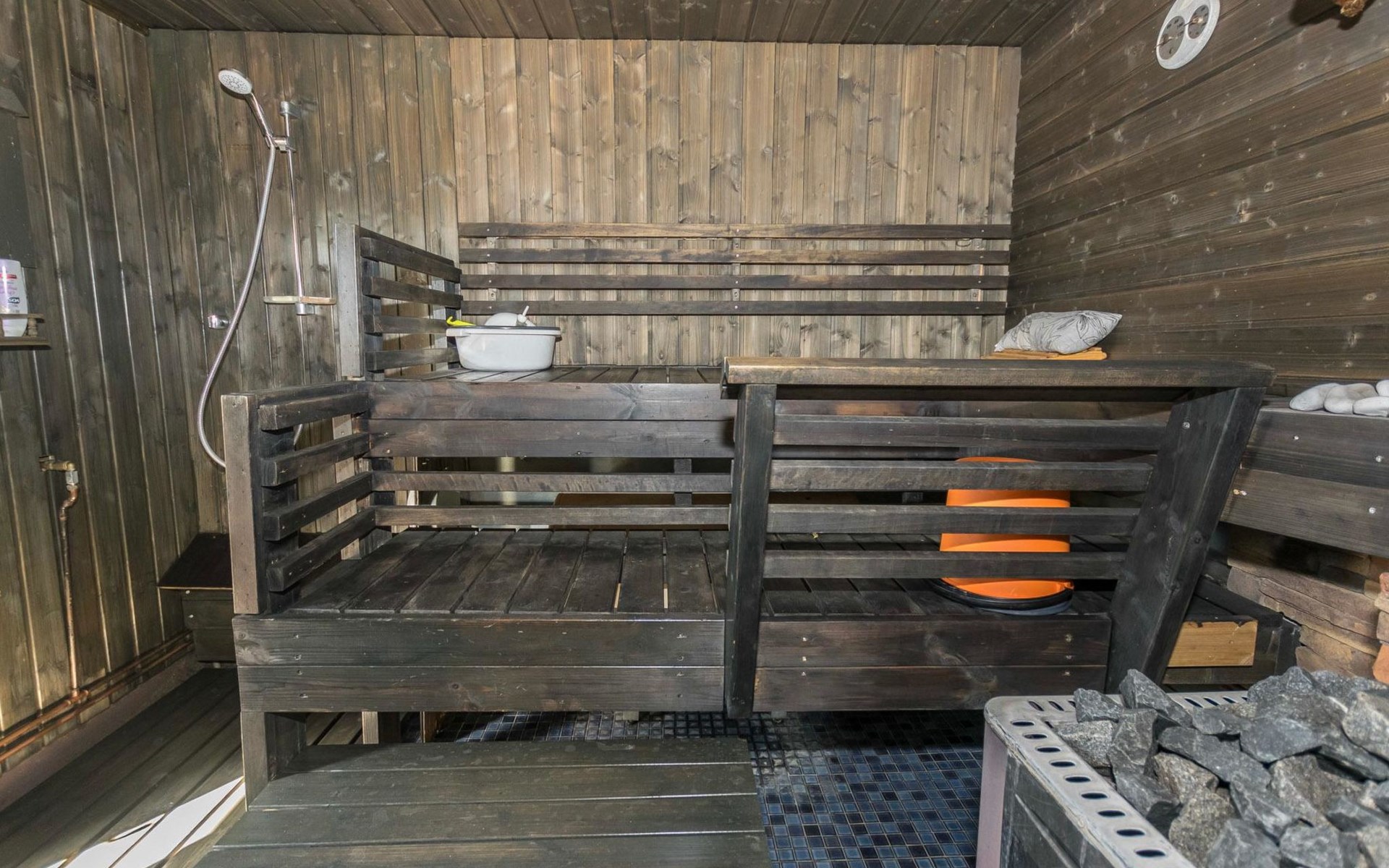 Log cottage 1996, living room sofa bed, kitchen, 1 sleeping area with double bed (160 cm), wood-heated sauna, shower, toilet. Terrace in front of the cottage, gas grill. Air source heat pump (also cooling feature).