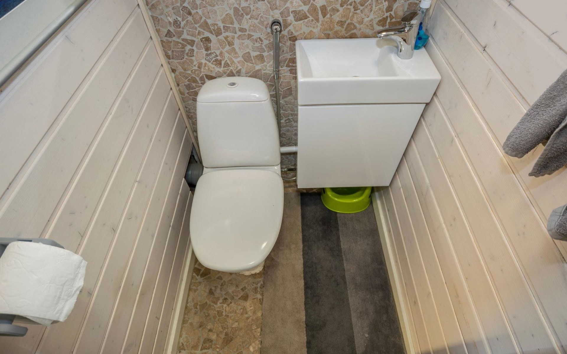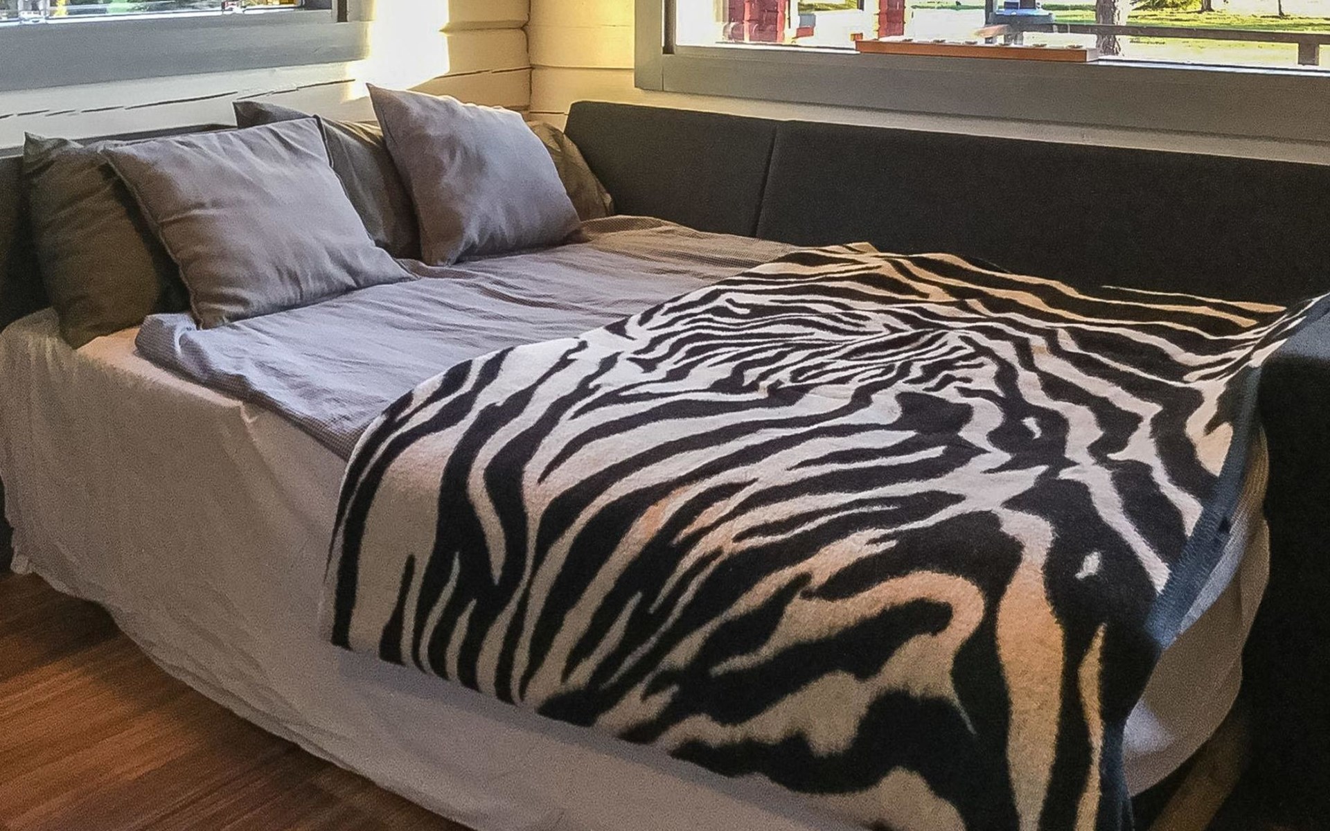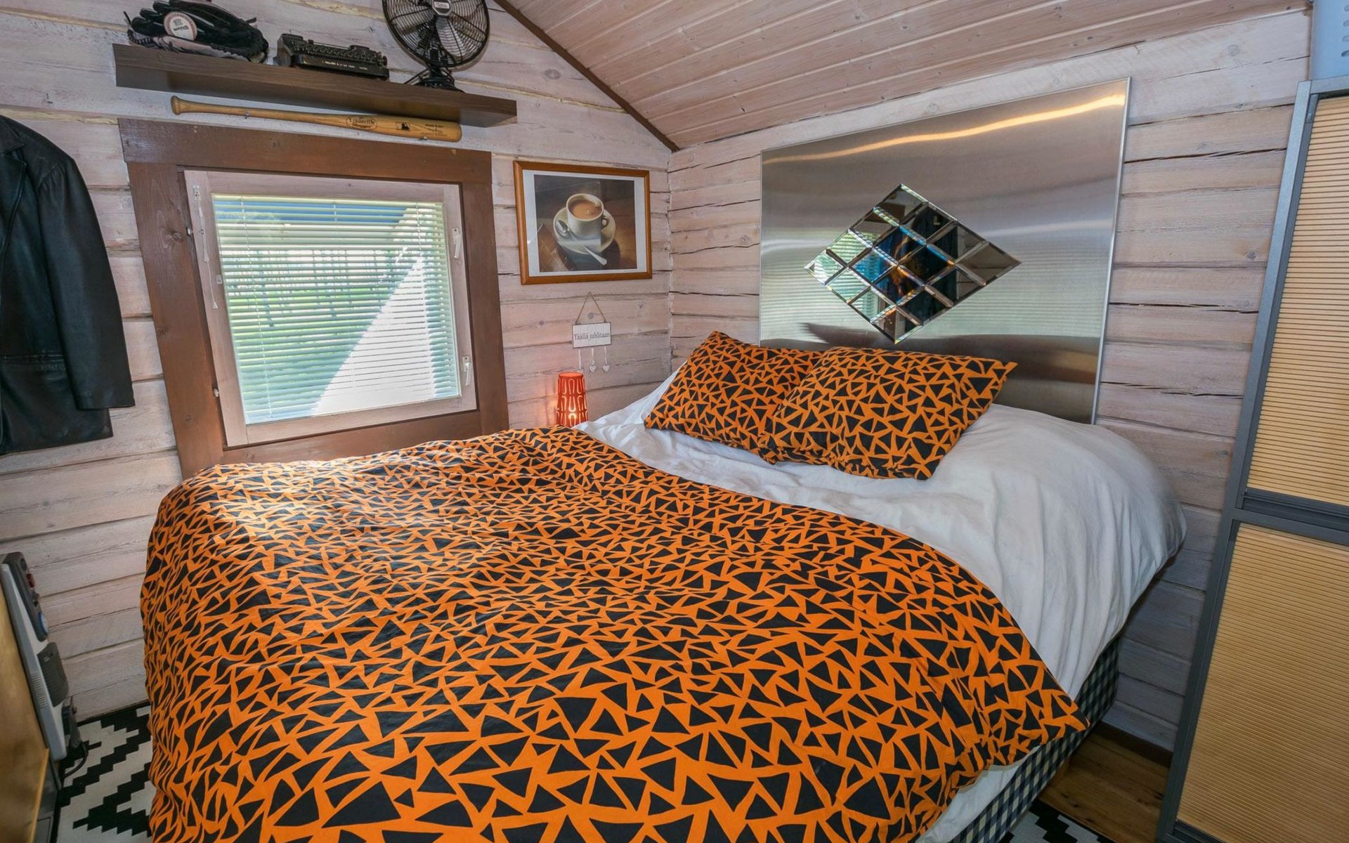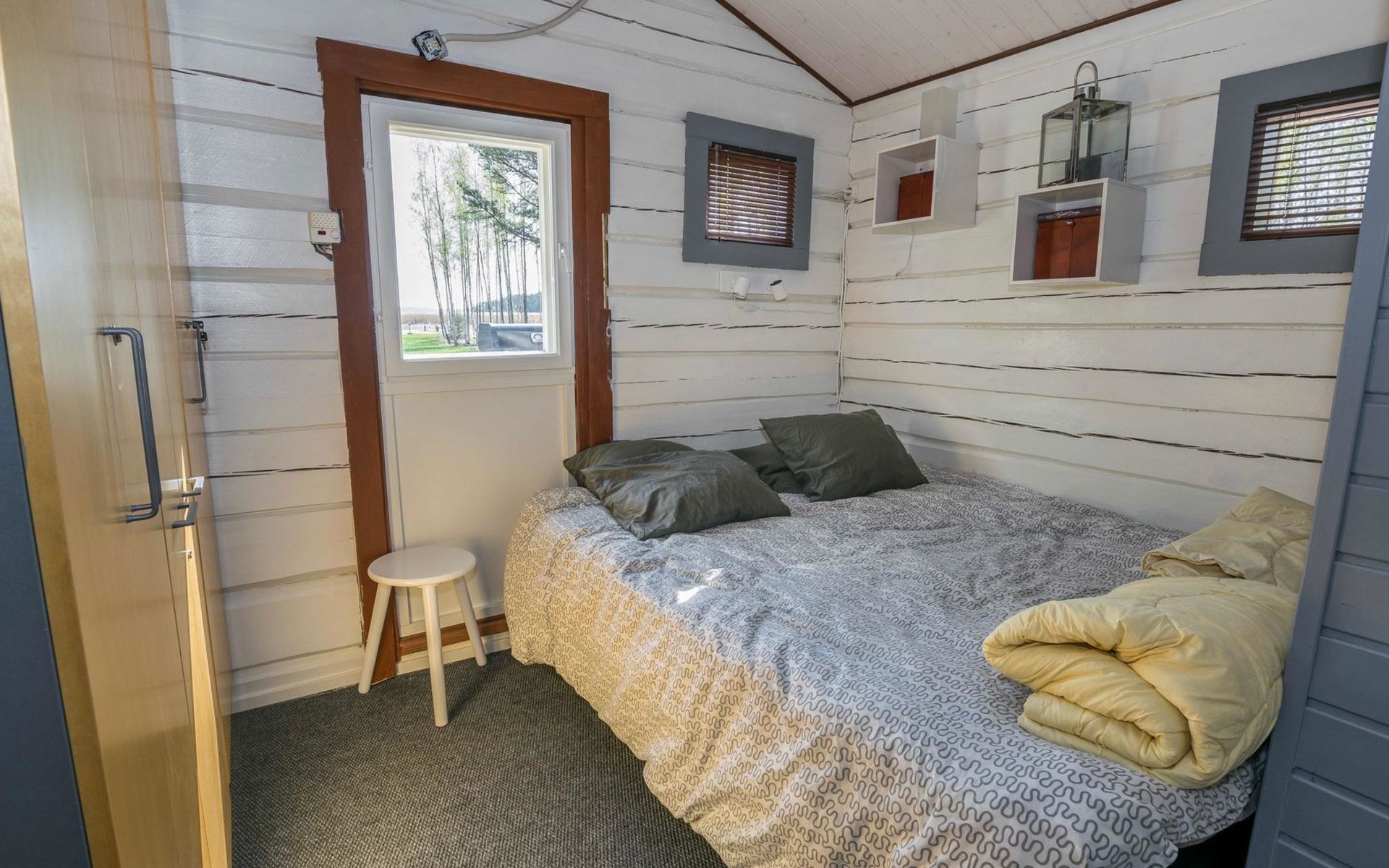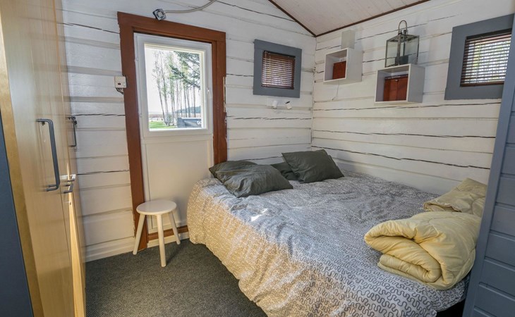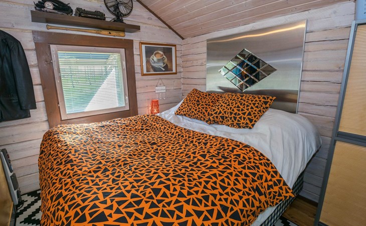 Separate backyard cottage (12 m²) with 160 cm wide double bed, fridge.