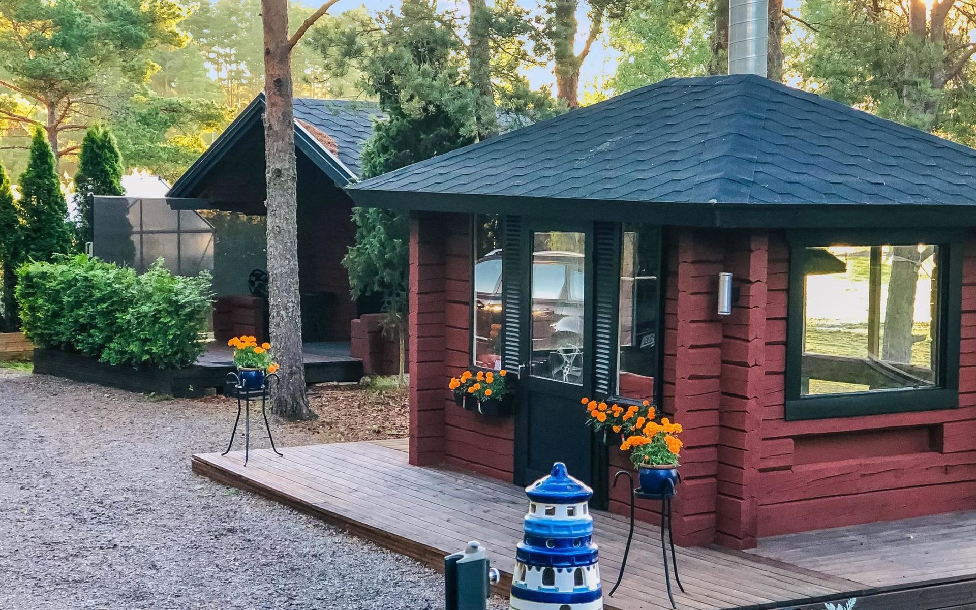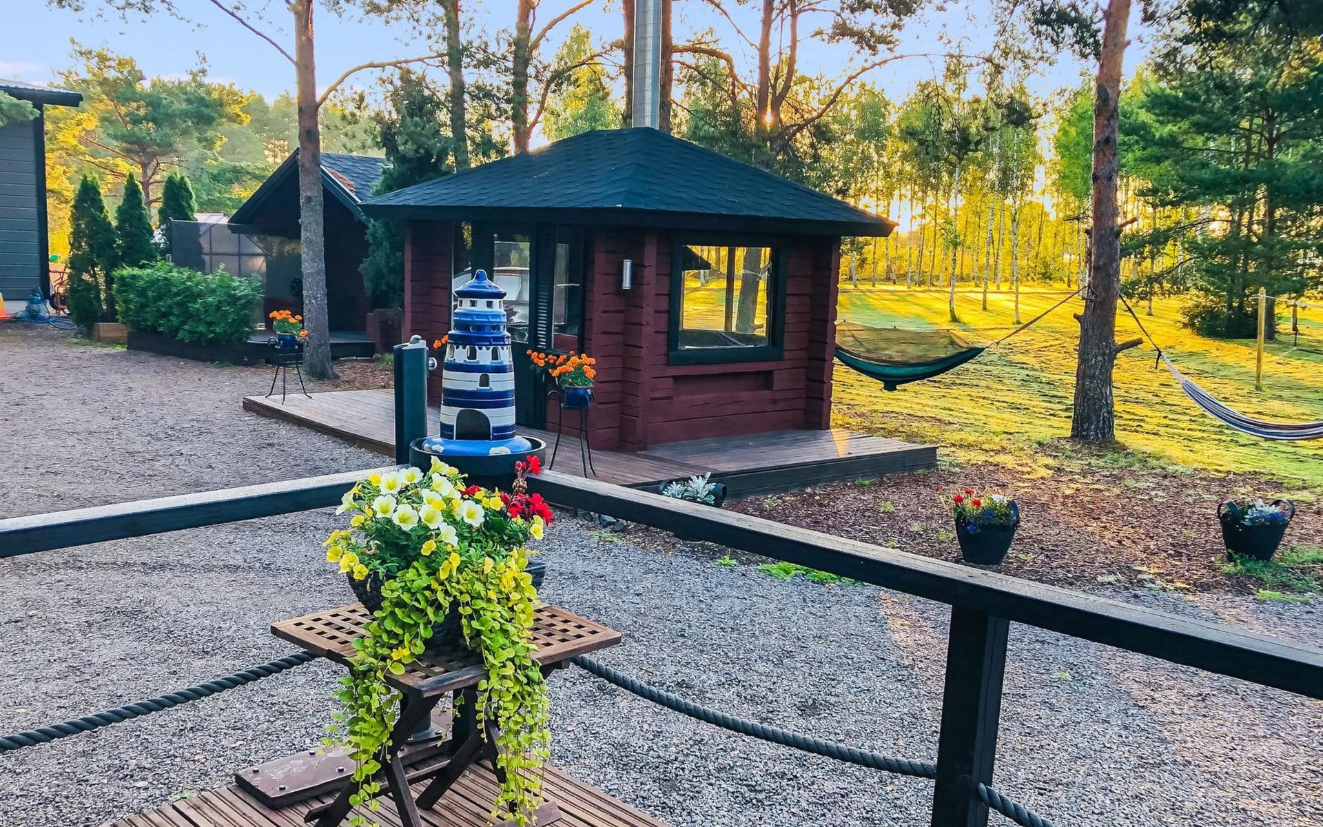 Surveillance cameras photographing the cottage's yard and cottage. The cameras are only on when there are no customers in the cottage.