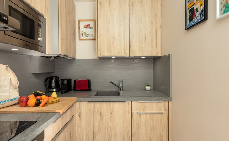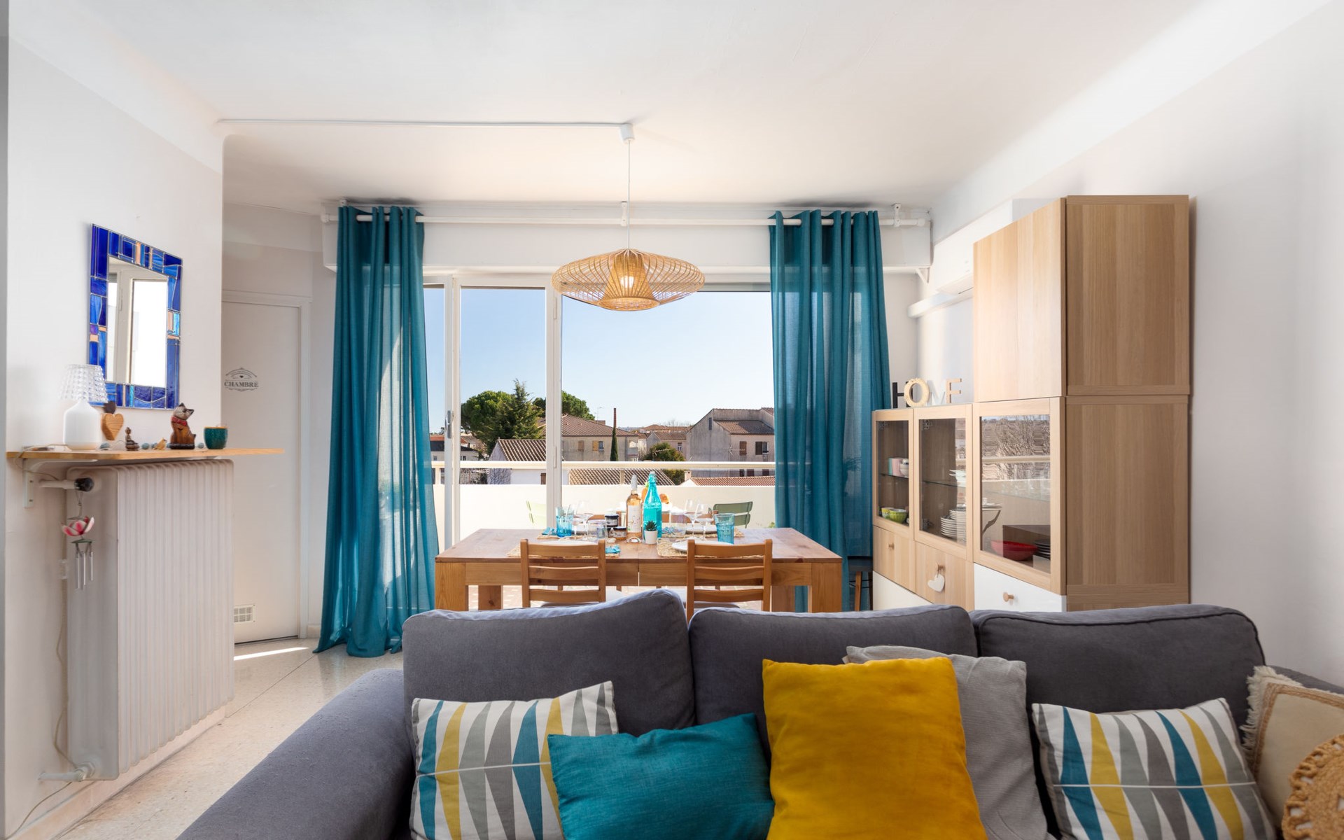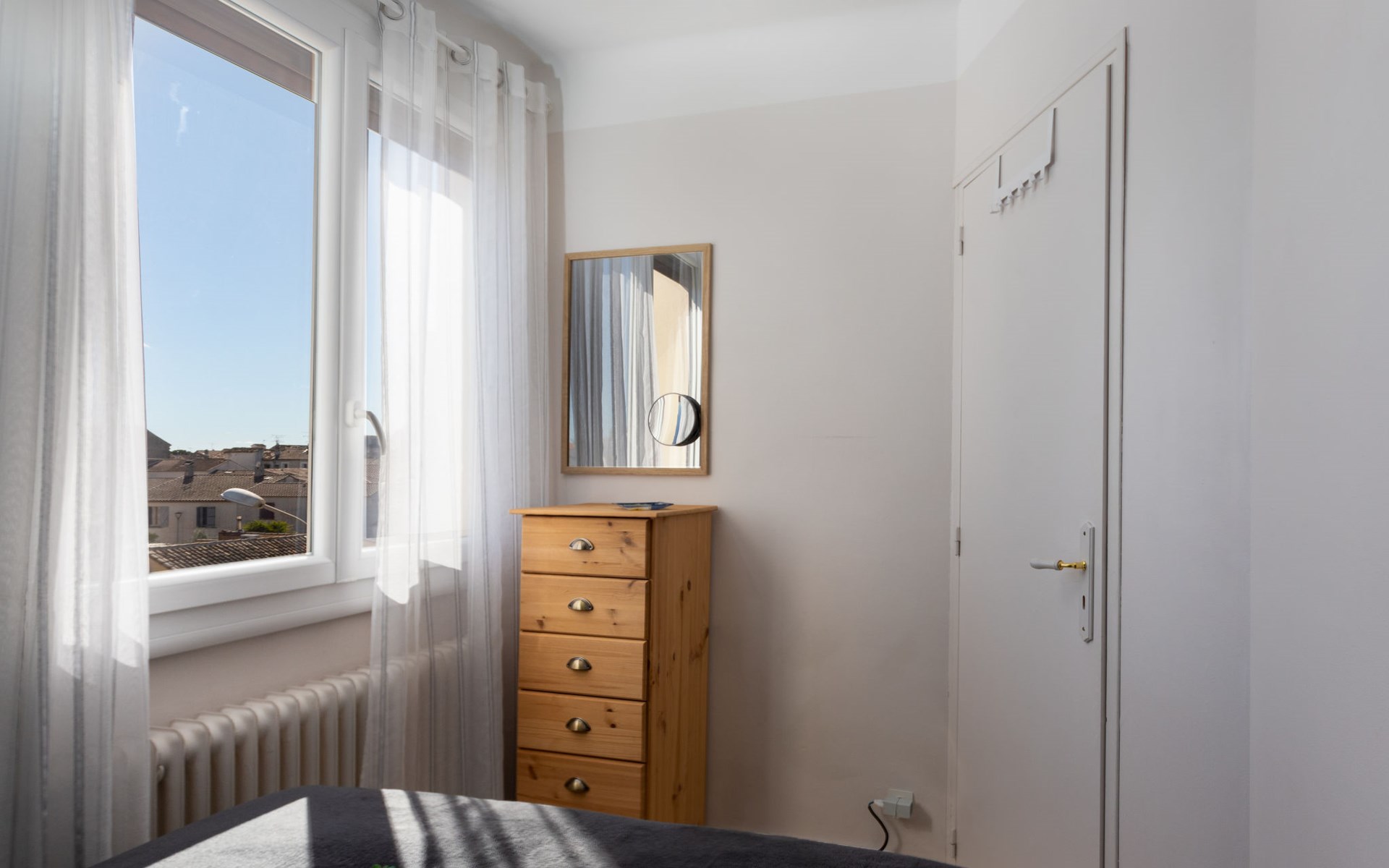 Residence "Résidence les Roses", 2 storeys. In the centre of Lunel, excellent location: right in the centre but still quiet, 17 km from the sea, 17 km from the beach, 16 km from the river, located by a road. Parking (limited number of spaces). Shop 300 m, shopping centre 1 km, restaurant 300 m, bakery 1 km, 3 minute walk to the centre, bus stop "Gare de lunel" 850 m, railway station "Lunel" 850 m, sandy beach "Couchant" 17 km, outdoor swimming pool 2 km, thermal baths "Thalasso Spa" 18 km. Please note: no lift.
