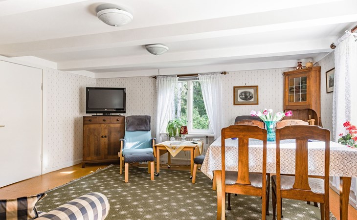 Beautiful single-family house "Bredasjö". 8 km from the centre of Tving, 12 km from the centre of Holmsjö, 30 km from the centre of Karlskrona, 500 m from the lake, in the countryside. Private: natural state property 1'500 m2, garden (not fenced) with trees, meadow. Rowing boat, parking (for 2 cars), single garage. Shop 13.3 km, grocery 21 km, supermarket 30 km, bus stop 4.7 km, railway station "Karlskrona" 30 km, ferry "Helsingboeg" 30 km, sandy beach "Alljungen" 5 km, rocky beach "Sörsjön" 700 m, indoor swimming pool 20 km. Golf course (18 hole) 20 km. Please note: petrol engines are not allowed in the sea.
