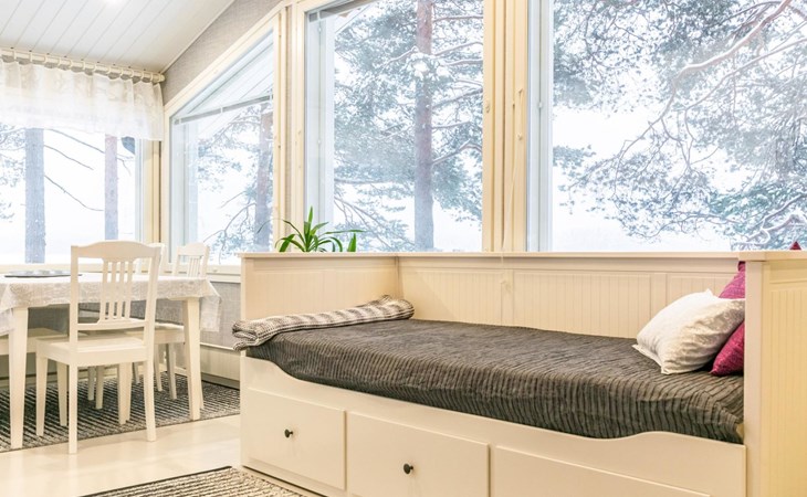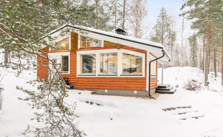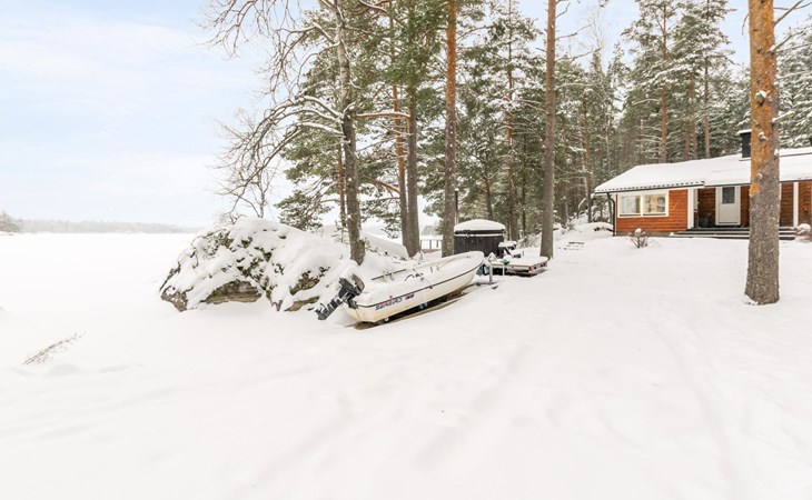 Note! If arranged separately, small dogs are allowed (please contact Lomarengas before making the reservation). Atmospheric cottage on a sunny plot on the shore of a large lake along the shipping route. A peaceful environment. The cottage is suitable for year-round use. Ship pier distance 10 km. Boat landing place 8 km.