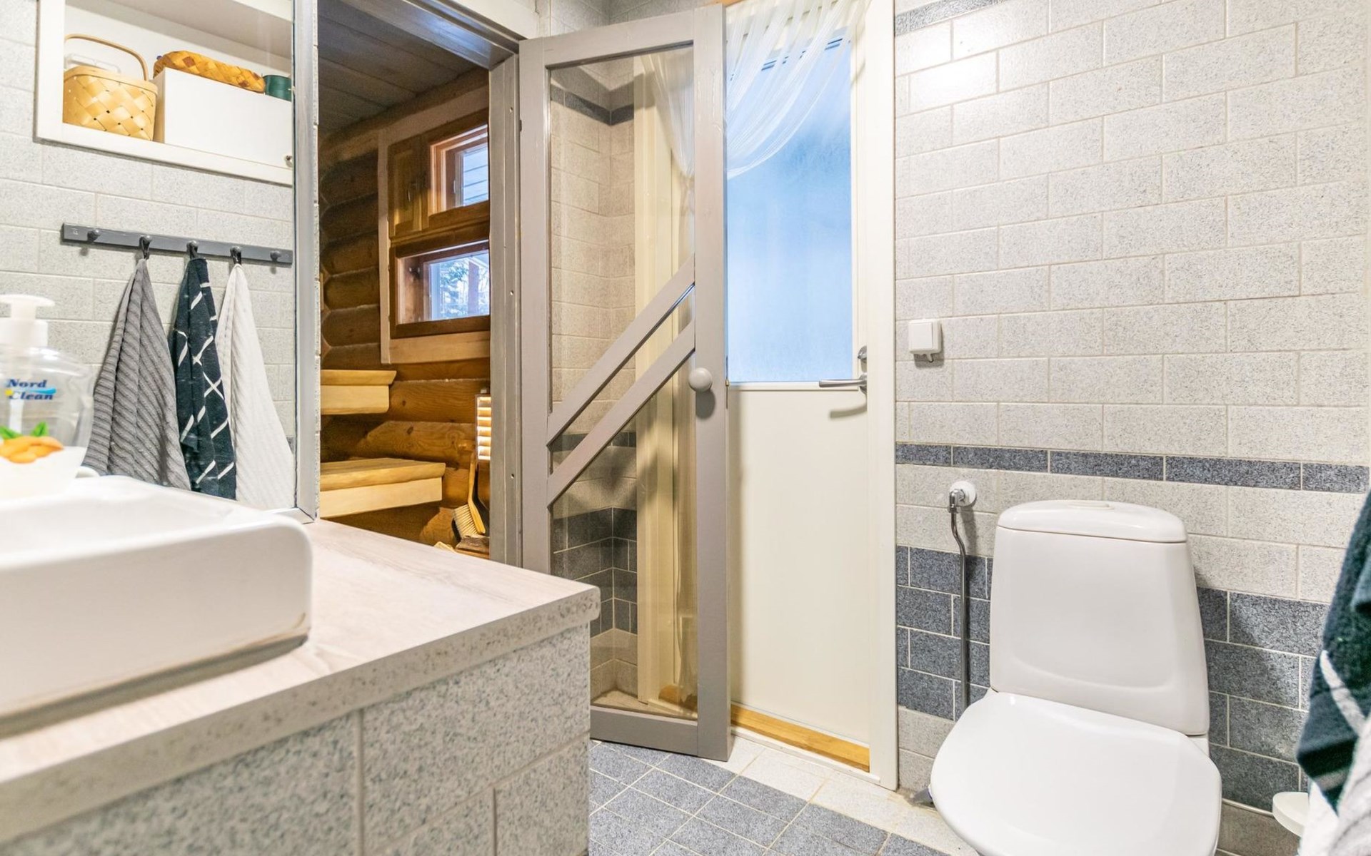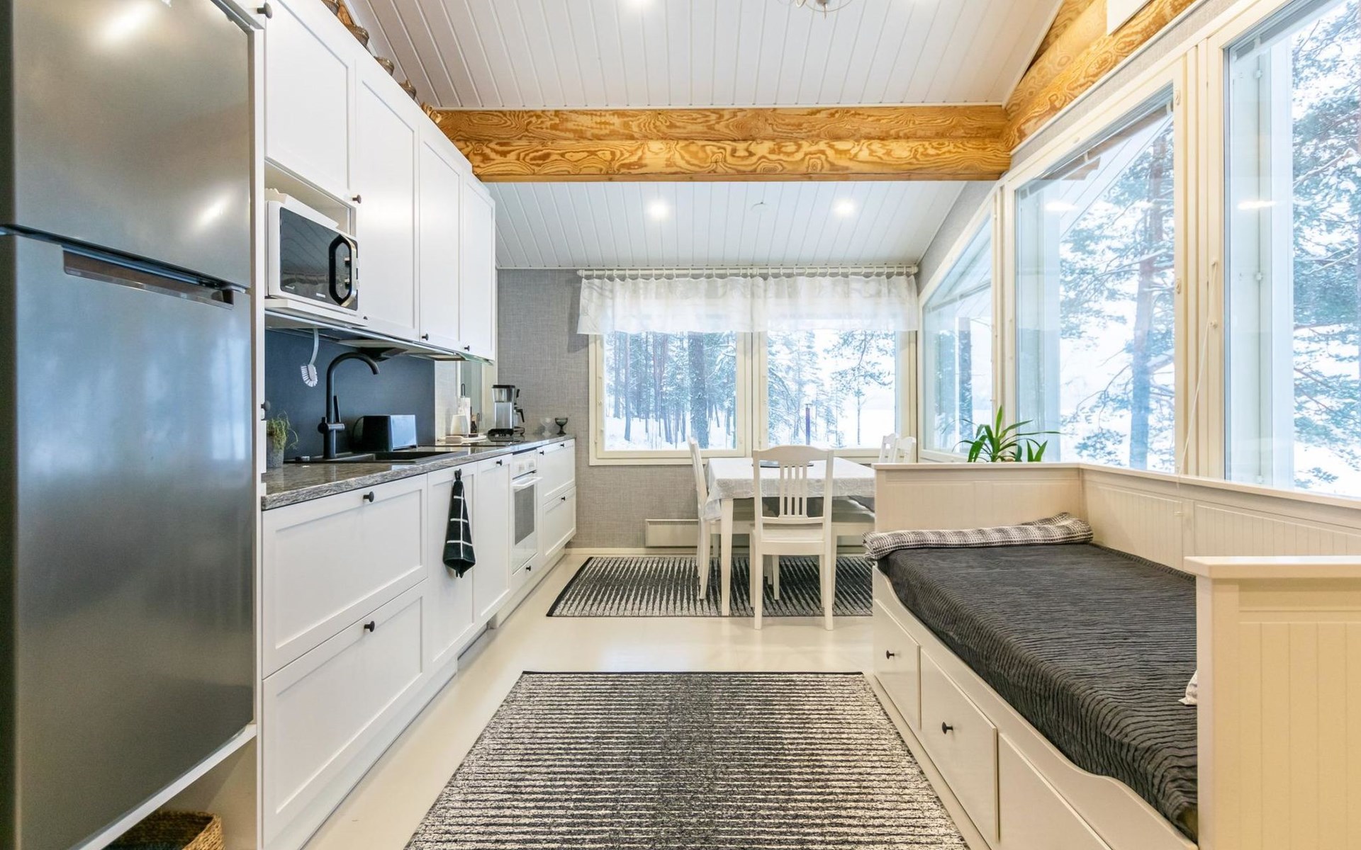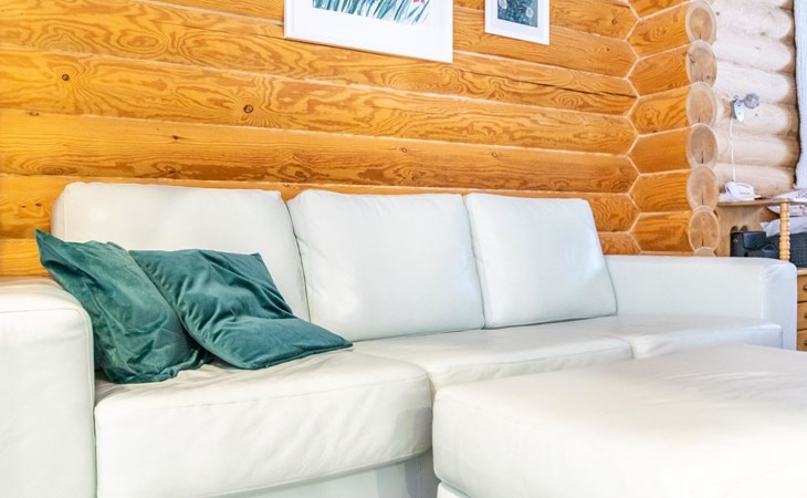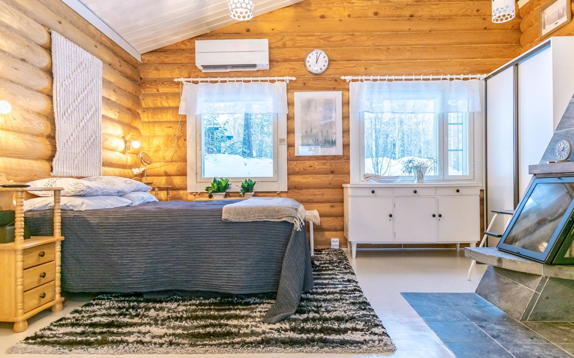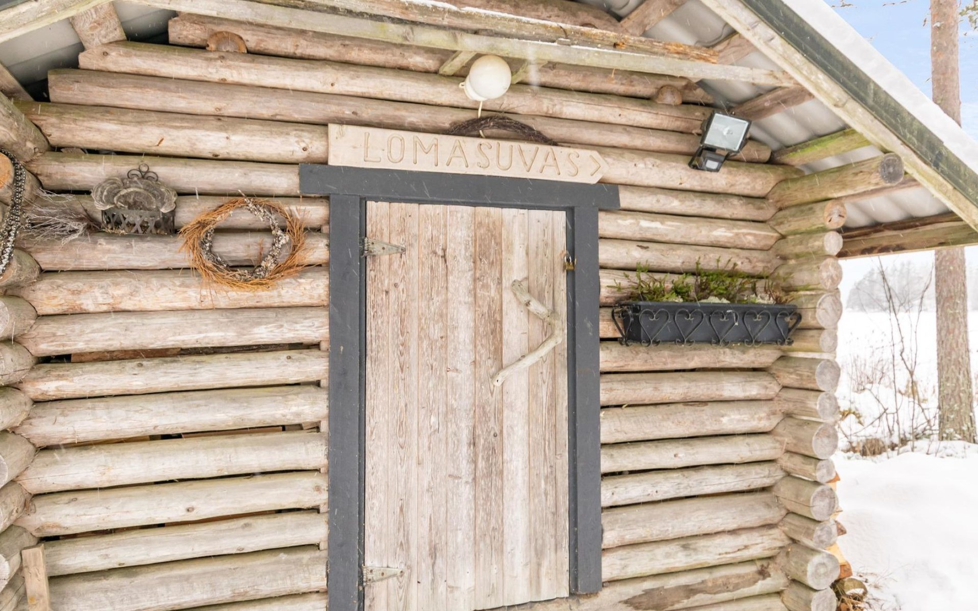 Log building 1994 (expanded 2022), living room - kitchen, a double bed 140 x 200 cm and a sofa bed (160 x 200 cm), washroom with shower and toilet, sauna (wood-burning stove).