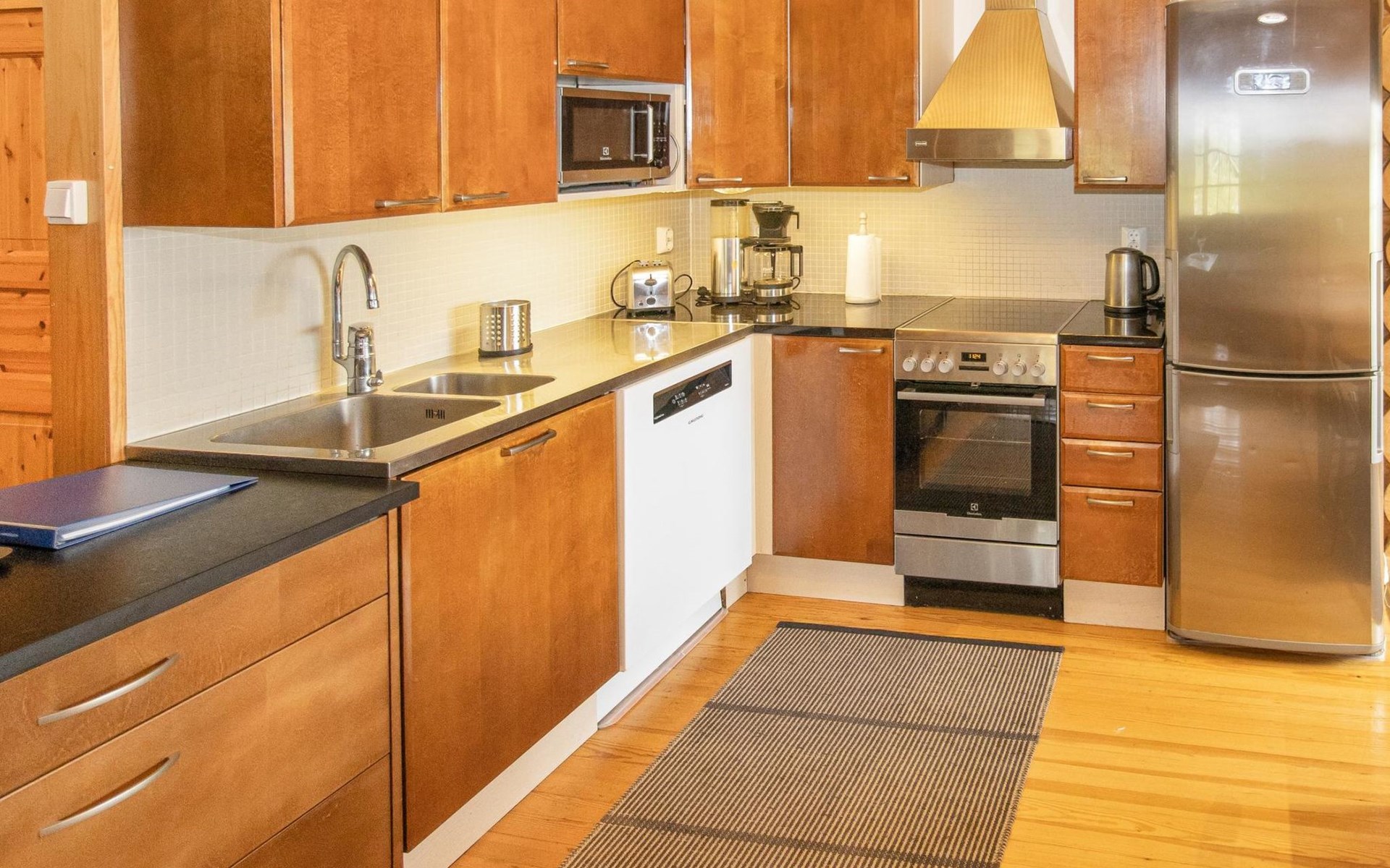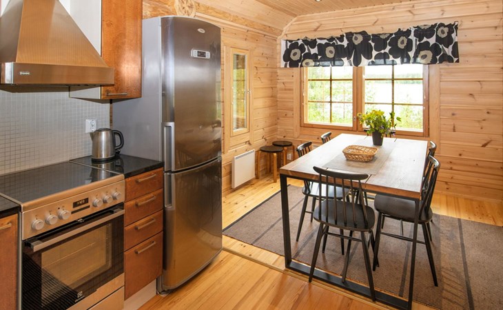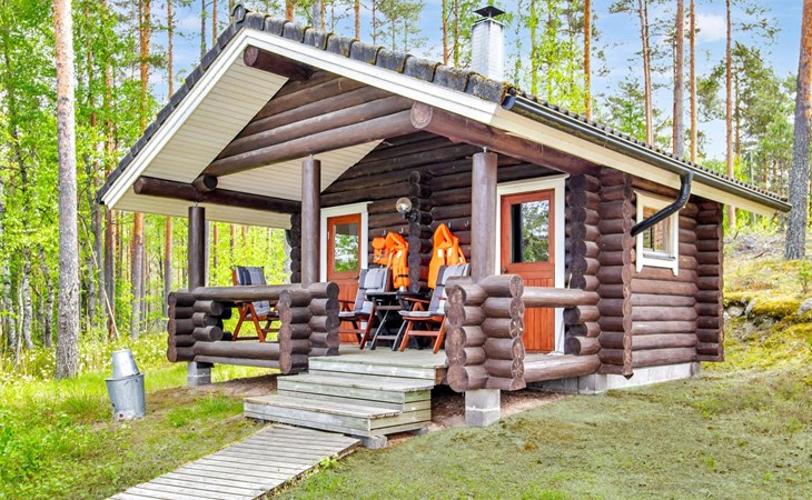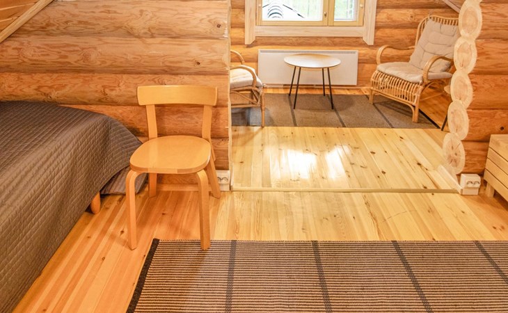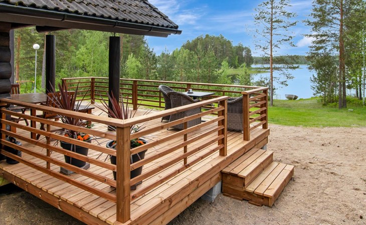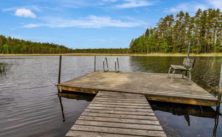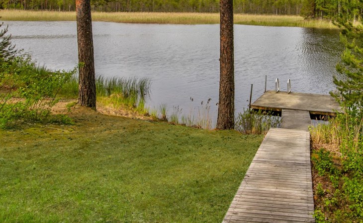 The property includes a separate, atmospheric lakeside log sauna where you can enjoy the authentic warmth of a wood-burning sauna stove. Just a few steps from the sauna lead you to your private pier – perfect for a refreshing morning swim. With its peaceful setting and high-quality finish, this cabin is ideal for both leisure and remote work retreats in the heart of nature.