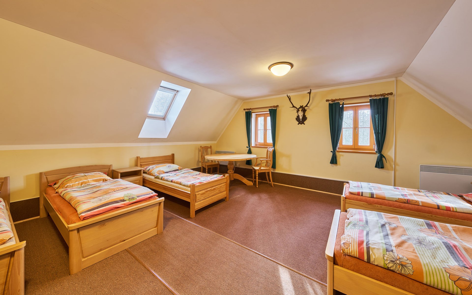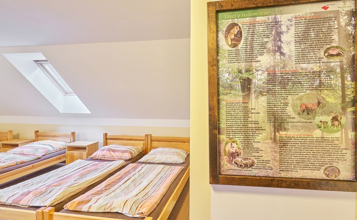 Child friendly, historical country house "Mazurova chalupa". Outside the resort, 2 km from the centre of Hoděšovice, along the wooded area. For shared use: property. Barbecue, fireplace, children's playground. In the house: WiFi. Parking (for 3 cars) on the premises. Bus stop "Býšť, Hoděšovice" 4.7 km. Walking paths from the house 100 m, cycle lane 10 m. Nearby attractions: Lesní běžecká stezka, Stezka Po stopách přírody, Rytířské hradiště, Stezka siluet, Park Na Větvi, Lesní tělocvična U Pytláka, Pohádková stezka, Vodnická stezka. Hiking paths: Naučná stezka Mrtvé dřevo, Funkce lesa, Planetární stezka, Stezky pro vozíčkáře, Rozhledna Milíř 15 km, Zoopark Stěžery 19 km.