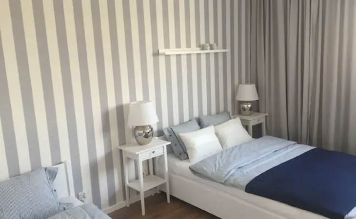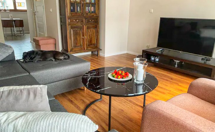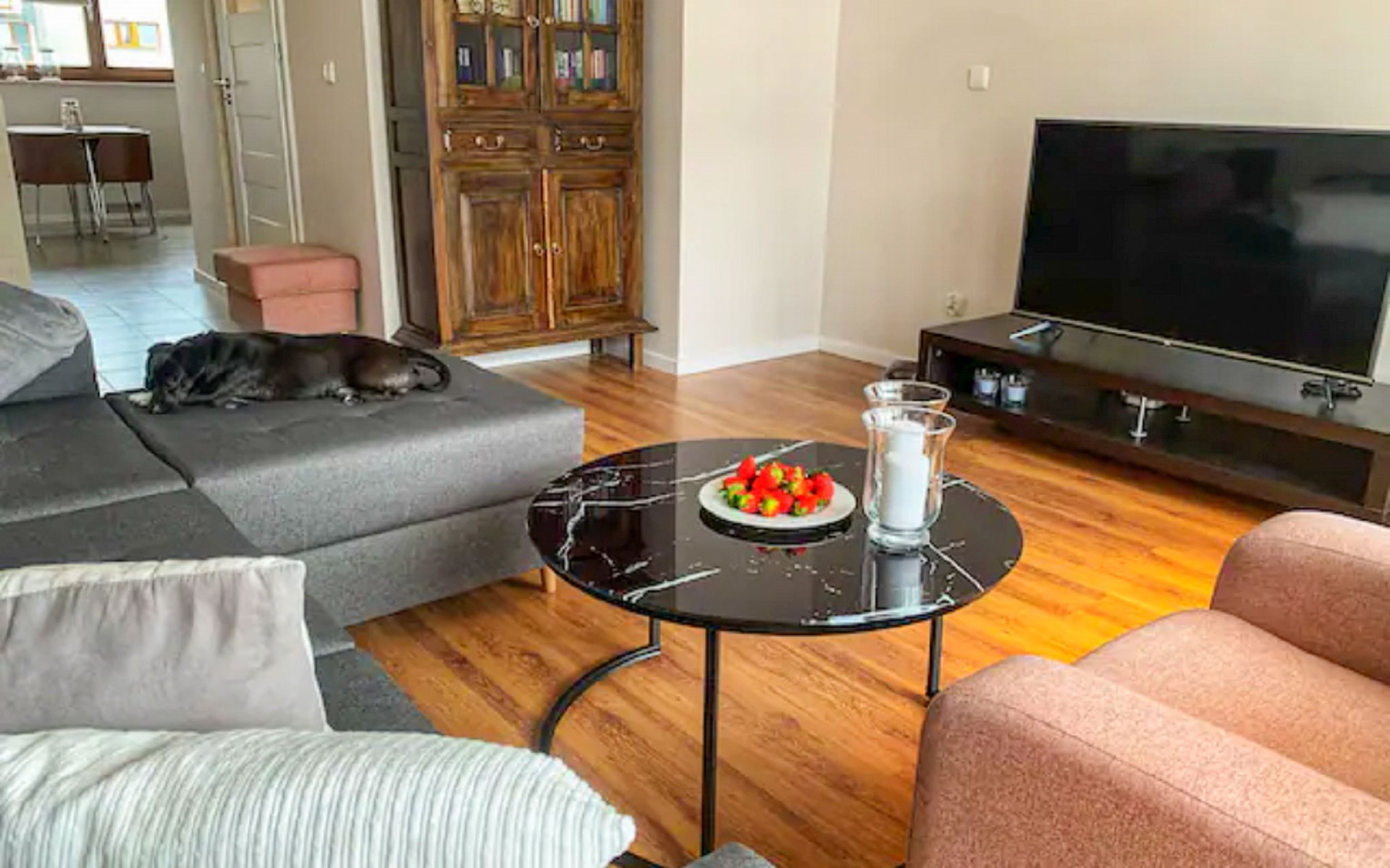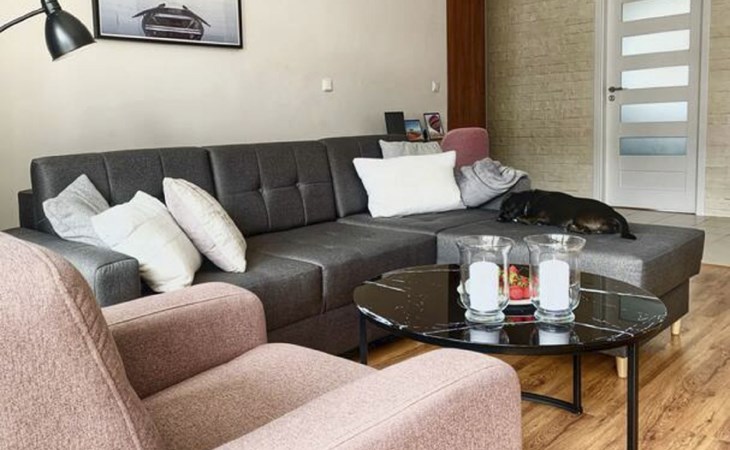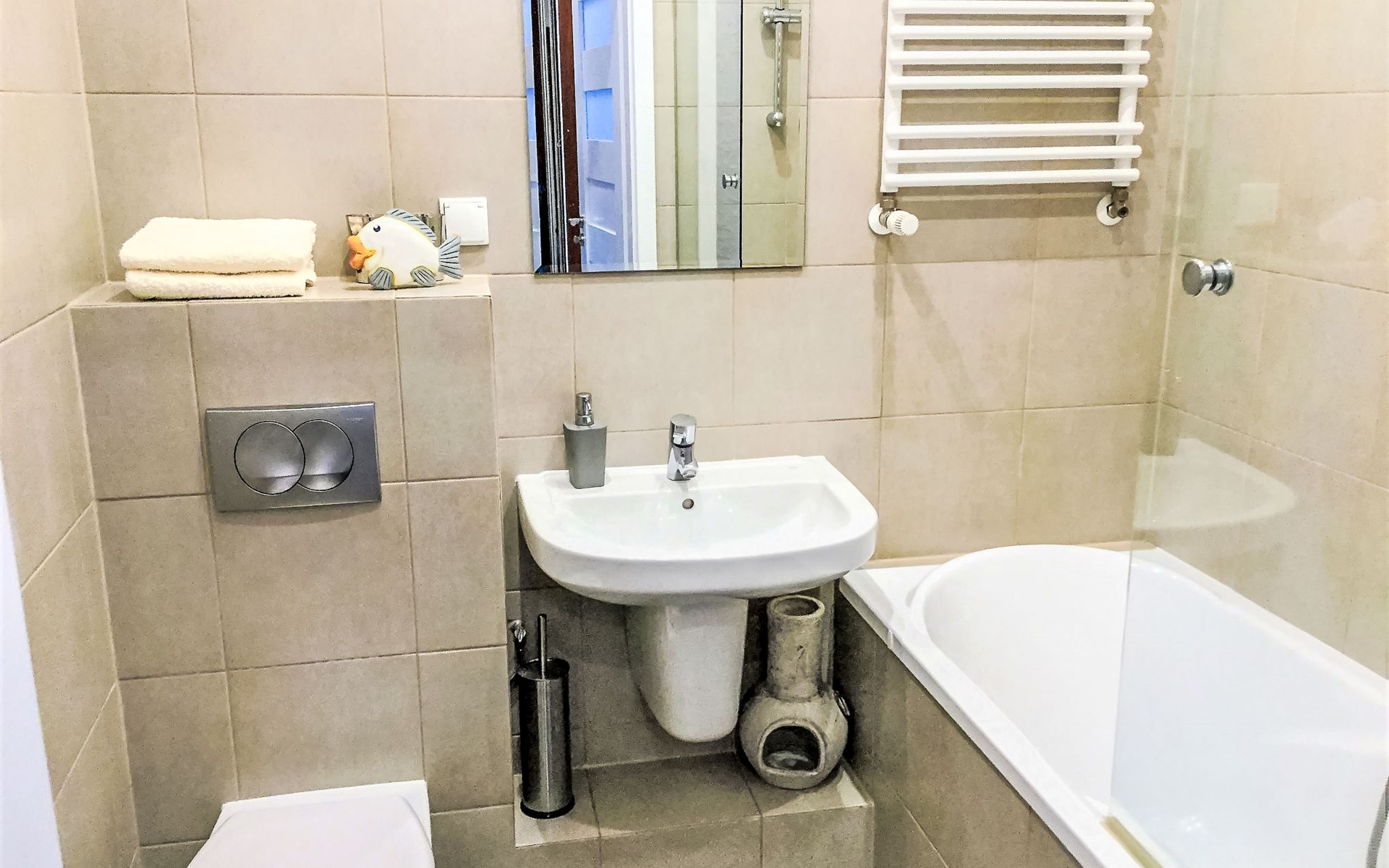Beautiful apartment house "Family", 3 storeys, built in 2008, surrounded by trees. In the resort, 1 km from the centre, in a sunny position in the residential district, 1 km from the sea, 1 km from the beach. In the house: lift, central heating system, washing machine. Parking (limited number of spaces) at the house, communal covered parking. Grocery 100 m, supermarket 200 m, restaurant 100 m, bus stop 200 m, railway station 300 m, sandy beach 1 km, indoor swimming pool 900 m. Golf course (18 hole) 35 km, tennis 600 m. Check-in and check-out are fully automatic. There is no person responsible for the keys on site - the keys are collected from the locker and the keys should be left in this locker when leaving the apartment.