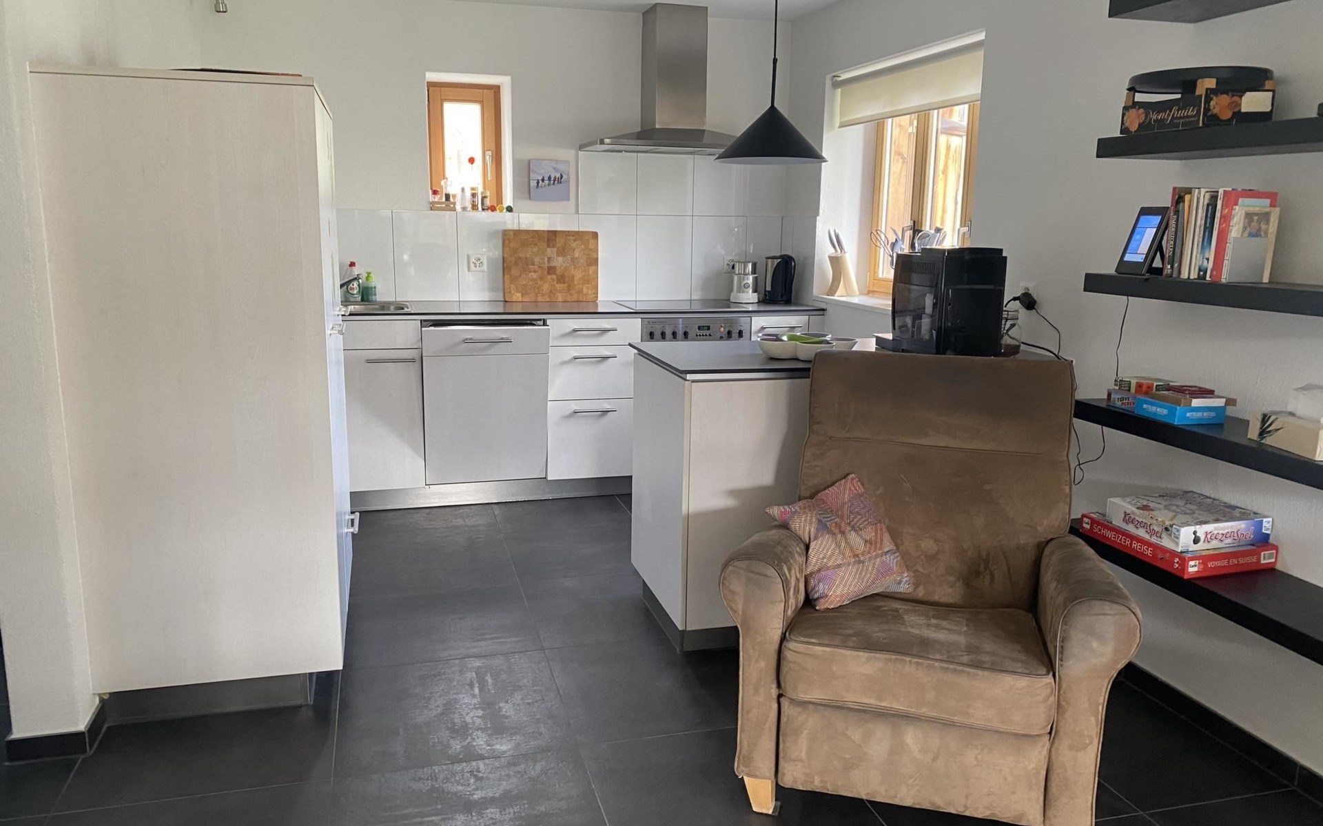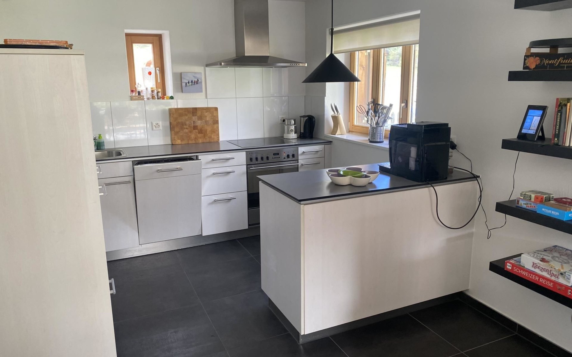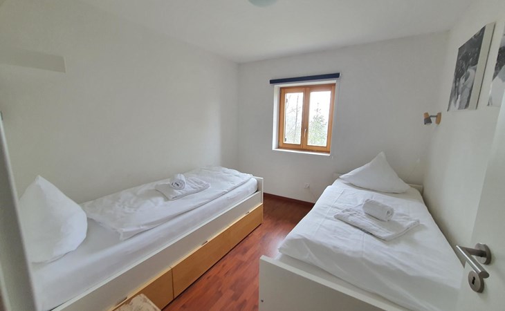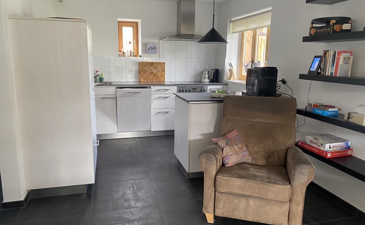 The single-family house consists of a living room with an open kitchen and a cozy garden patio and garden, 4 bedrooms, a bathroom with a bathtub and shower, 2 separate toilets, a separate laundry room and a shed. Room distribution: - On the ground floor, there is the living room with the open kitchen and cozy garden patio and garden. The kitchen is equipped with everything you need for a cozy vacation (espresso machine (fully automatic), kettle, dishwasher, oven, refrigerator with freezer, raclette oven, fondue set, etc.). In the living room, amenities available for use include a fireplace, TV and radio. - Upstairs, there are 2 bedrooms each with a double bed, a bedroom with 2 single beds, a bedroom with 2 bunk beds + extra bed, a bathroom with bathtub and shower and a separate toilet with washbasin.