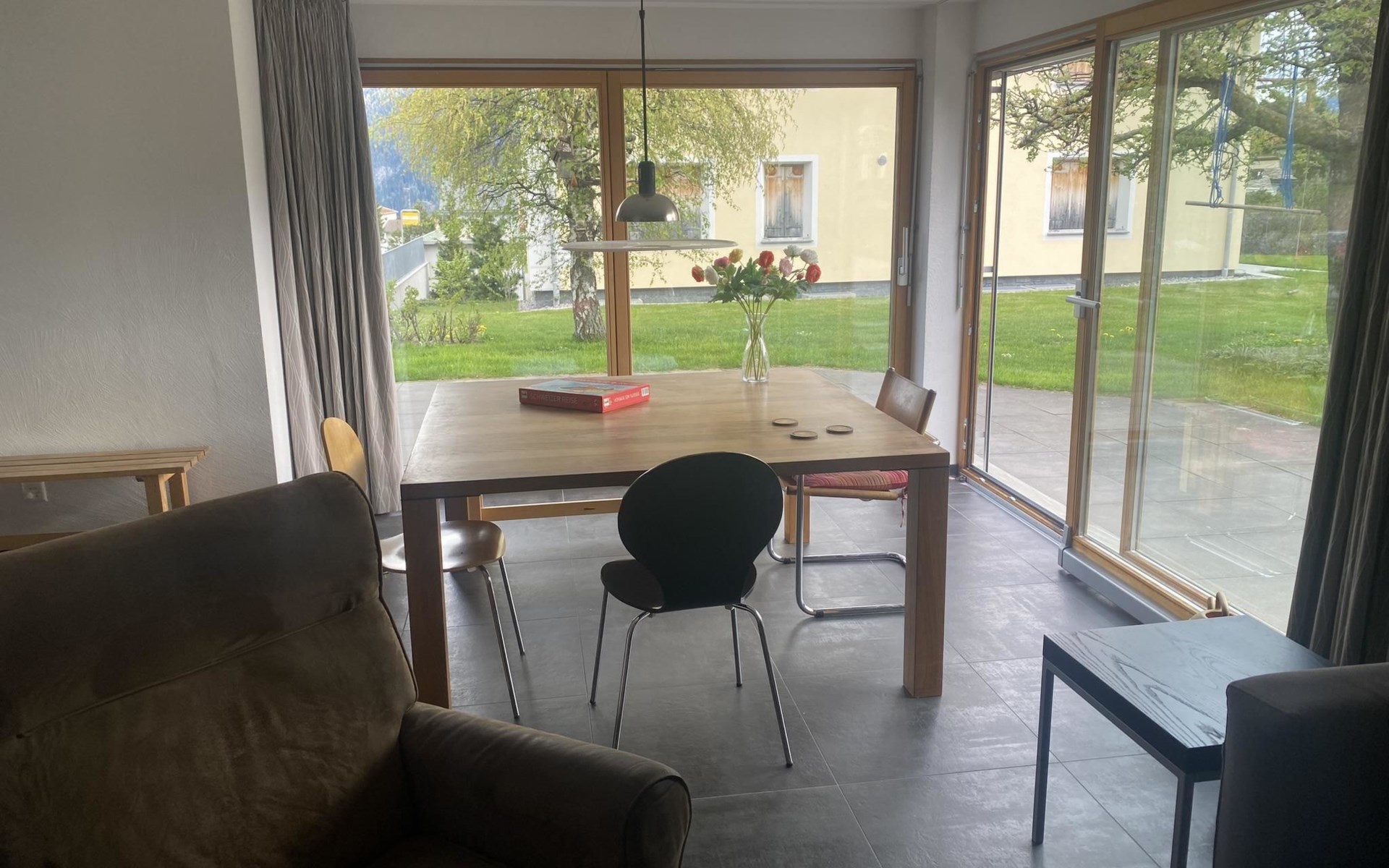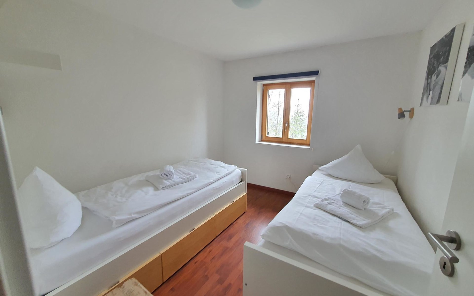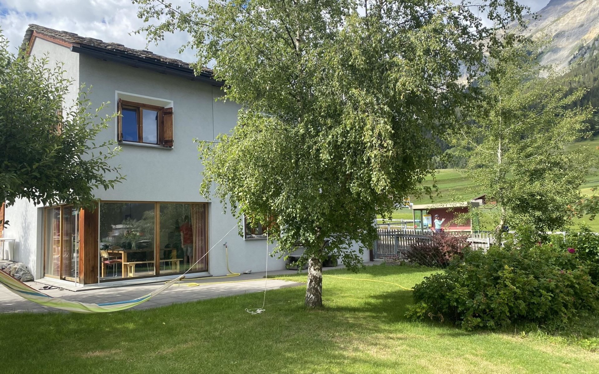 The single-family house consists of a living room with an open kitchen and a cozy garden patio and garden, 4 bedrooms, a bathroom with a bathtub and shower, 2 separate toilets, a separate laundry room and a shed. Room distribution: - On the ground floor, there is the living room with the open kitchen and cozy garden patio and garden. The kitchen is equipped with everything you need for a cozy vacation (espresso machine (fully automatic), kettle, dishwasher, oven, refrigerator with freezer, raclette oven, fondue set, etc.). In the living room, amenities available for use include a fireplace, TV and radio. - Upstairs, there are 2 bedrooms each with a double bed, a bedroom with 2 single beds, a bedroom with 2 bunk beds + extra bed, a bathroom with bathtub and shower and a separate toilet with washbasin.