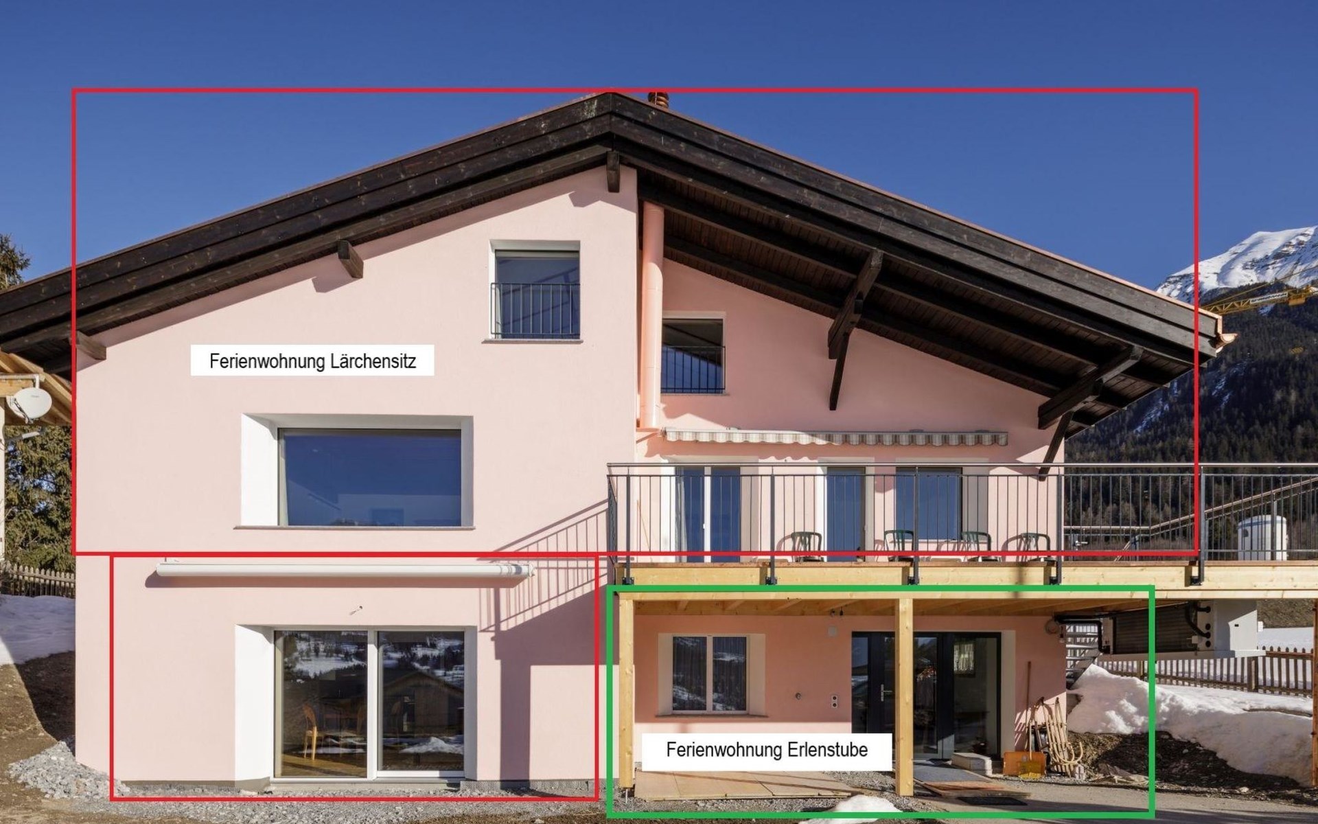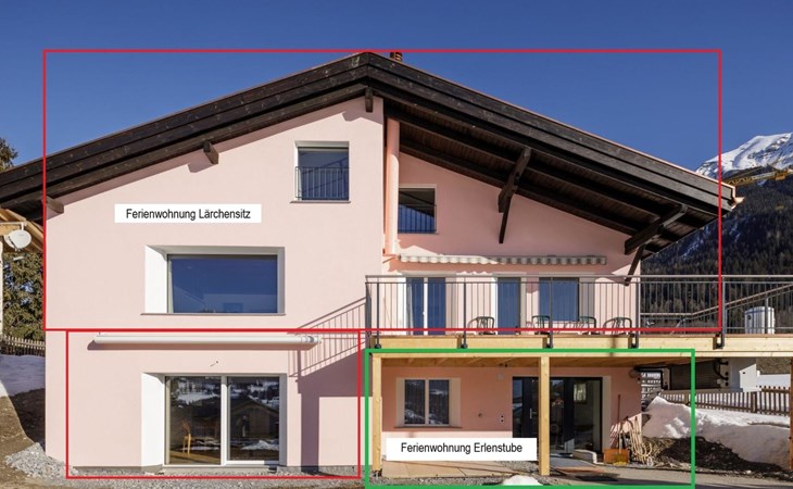 The APPARTMENT LÄRCHENSITZ is suitable for large families and small groups. The apartment has 2 floors with 2 shower / toilet, well equipped kitchen, large living-dining room and 5 bedrooms. There are a total of 10 beds and a cot available. If required, one bedroom (2 beds) can be rented additionally.