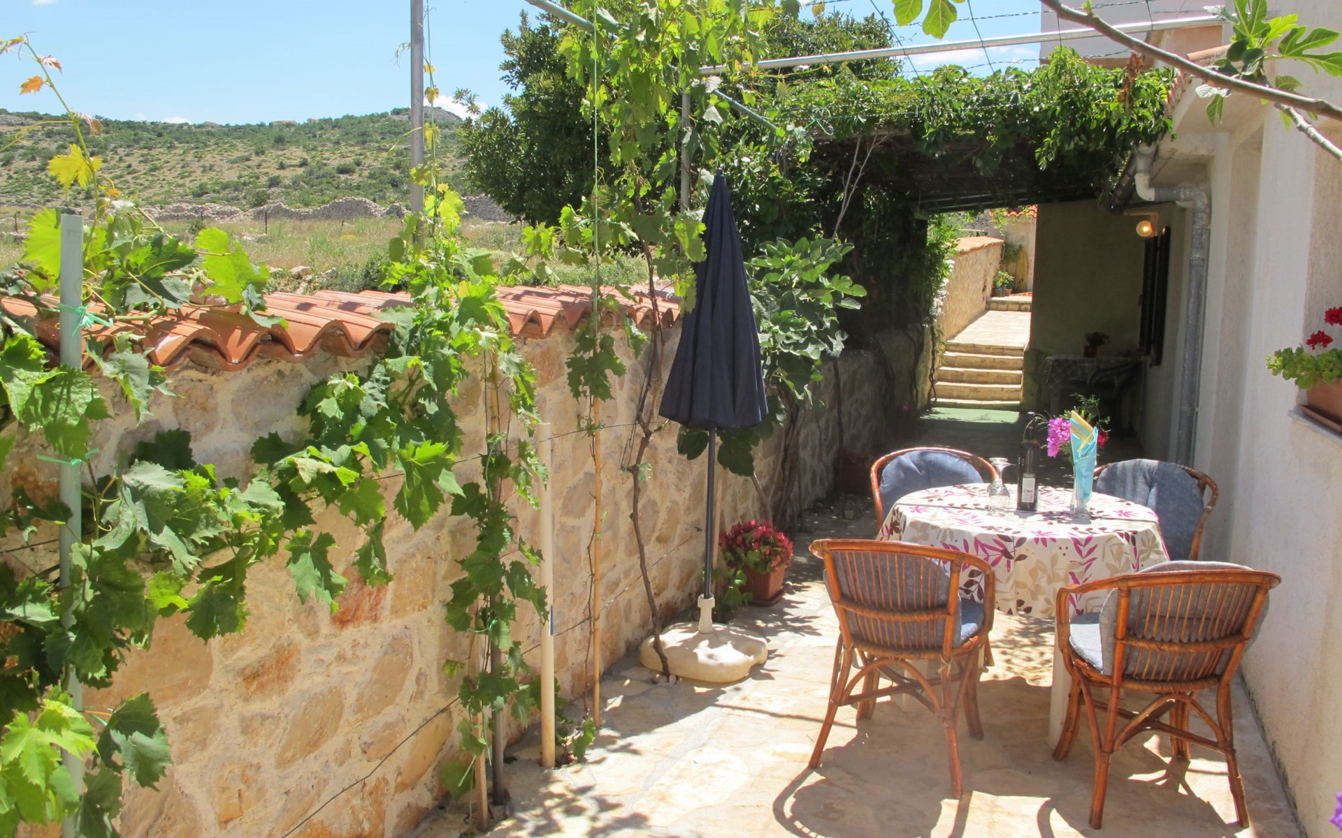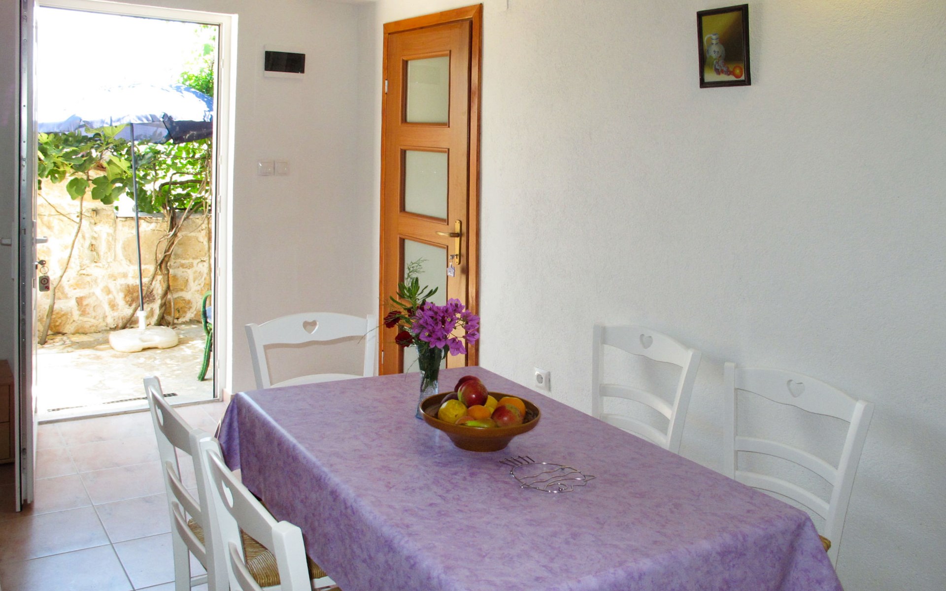 3-family house "Lukeni". 200 m from the centre of Vinjerac, 35 km from the centre of Nin, 35 km from the centre of Zadar, 50 m from the sea, 50 m from the beach. For shared use: property 1'000 m2, plants. (swing). In the house: internet access, washing machine (for shared use, extra). Parking on the premises. Shop 200 m, bus stop 9 km, rocky beach 50 m.