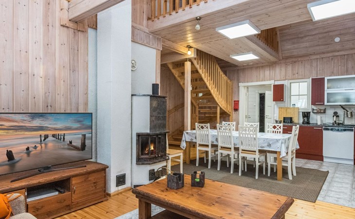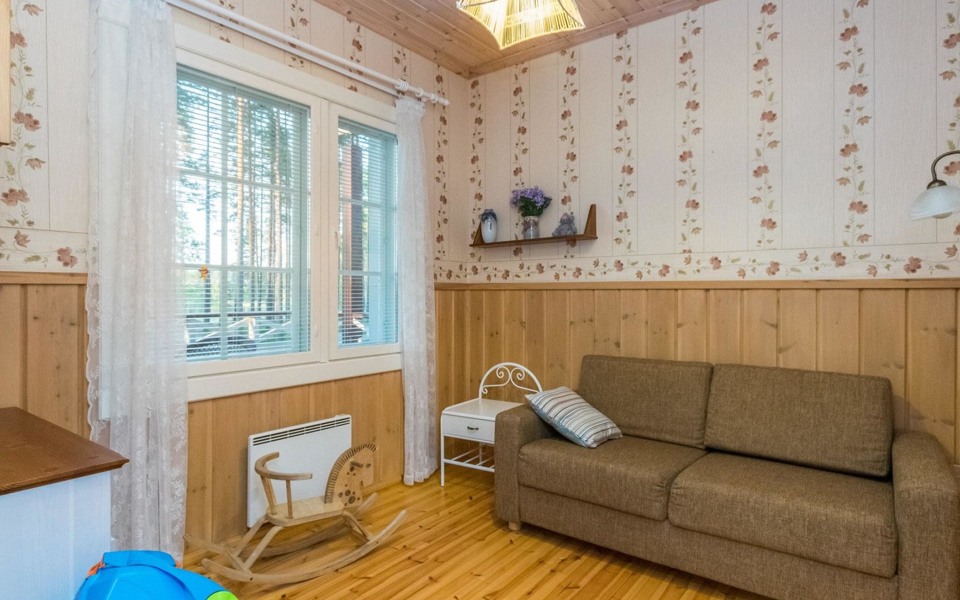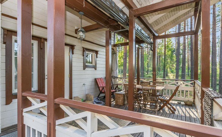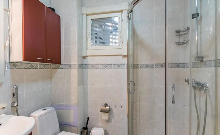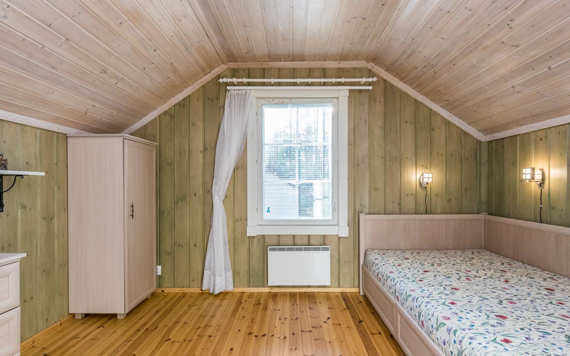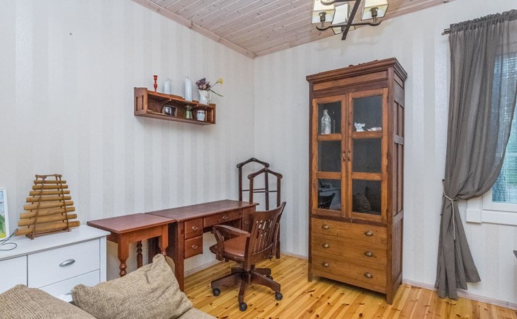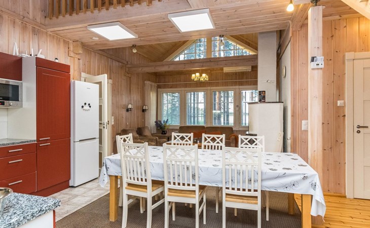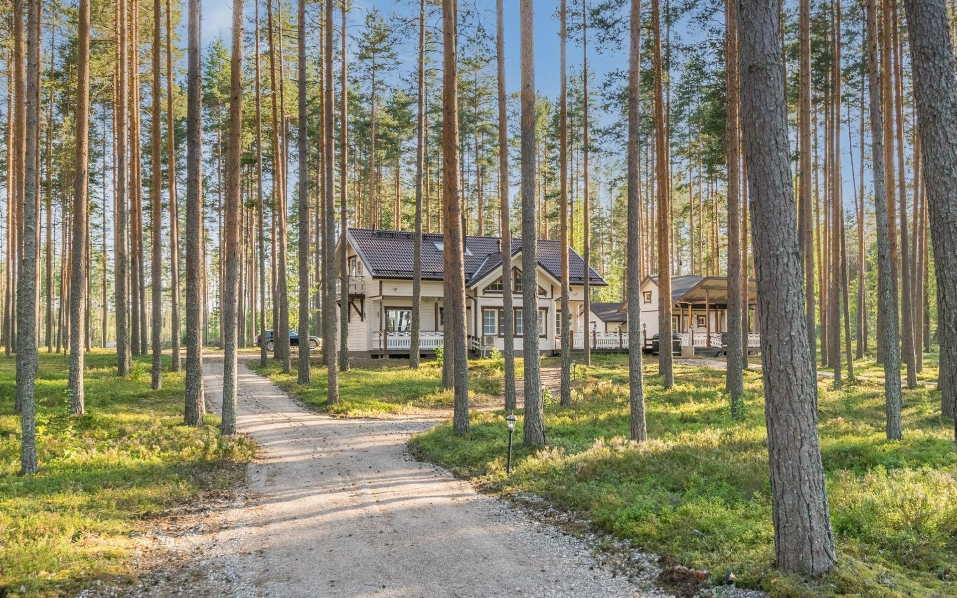 A separate sauna building with a wood stove, a toilet, shower and washing machine in the washroom, a room with a fireplace, a double bed in the loft. Open swimming in winter.