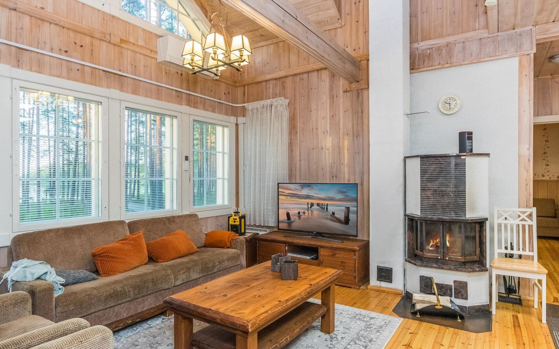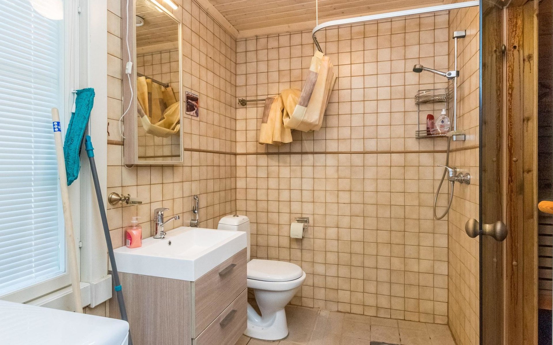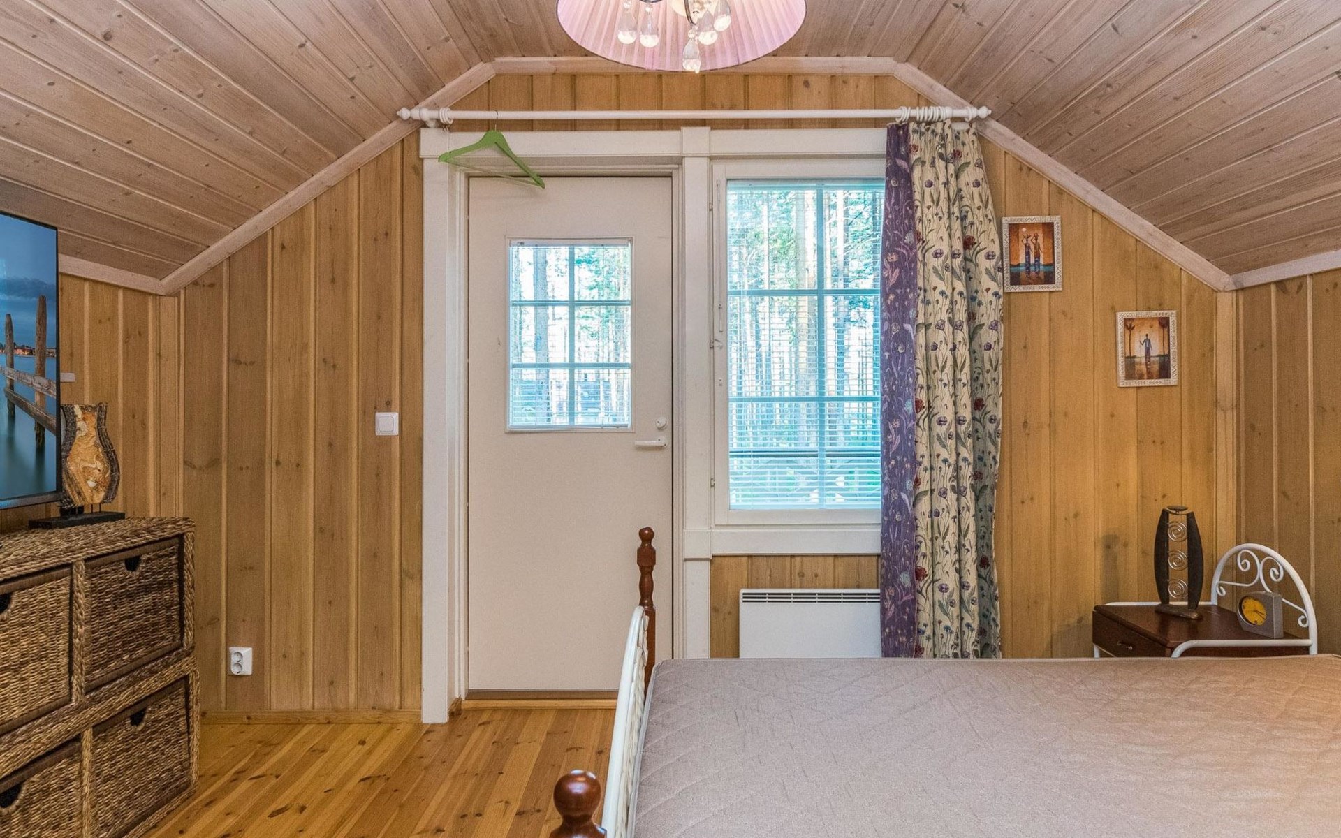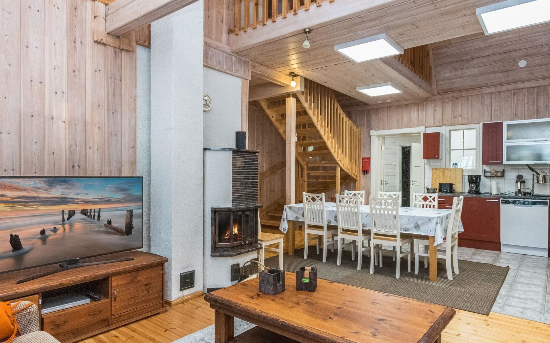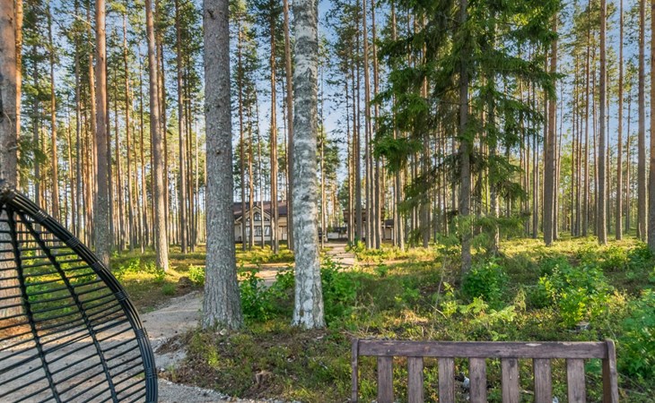 A separate sauna building with a wood stove, a toilet, shower and washing machine in the washroom, a room with a fireplace, a double bed in the loft. Open swimming in winter.