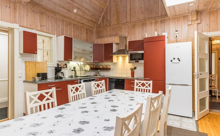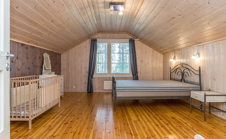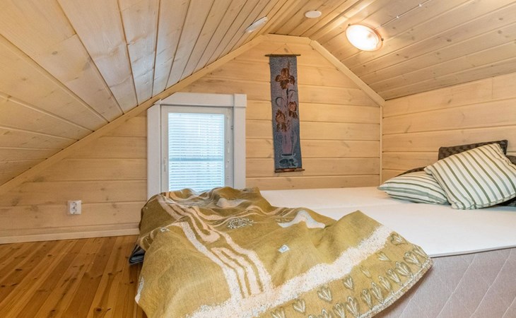 Log cabin 2013, down staris: living room / kitchen, first bedroom with sofa bed for two, second bedroom with double bed, third bedroom with 140 cm sofa bed for two, fourth bedroom with double bed. Bathroom with toilet and shower, hall.