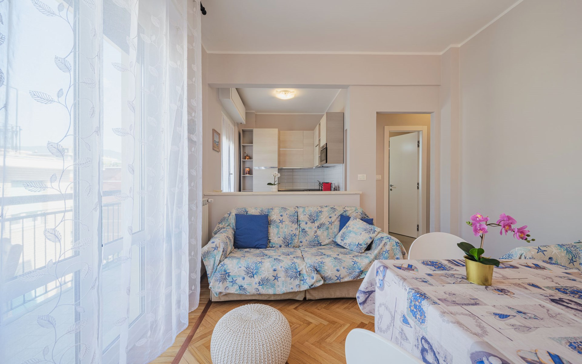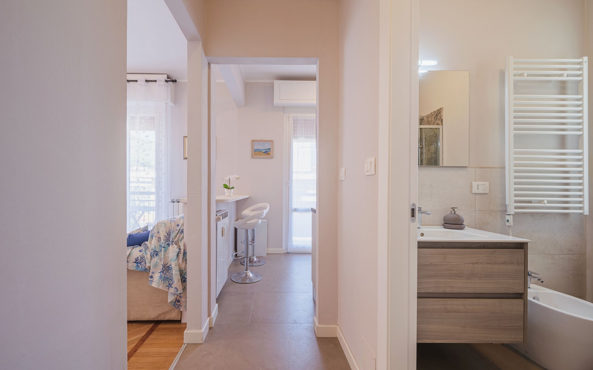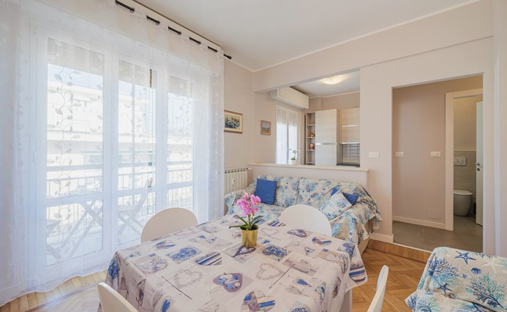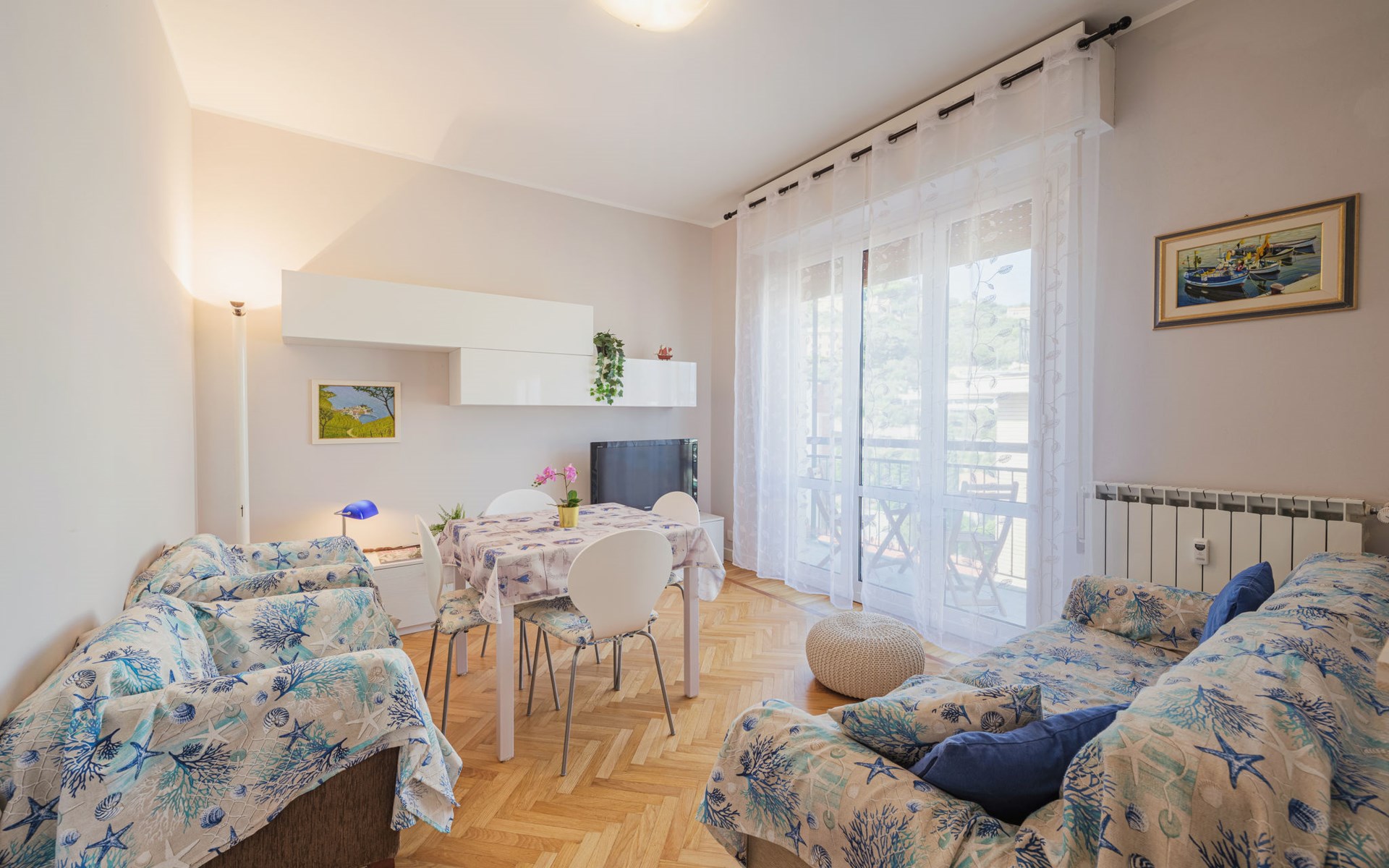 Apartment block. 400 m from the sea. In the house: lift. Motor access to the house. Supermarket, restaurant, bar 200 m, bus stop 400 m, railway station "Chiavari" 900 m, shingle beach 500 m. Marina 1.2 km. Nearby attractions: Sestri Levante 8 km, Santa Margherita Ligure 14 km. Please note: Loading and unloading of baggage is possible at the holiday house.