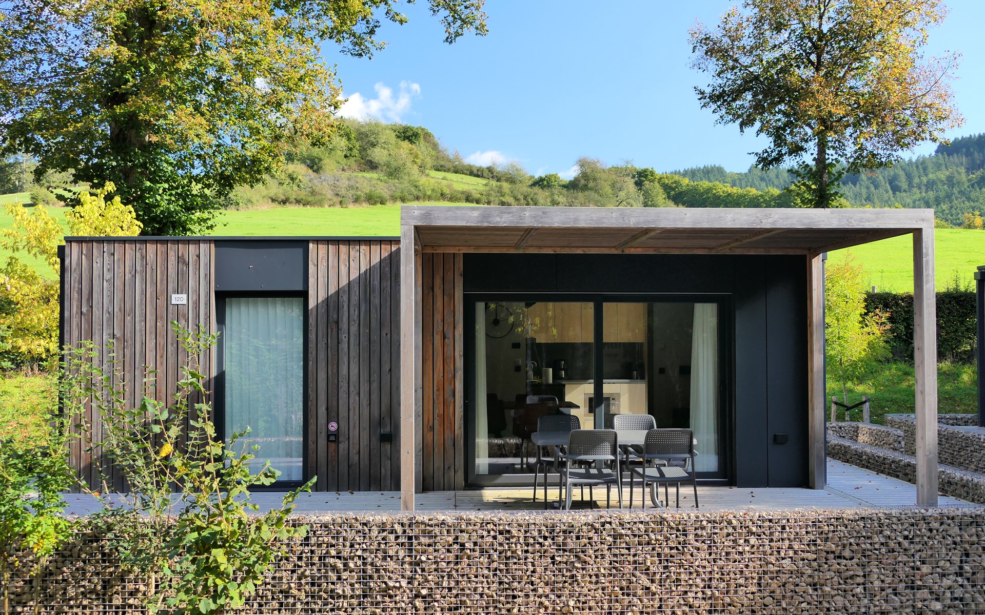 Domus 4 is a stylish and spacious chalet where everything is in balance. The detached chalet is on the ground floor, suitable for 4 persons and can be entered via a few steps. The spacious living room has a sitting area with television, a dining area and a modern kitchen with a refrigerator, dishwasher and coffee machine. In total there are 2 bedrooms, 1 with a double bed and 1 with 2 single beds. In the bathroom you will find a shower and washbasin. There is a separate toilet. Outside is a furnished terrace. You can use the free Wi-Fi and you can park 1 car at Domus 4.