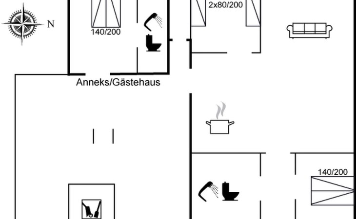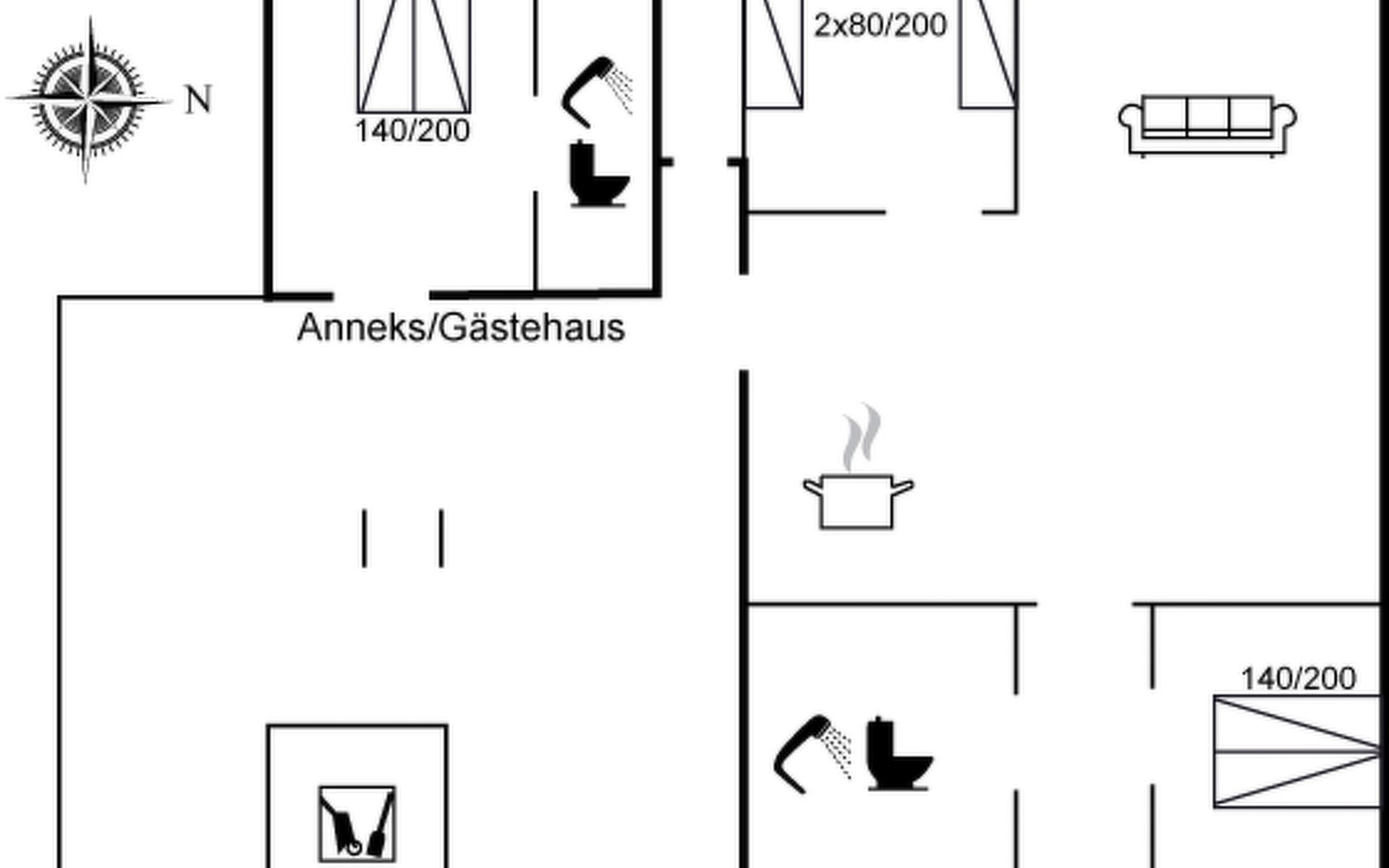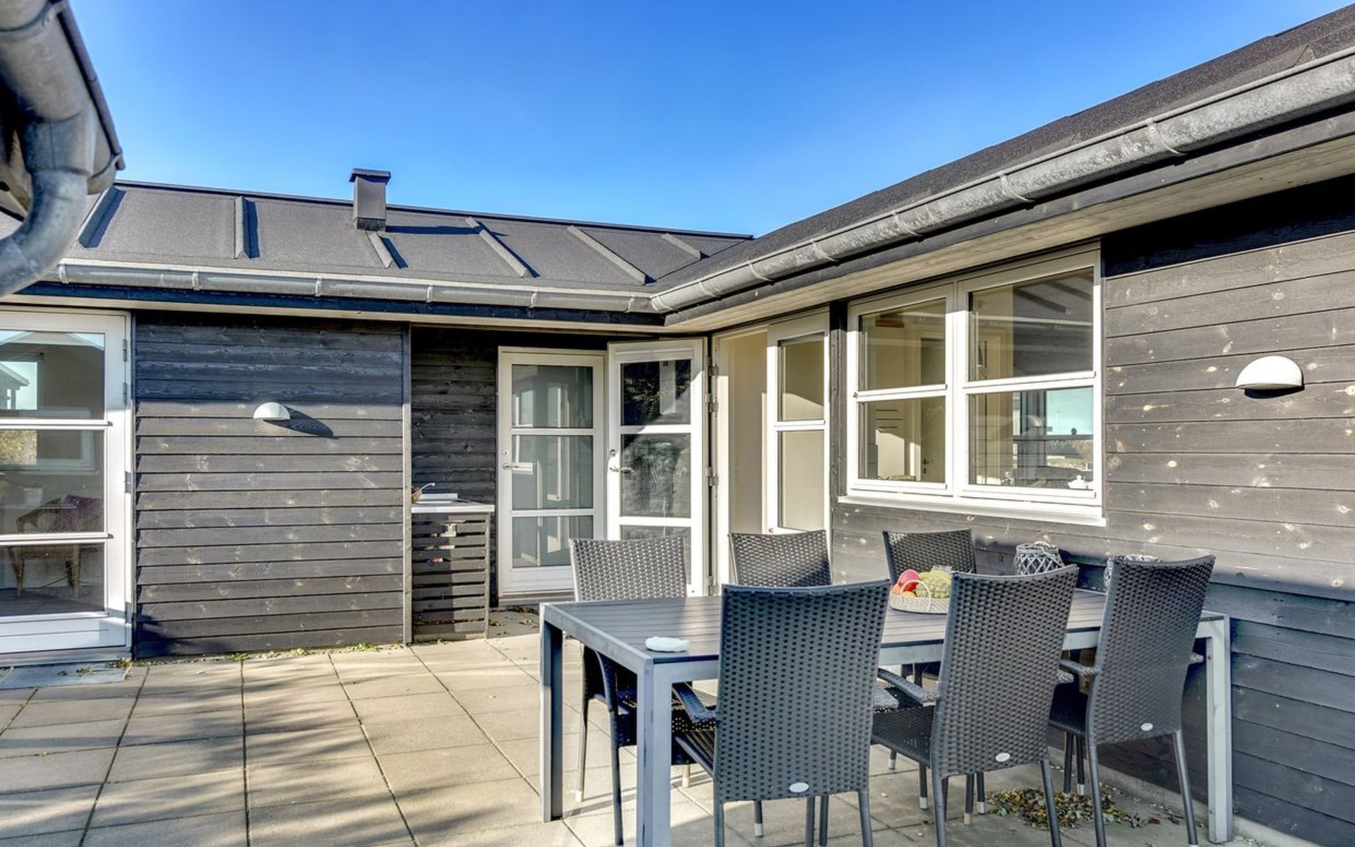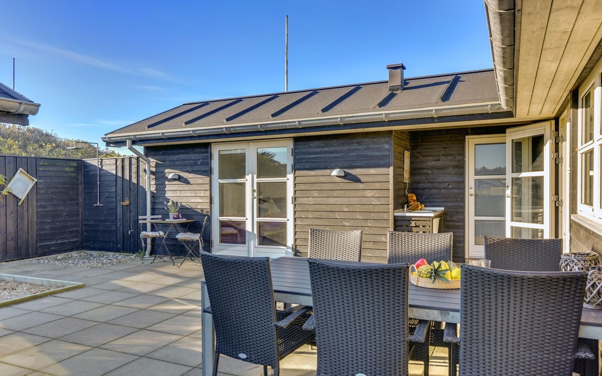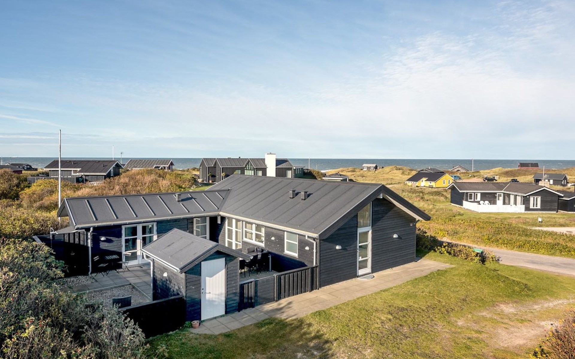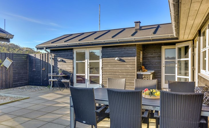 Single-family house, built in 2013. 300 m from the sea. Private: natural state property 1'500 m2. Outdoor shower, terrace (50 m2), children's playground. In the house: washing machine, tumble dryer. Parking at the house. E-charging station. Grocery 1 km. The owner does not accept any youth groups.