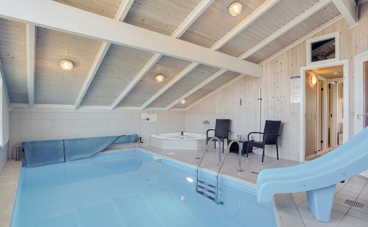 Single-family house, built in 1995. 500 m from the sea. Private: natural state property 1'550 m2, indoor pool (3 x 5 m, 1'7.5 m2, depth 150 - 150 cm). Terrace (50 m2), barbecue, children's playground (swing). In the house: sauna, washing machine, tumble dryer. Parking at the house. Grocery 1.1 km. The owner does not accept any youth groups.