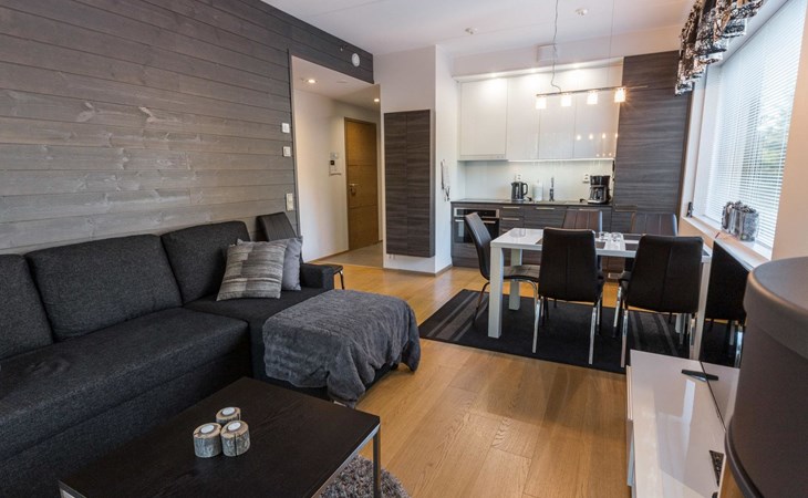 The practical location of the apartment allows access to services even if you do not have your own car. An illuminated ski trail runs right next to the apartment, and the nearest ski slope is a short walk away. The building has an elevator that allows easy access to the apartment.