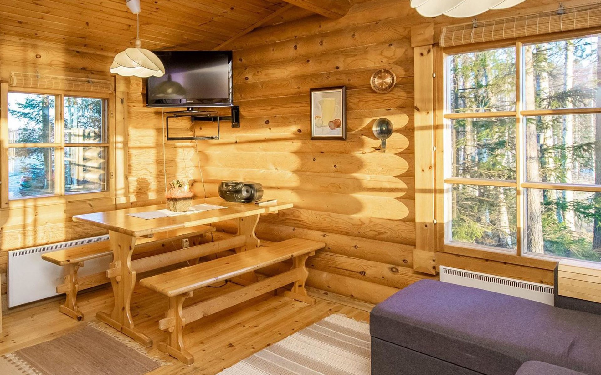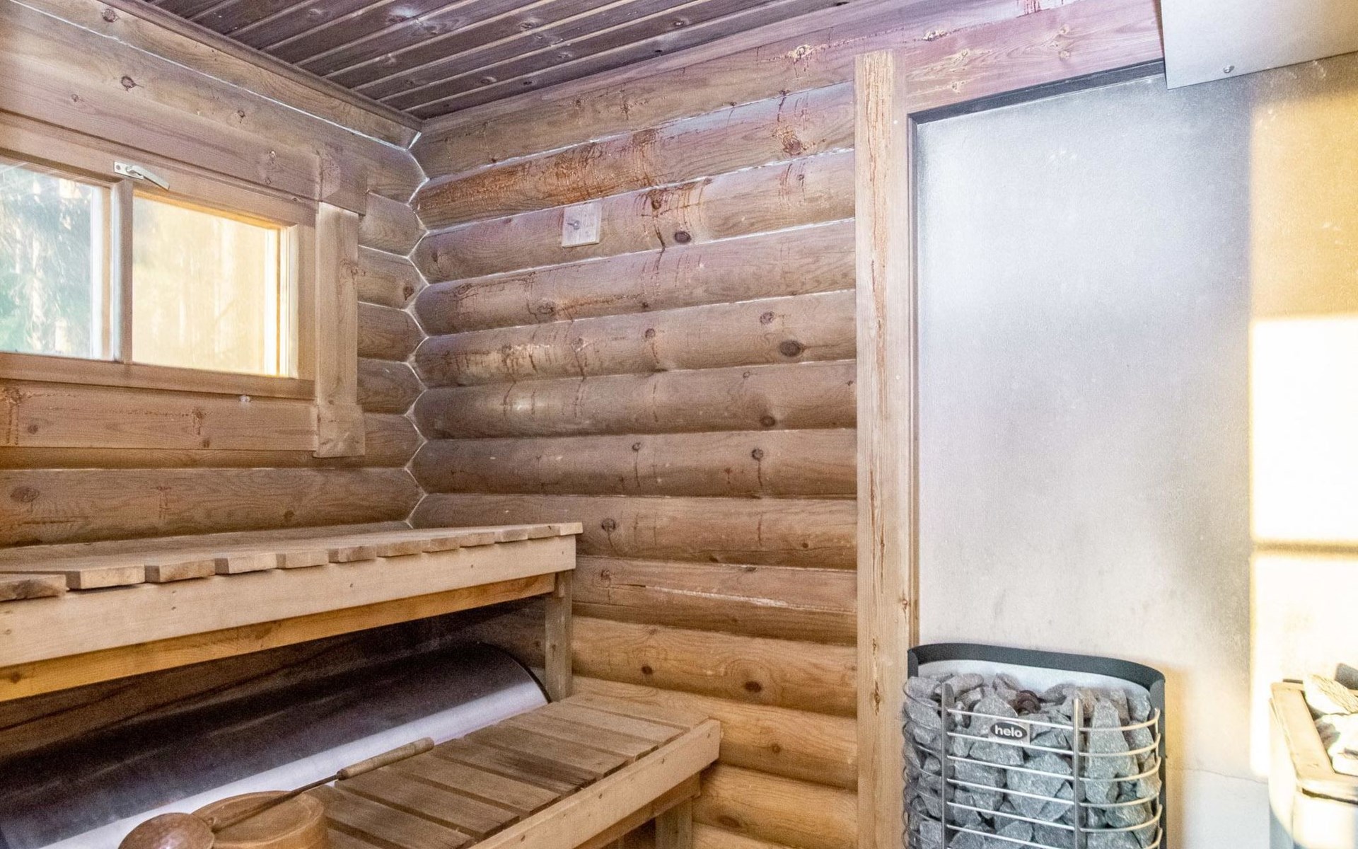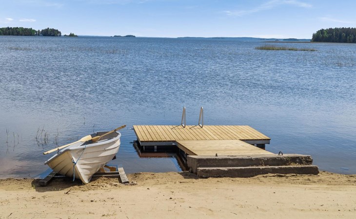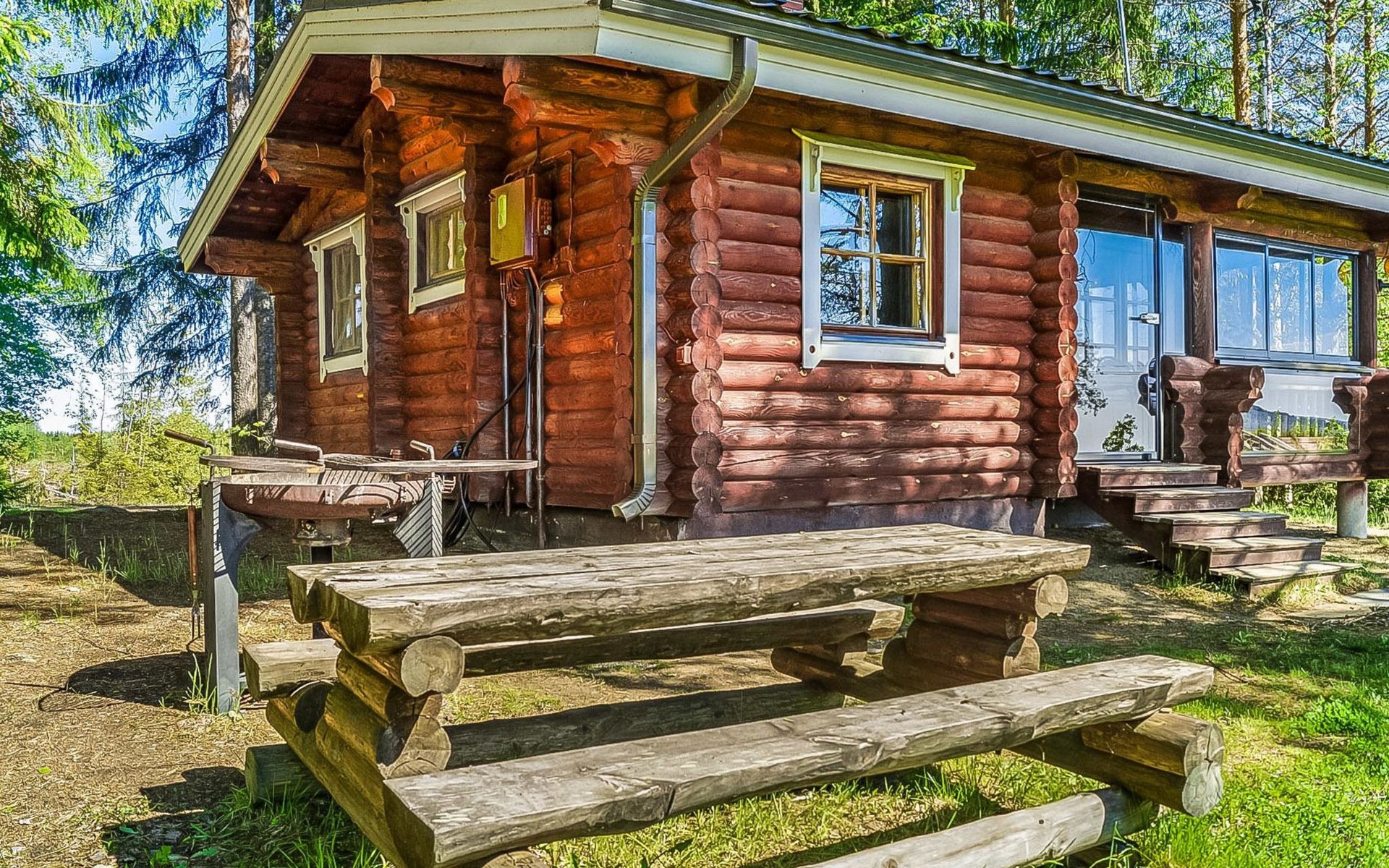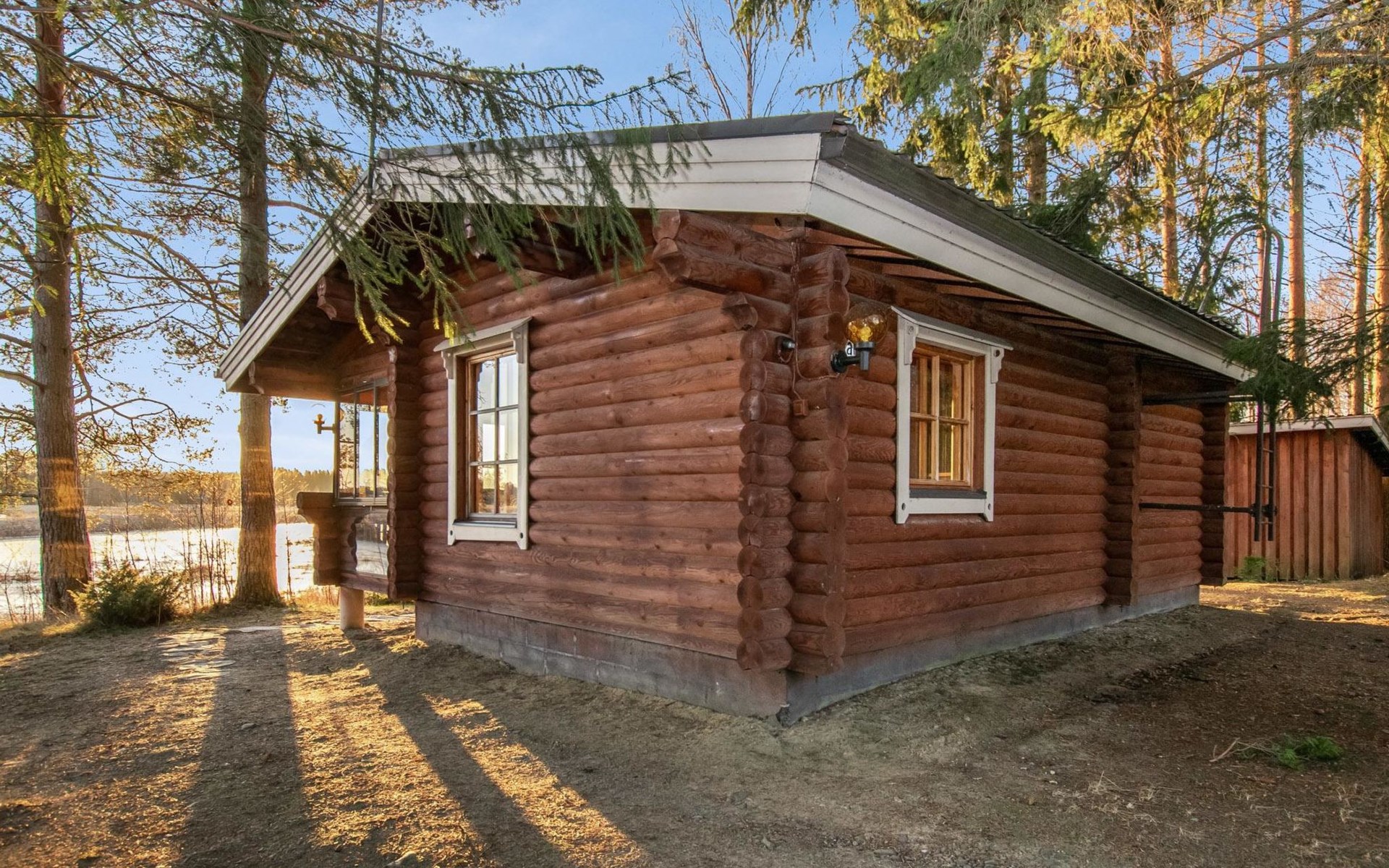 Log cabin 1990, living room/kitchen 1 sofa (for two persons), bedroom with 2 beds, dressing room, sauna (wood sauna stove), glazed veranda. Entrance to sauna and toilet via veranda. Neighbor cottage 100 m, distance between piers is 50 m.