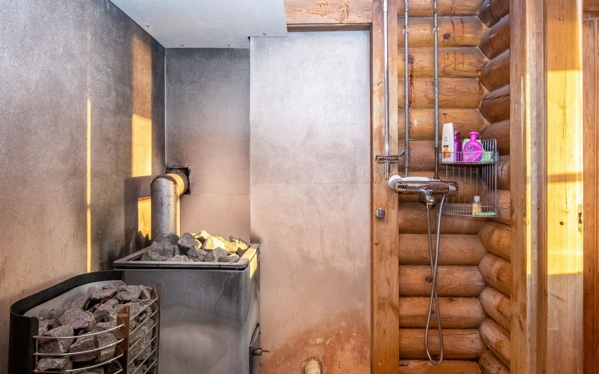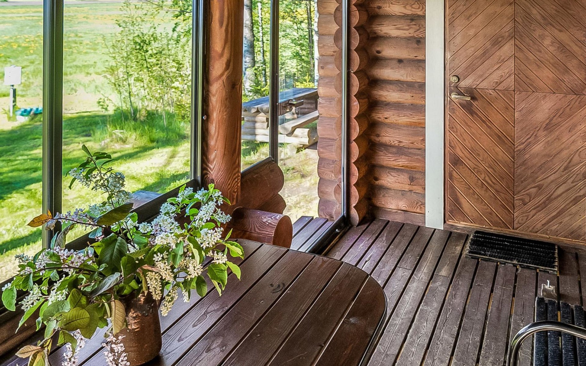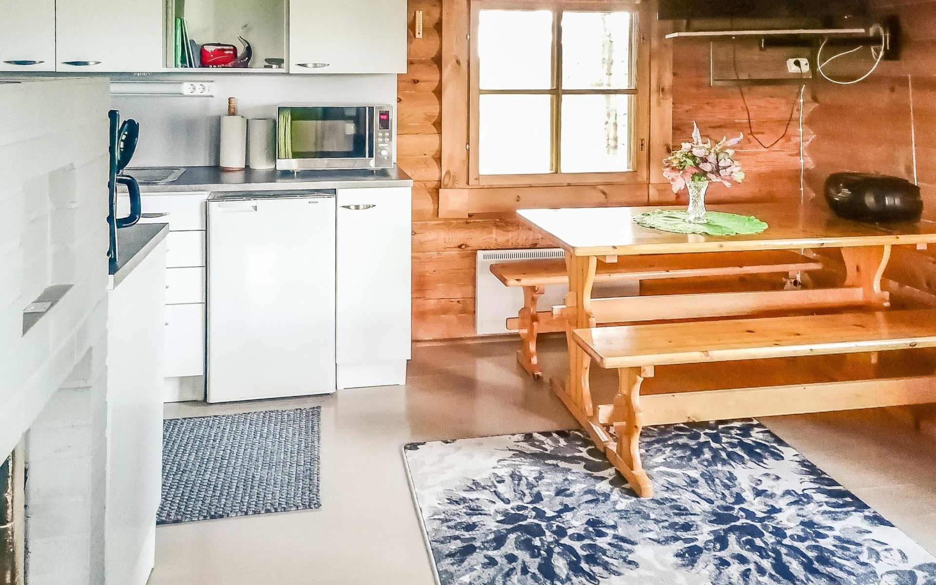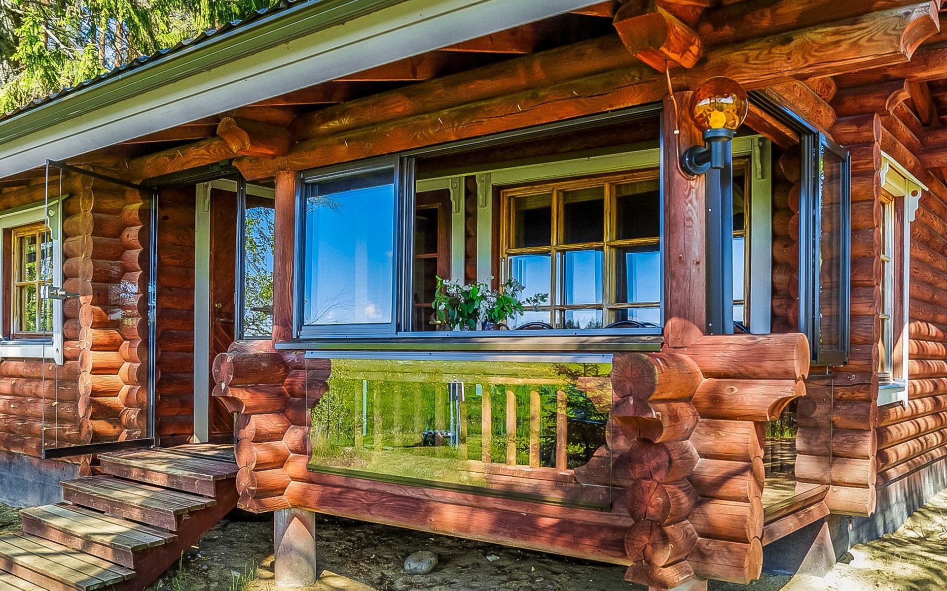 Log cabin 1990, living room/kitchen 1 sofa (for two persons), bedroom with 2 beds, dressing room, sauna (wood sauna stove), glazed veranda. Entrance to sauna and toilet via veranda. Neighbor cottage 100 m, distance between piers is 50 m.
