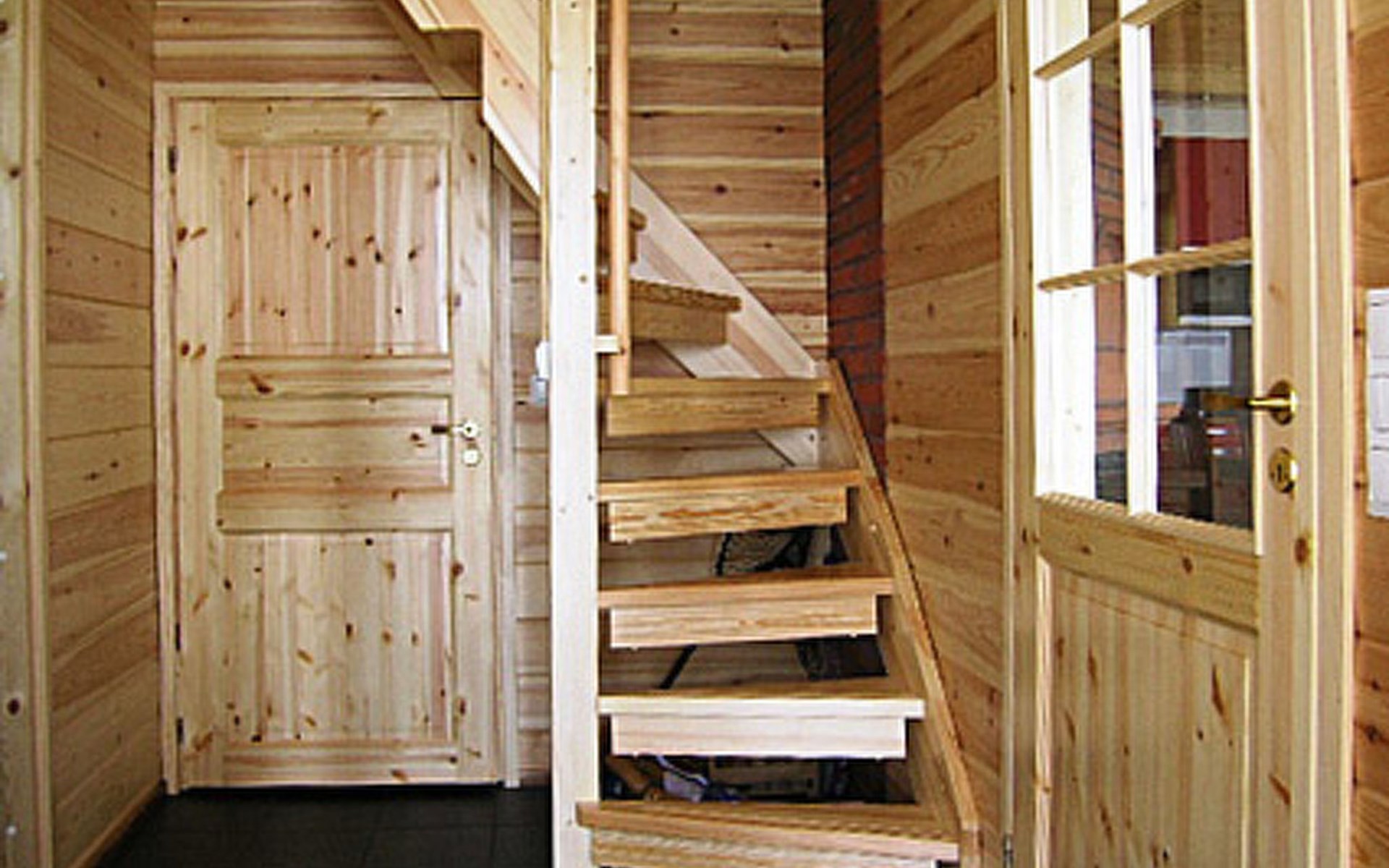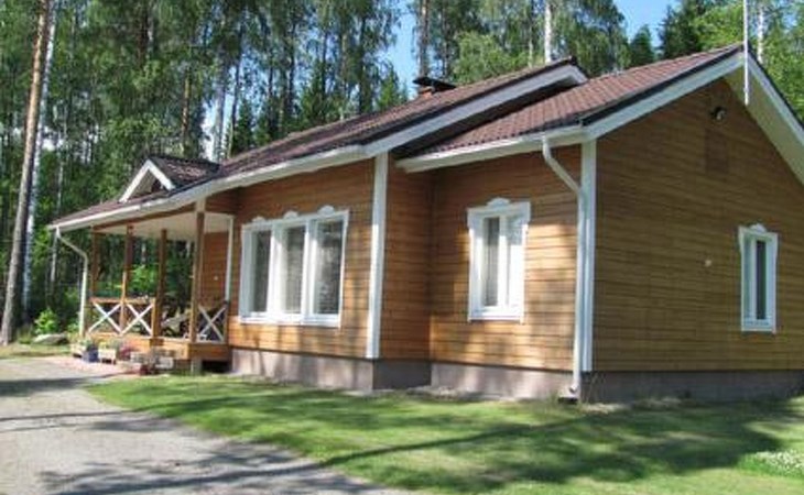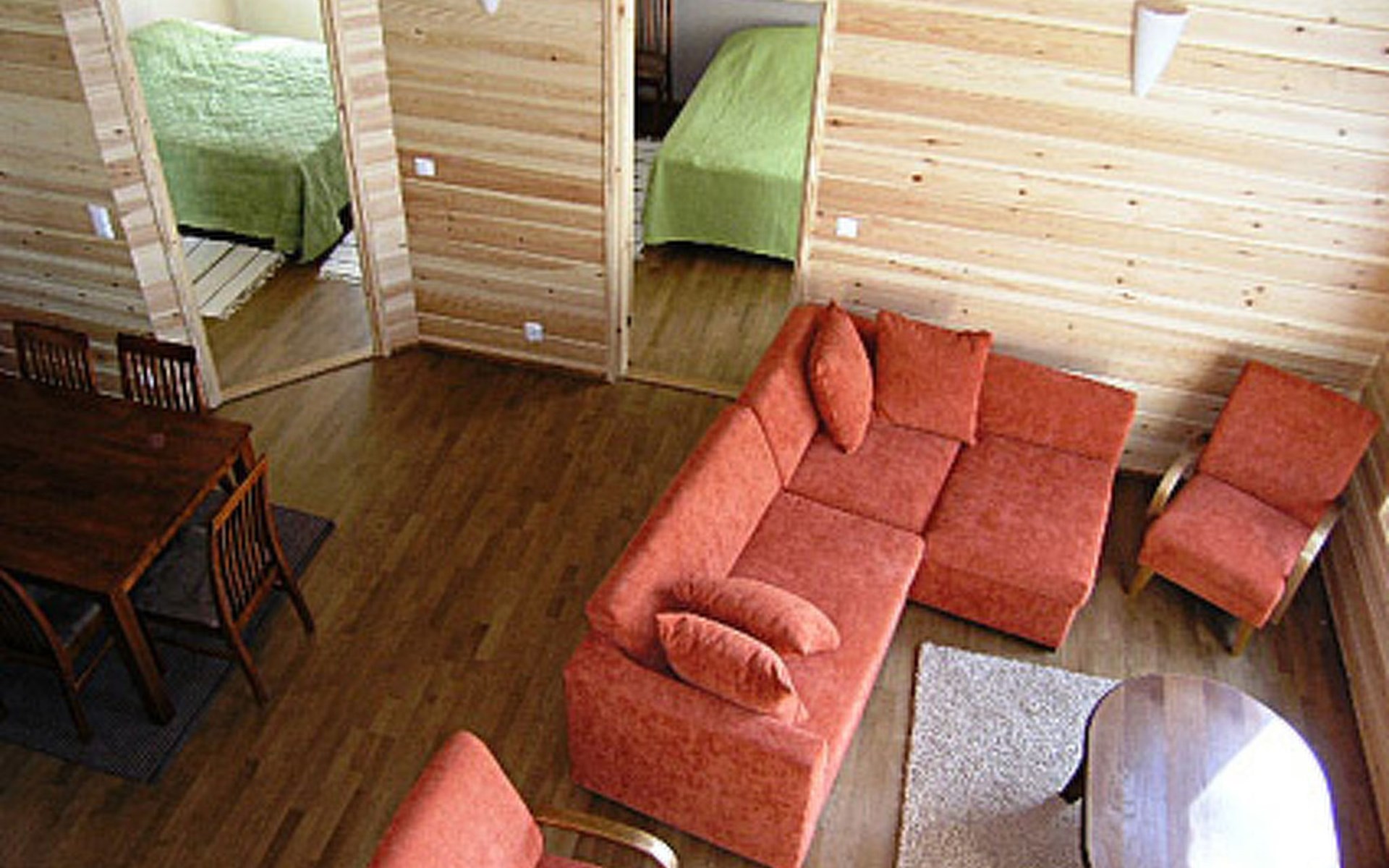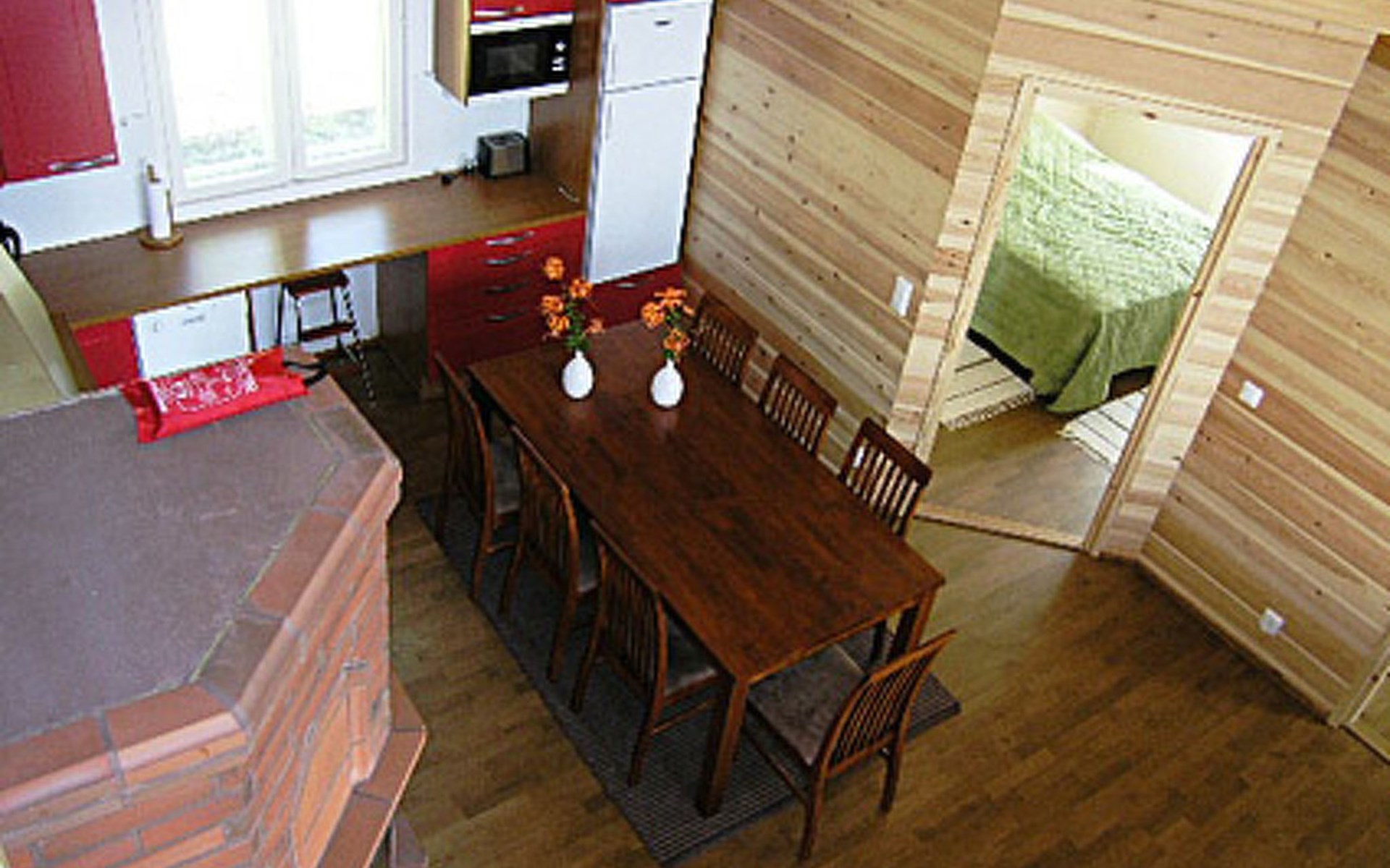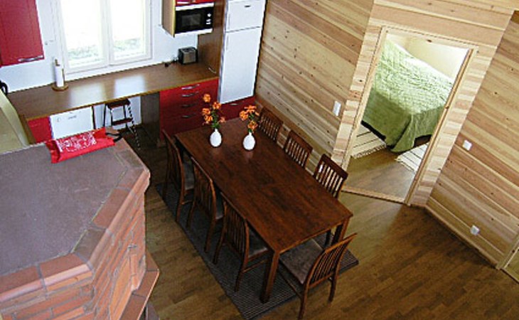 Wooden cottage 2007,living room/kitchen, 2 bedrooms double bed in one and single beds in another, sleeping loft (sloping ceilings, partly more than 160 cm high) 2 beds (80 and 120 cm wide), utility room/dressing room, washroom, sauna, hall, open porch.