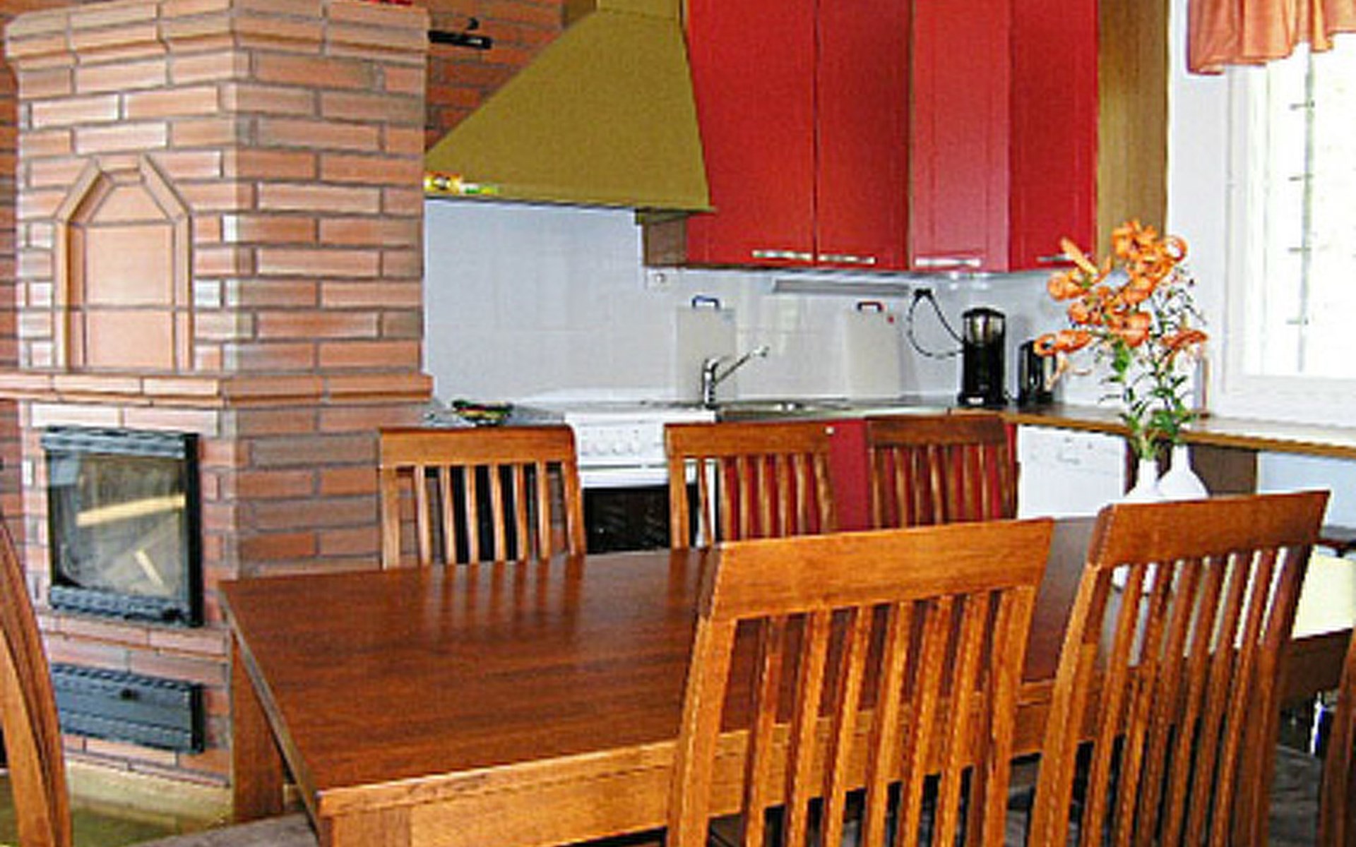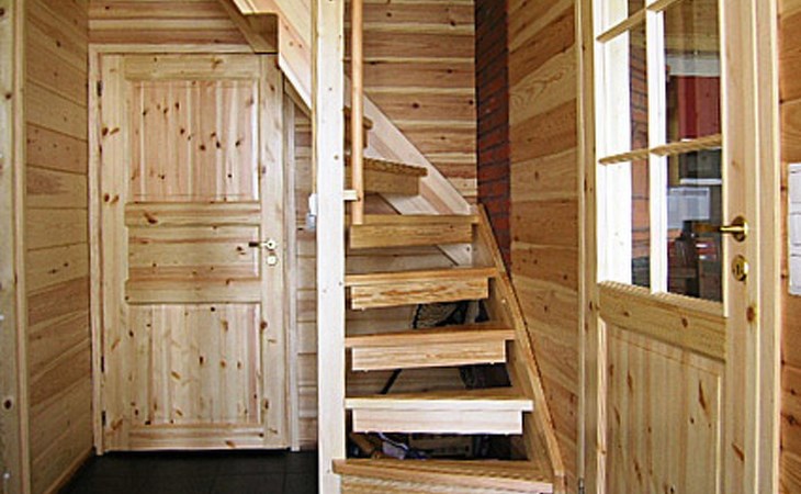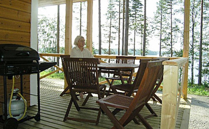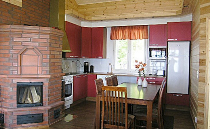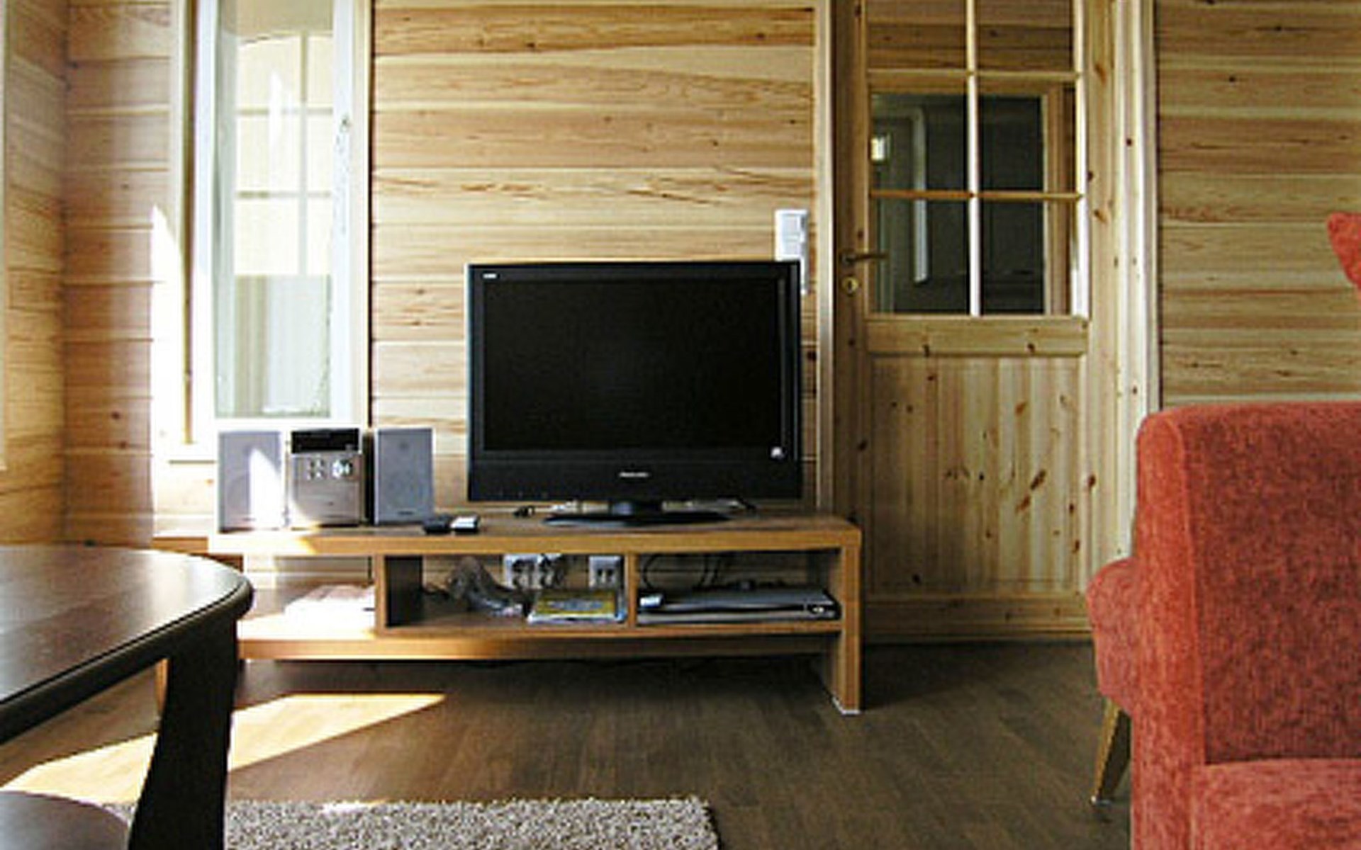 Wooden cottage 2007,living room/kitchen, 2 bedrooms double bed in one and single beds in another, sleeping loft (sloping ceilings, partly more than 160 cm high) 2 beds (80 and 120 cm wide), utility room/dressing room, washroom, sauna, hall, open porch.
