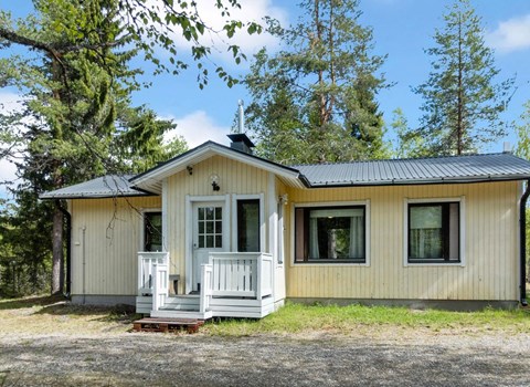 Downstairs: bedroom 3 beds, room with fireplace with 1 extra bed, sauna (wood-burning stove), washroom (shower). Cottage has balcony and open terrace towards evening sun.