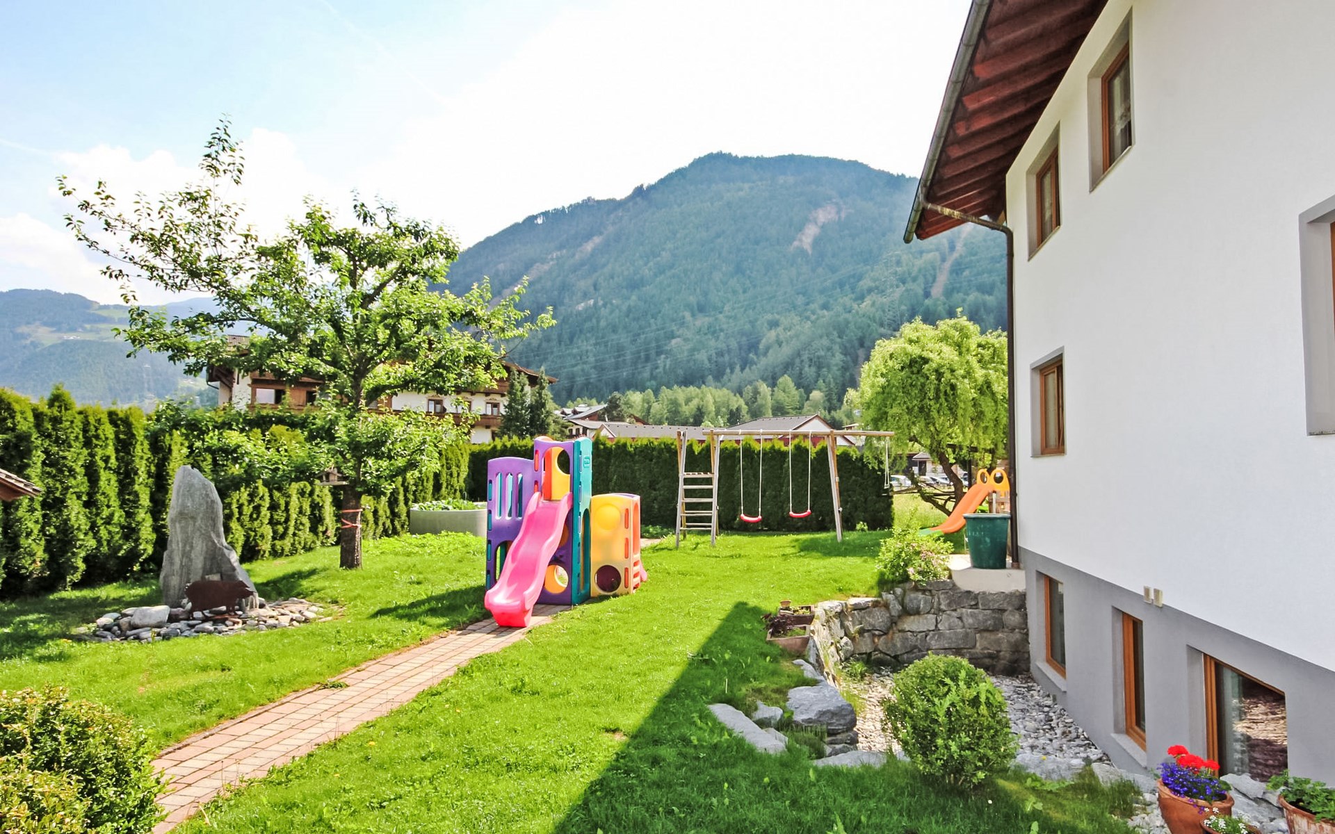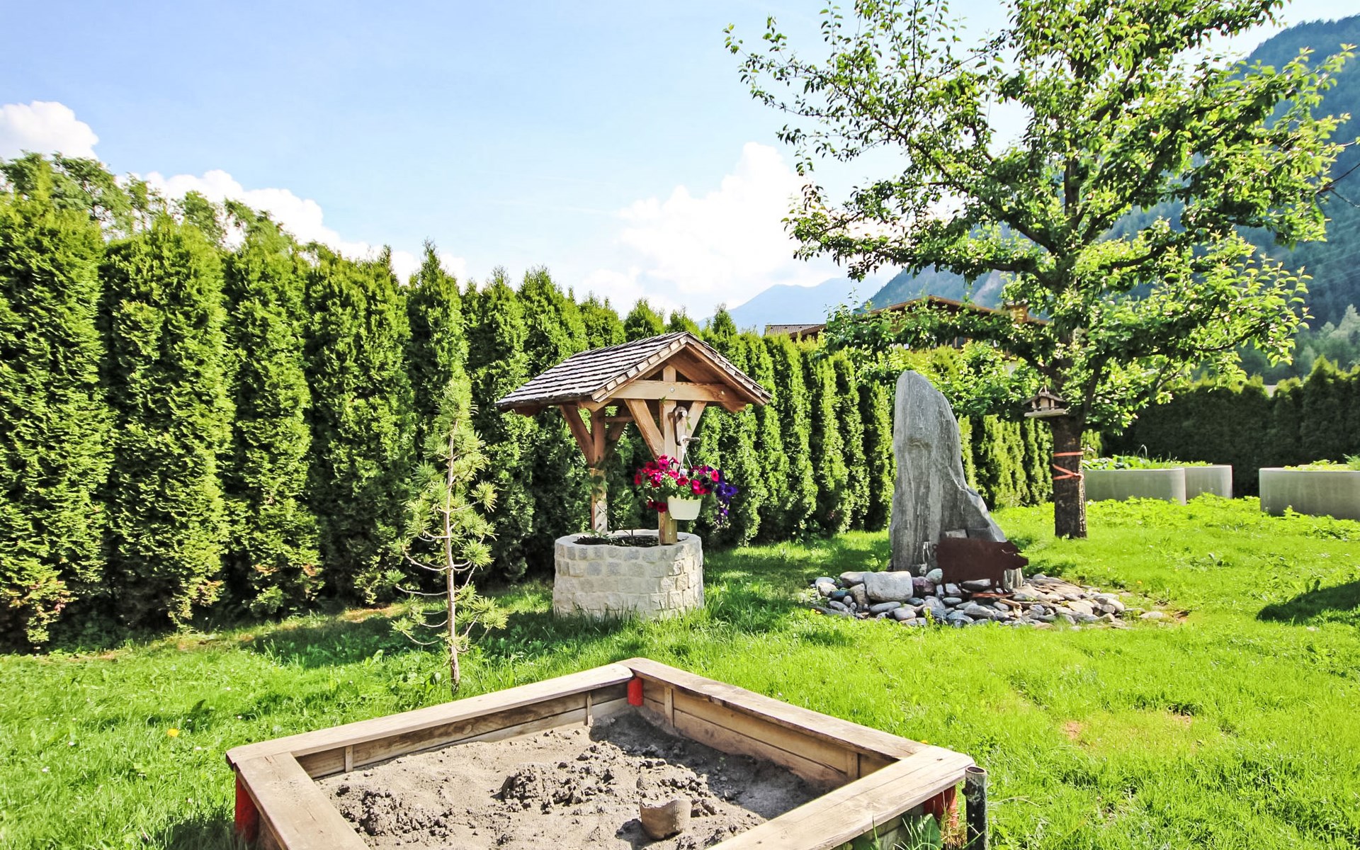 Ried 7 km from Fiss: Child friendly, beautiful apartment block "Handle". 300 m from the centre of Ried, in a quiet, sunny position, 200 m from the lake, 400 m from the skiing area. For shared use: well-kept garden, lawn for sunbathing. Patio, arbour (swing, sandbox). In the house: storage room for skis, central heating system, ski boot dryer. Parking (for 3 cars). Grocery 300 m, restaurant 200 m, bus stop "Ried i.O. Gemeindeamt" 500 m, railway station "Ă–tztal Bahnhof" 40.1 km, outdoor swimming pool 2400 km, bathing lake 850 m. Tennis 300 m, gondola lift 400 m, ski bus stop 200 m. Well-known ski regions can easily be reached: Fendels 400 m, Fiss-Serfaus-Ladis 7 km. Please note: suitable for families. Ski bus (free of charge). Free ski bus service to the ski region Fendels, Fiss-Serfaus-Ladis. Please note: the owner lives in the same residence. Additional accommodations can be booked. Free entry to the swimming lake. FURTHER INFORMATION: Sommer-Card included. https://www.tiroler-oberland.com/en/activities/summercard-summercard-gold. The owners have a fish-farm and a local restaurant in the nearby village.