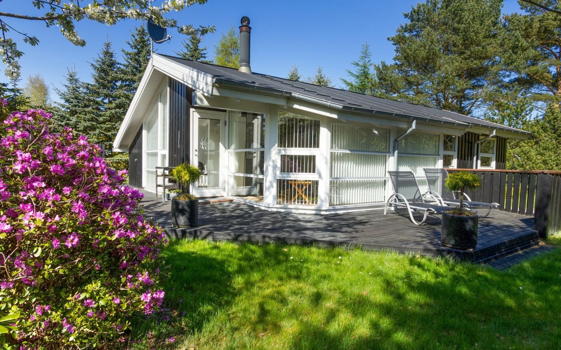 Single-family house, built in 1995. 500 m from the sea. For shared use: garden. Private: property 1'300 m2, garden (fenced). Terrace (60 m2), barbecue. In the house: sauna, washing machine. Parking at the house. Carport. Grocery 2.5 km. The owner does not accept any youth groups.