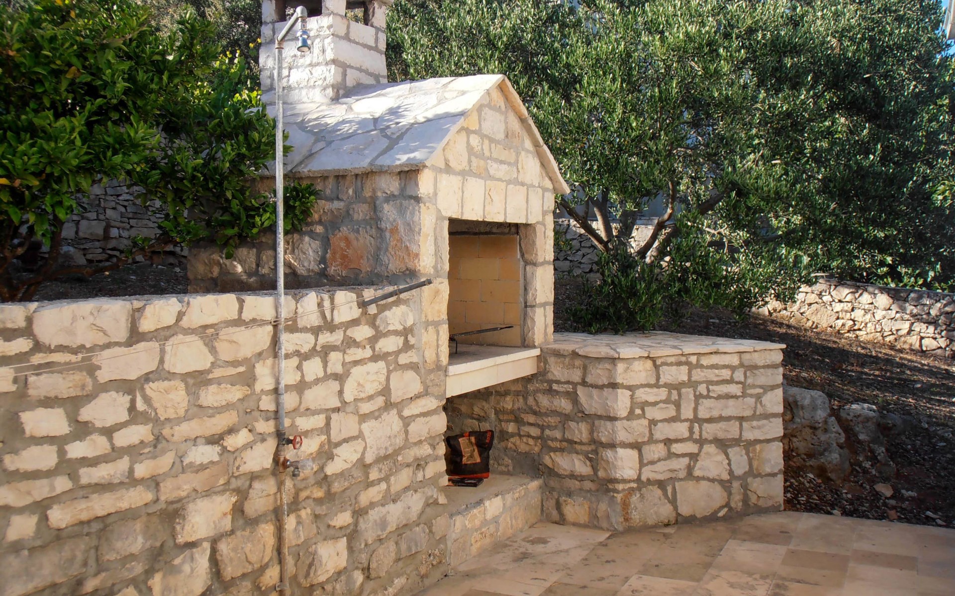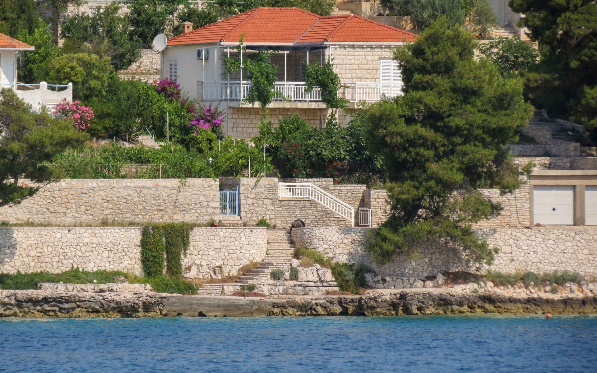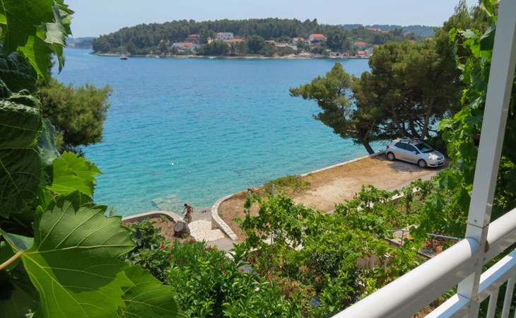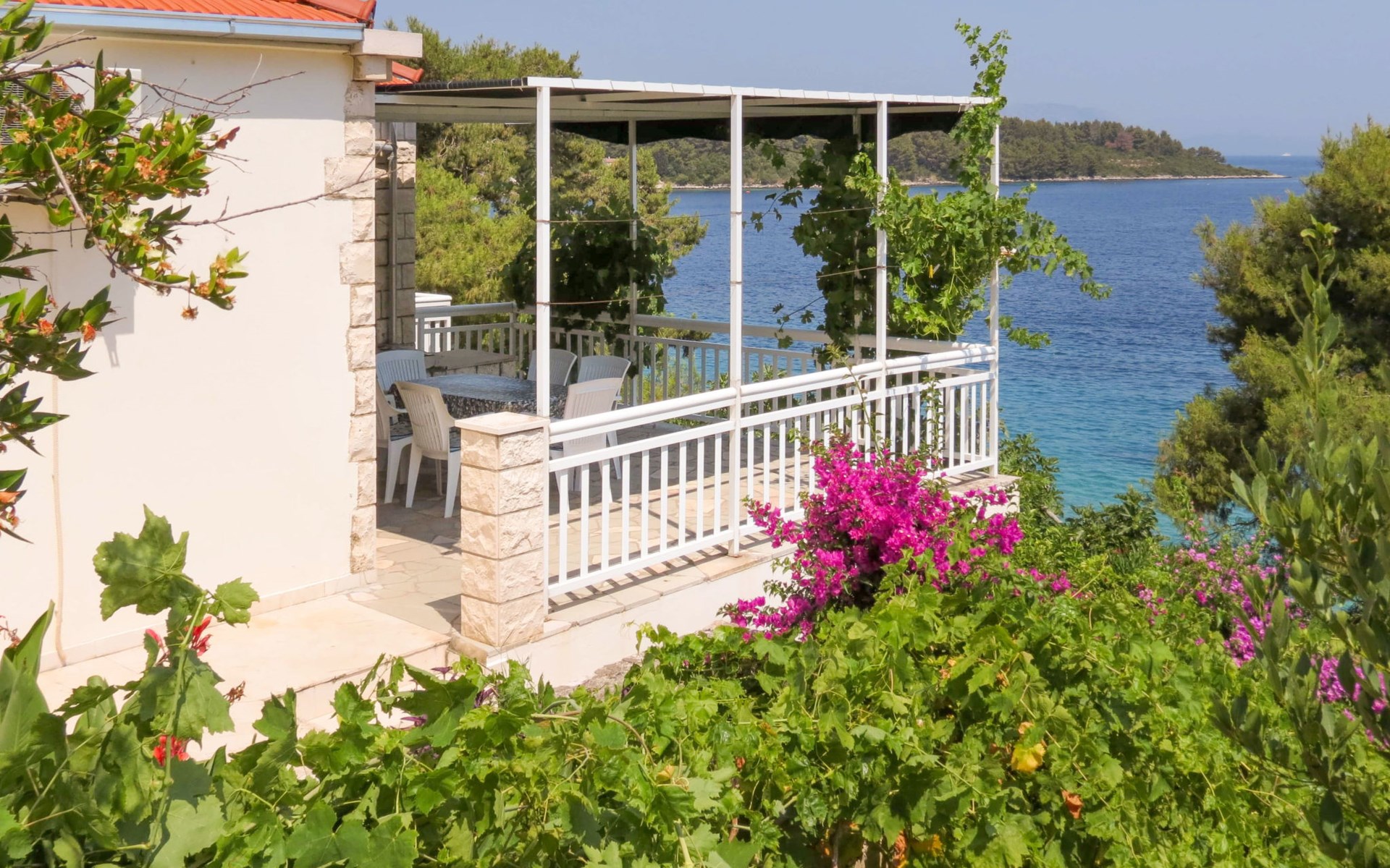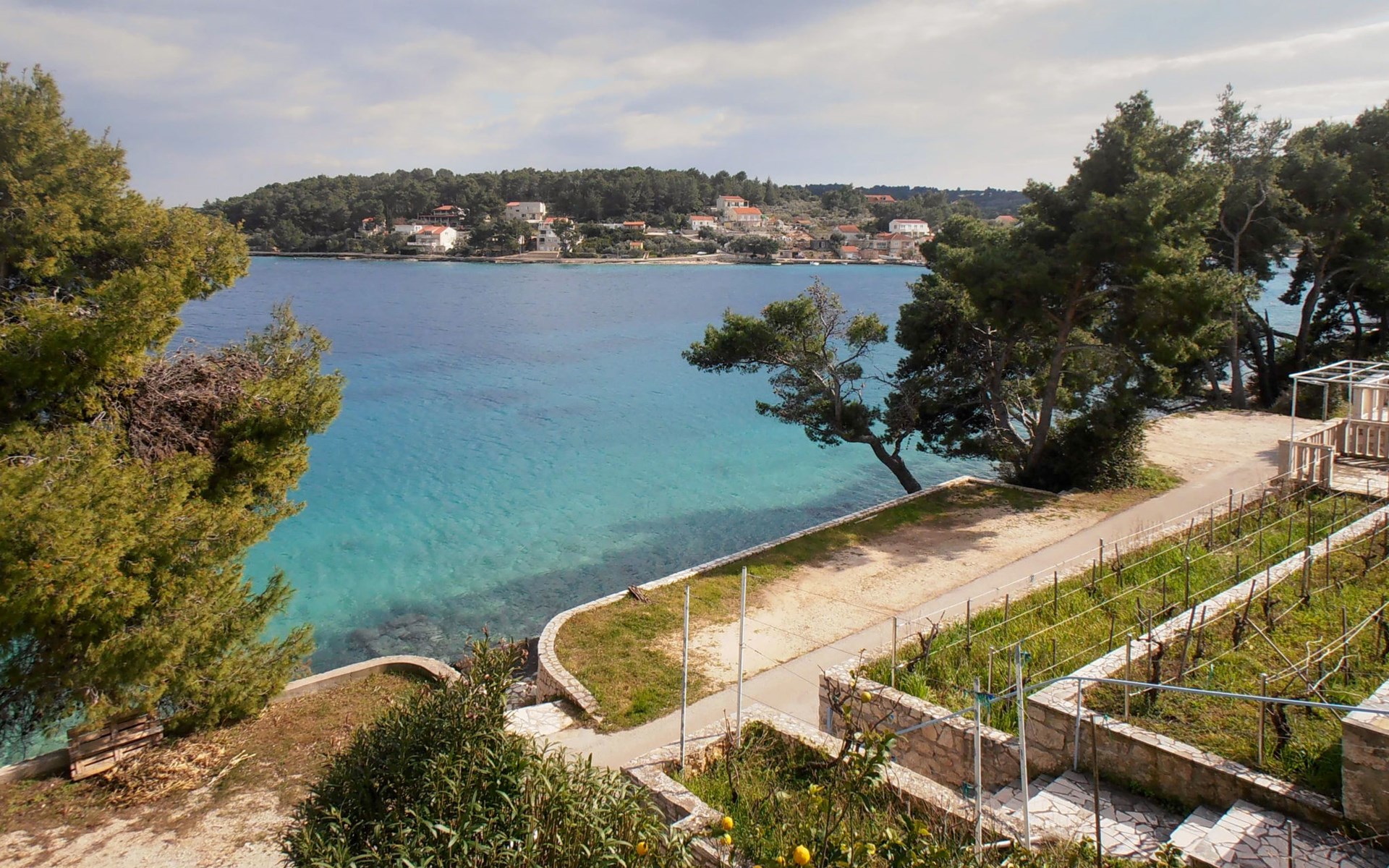 Beautiful single-family house "Bernardi", 2 storeys. In the district of Lumbardijsko Račišće 1.5 km from the centre of Lumbarda, in a sunny position on a slope, 15 m from the sea, 15 m from the beach, in a cul-de-sac, in the countryside, south facing position. Private: property 550 m2 (fenced). Outdoor shower, barbecue. In the house: internet access. Parking at the house on the premises. Shop 1.5 km, restaurant 1.5 km, bus stop 1.7 km, sandy beach 2 km pebble beach 2 km, concrete beach 15 m. The house is situated in a nice, quiet bay. Stairs leading from the house over the small local cul-de-sac street to the concrete beach.