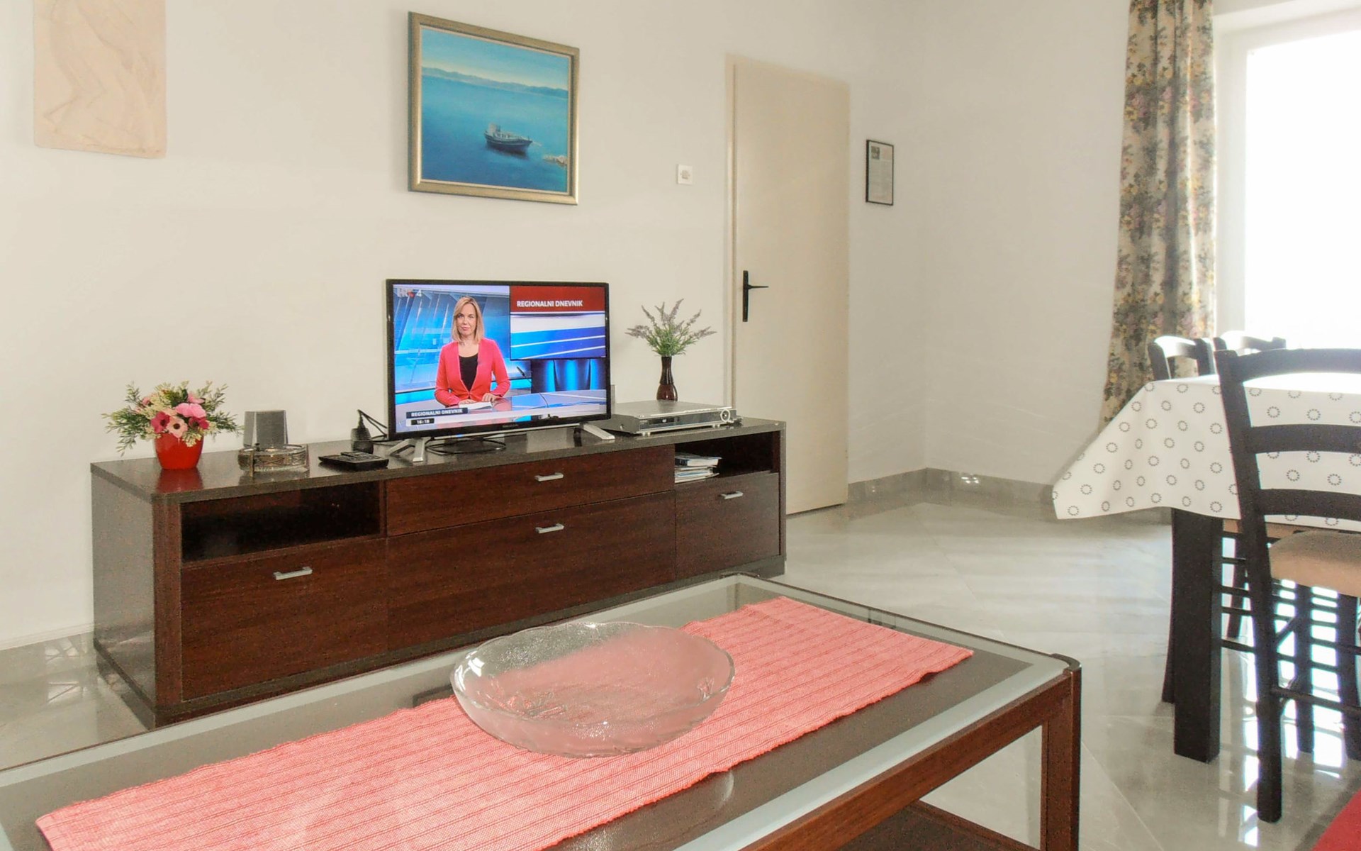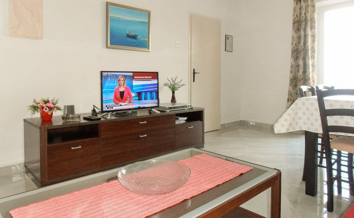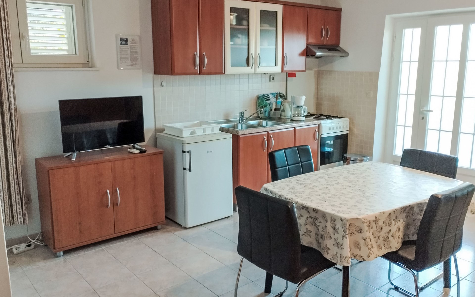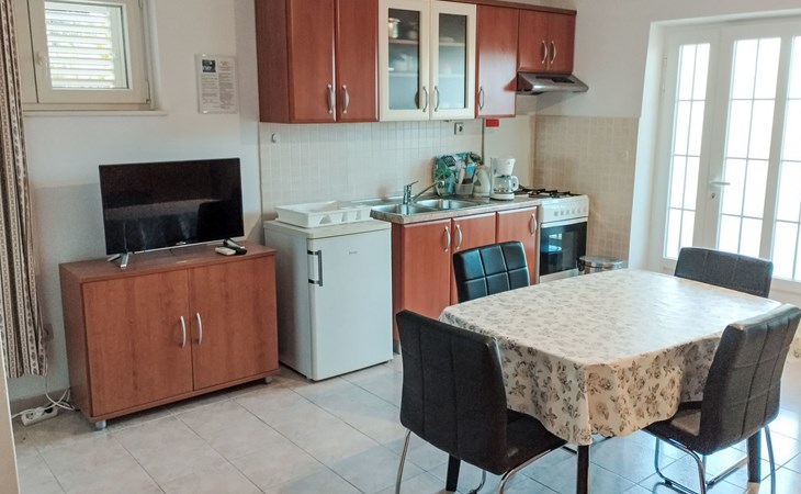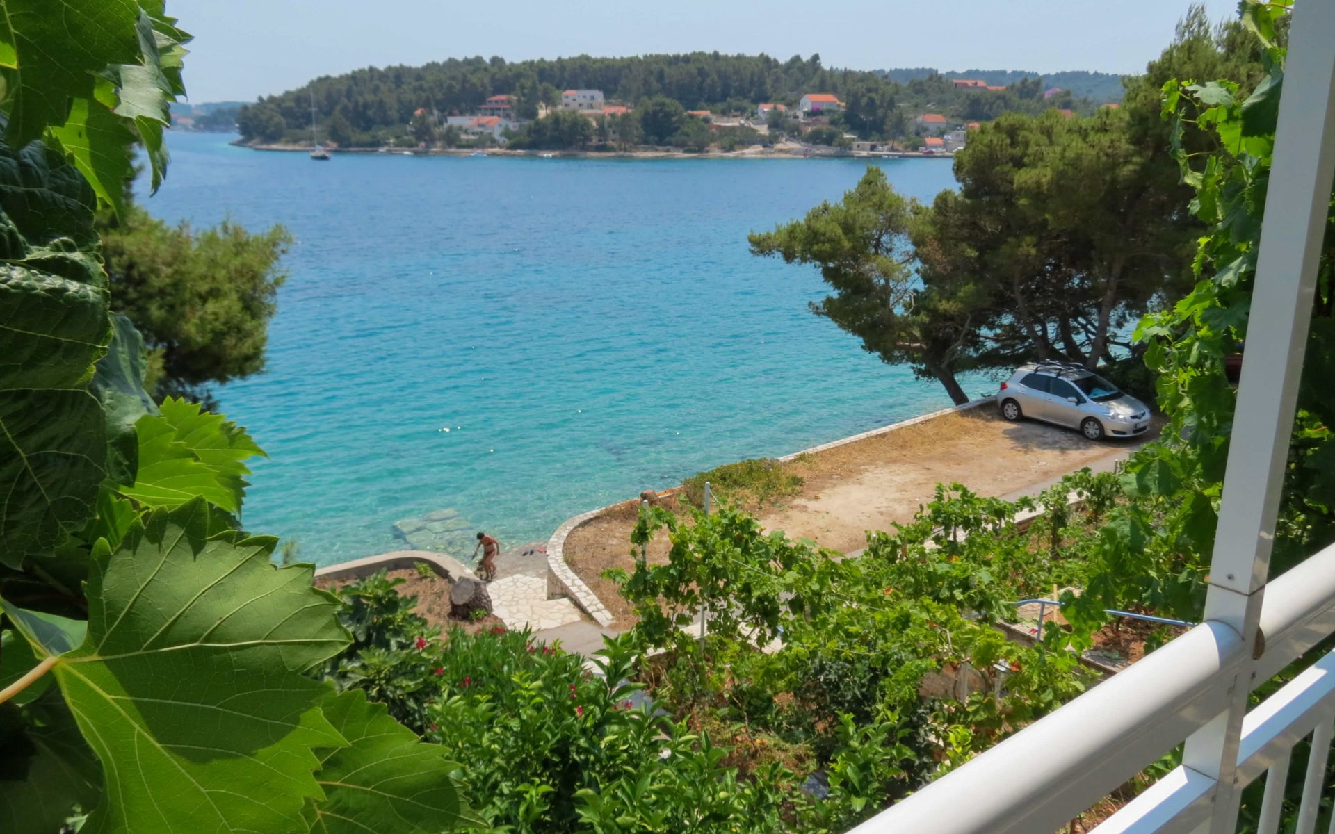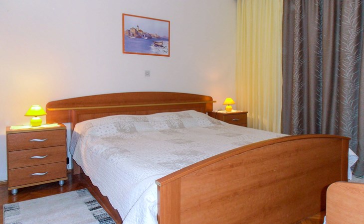 Beautiful single-family house "Bernardi", 2 storeys. In the district of Lumbardijsko Račišće 1.5 km from the centre of Lumbarda, in a sunny position on a slope, 15 m from the sea, 15 m from the beach, in a cul-de-sac, in the countryside, south facing position. Private: property 550 m2 (fenced). Outdoor shower, barbecue. In the house: internet access. Parking at the house on the premises. Shop 1.5 km, restaurant 1.5 km, bus stop 1.7 km, sandy beach 2 km pebble beach 2 km, concrete beach 15 m. The house is situated in a nice, quiet bay. Stairs leading from the house over the small local cul-de-sac street to the concrete beach.