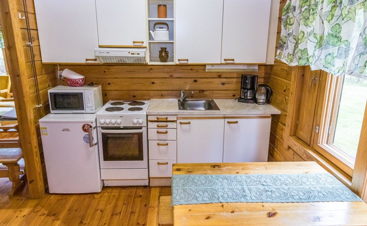 The manor area offers a variety of free of charge and payable activities for children and adults, such as mini golf, a playground, and swings. The cabin is located right by the fish-rich Lake Ala-Rääveli. The shared gently deepening, firm-bottomed beach is equipped with a pier and a grill hut, inviting you to relax by the water. The shared beach is equipped with a pier and a grill hut, inviting you to relax by the water. Additionally, the area has charming farm animals such as horses, sheep, donkeys, goats, and silkie chickens. In the summer, sheep graze on a nearby island accessible via a scenic nature trail — a perfect spot for peaceful walks and animal watching. Restaurant services are available in the area during the summer season. Distances: Heinola 18 km, Heinola Frisbee Golf Course 17 km (selected the second-best course in the world in 2024), Heinola Bird Sanctuary 18 km, Pirunkirkko Hiking Trail 23 km, Vierumäki Sports Institute and Golf 38 km.