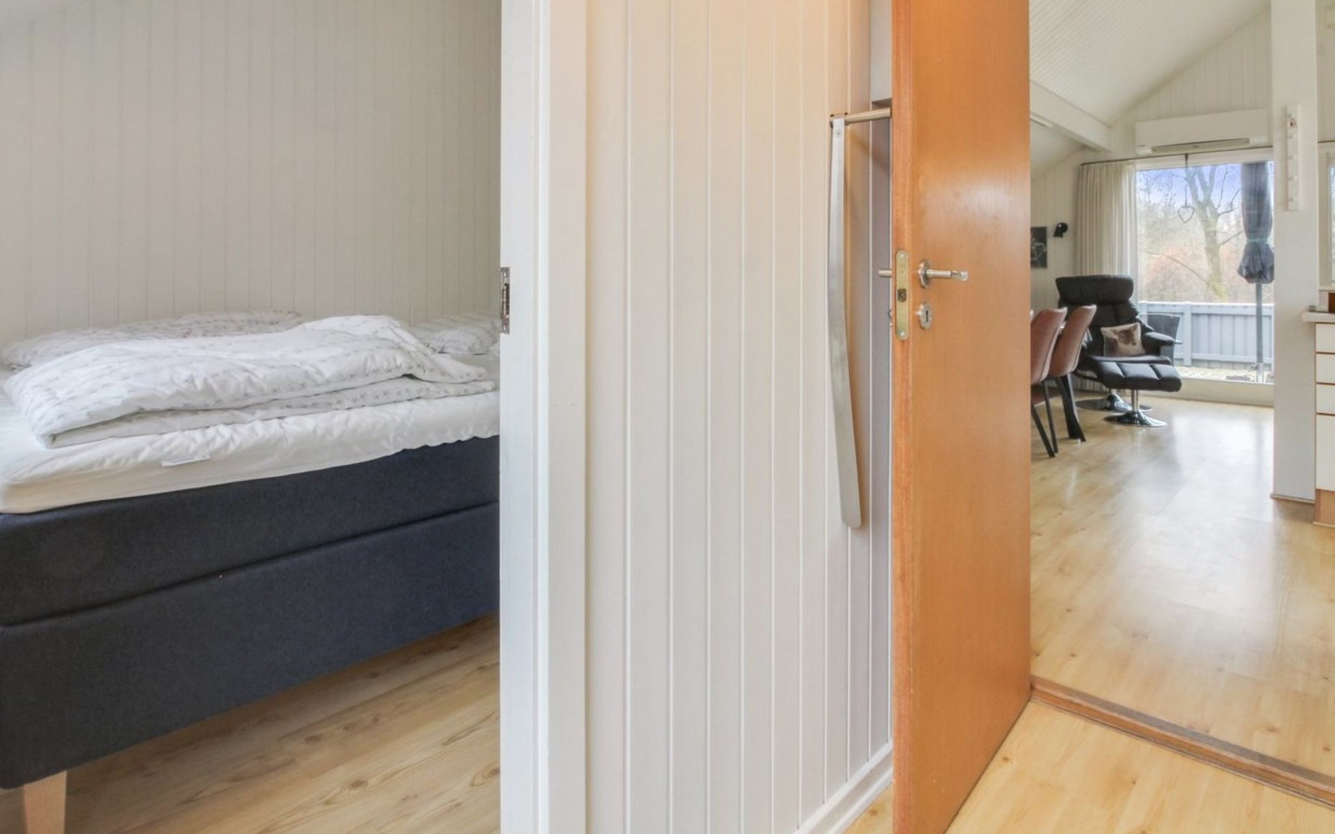 Single-family house, built in 1981. 31 km from the sea. Private: natural state property 871 m2. Terrace (60 m2), barbecue, children's playground (swing). In the house: washing machine. Parking at the house. E-charging station. Grocery 300 m. Golf course 2.8 km. The owner does not accept any youth groups.