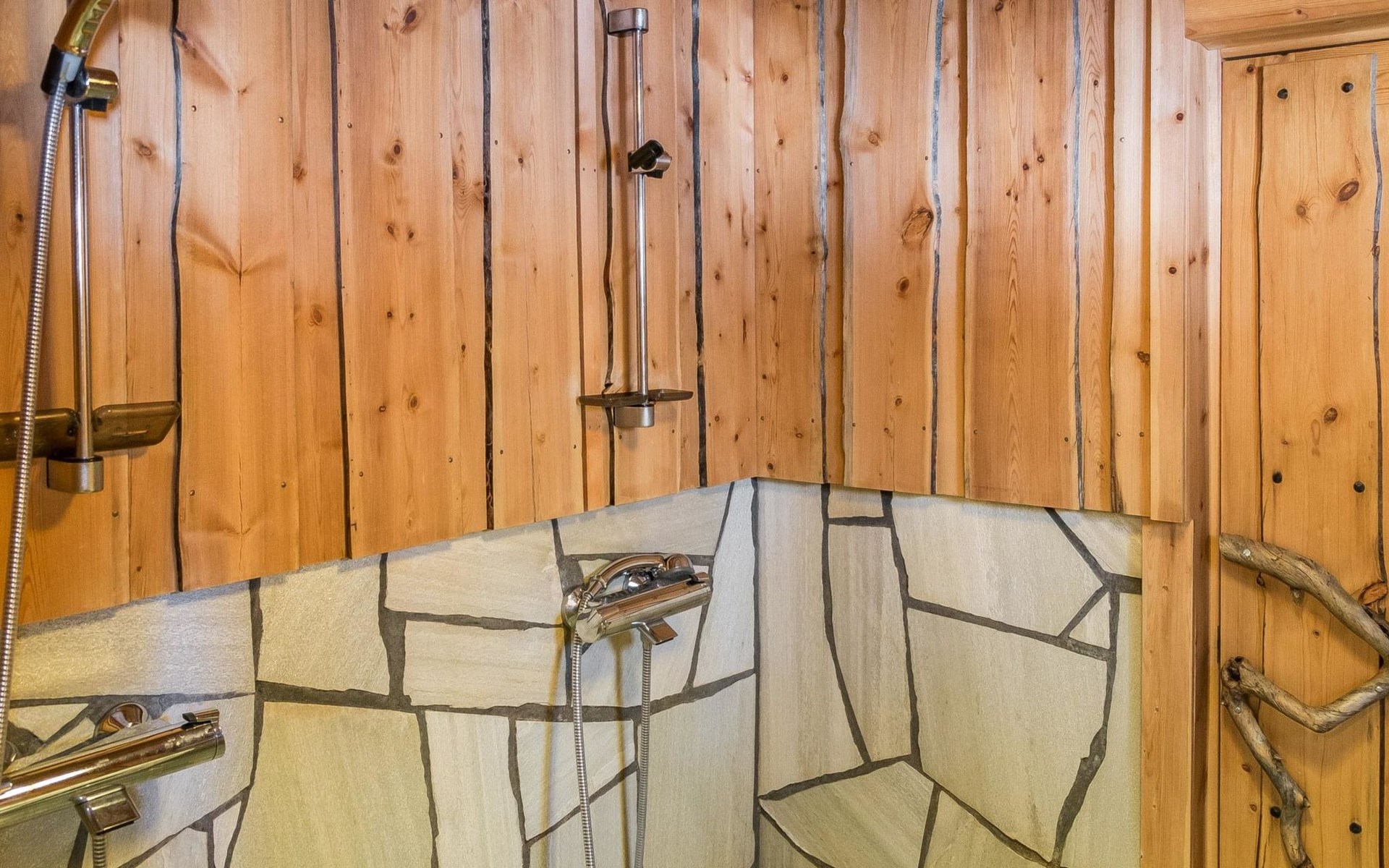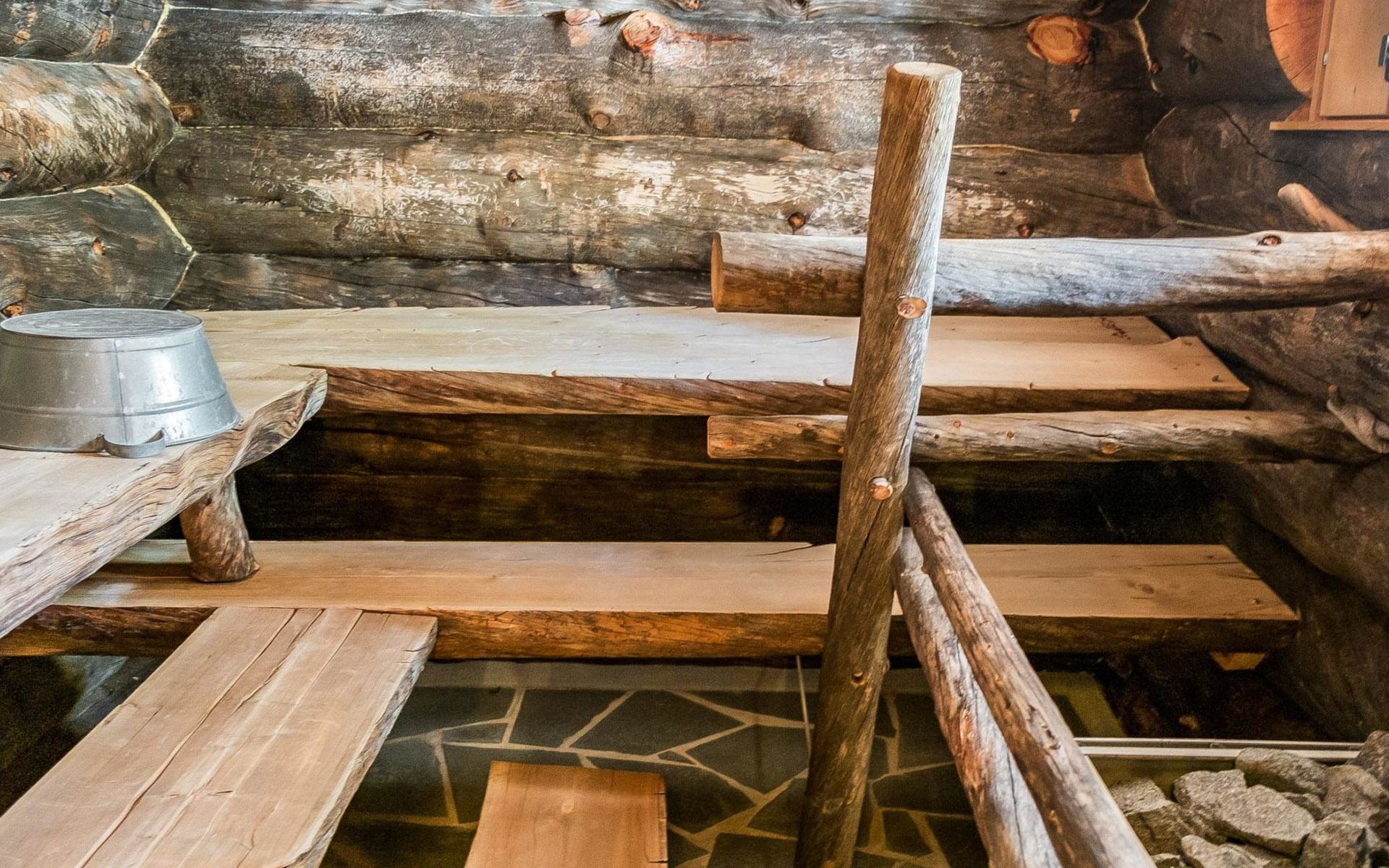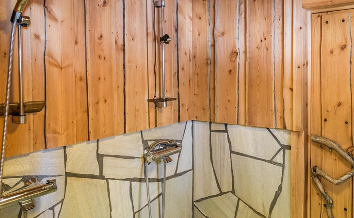 Villa is in one floor. It has three bedrooms from which one has a double bed, one has two single beds and one has two full bunk beds. Living room is very spacious and offers seating for the entire group. Kitchen and dining area is right next to the living room. In addition the villa has a dressing room, bathroom with two showers and a spacious sauna. Toilet is separate.