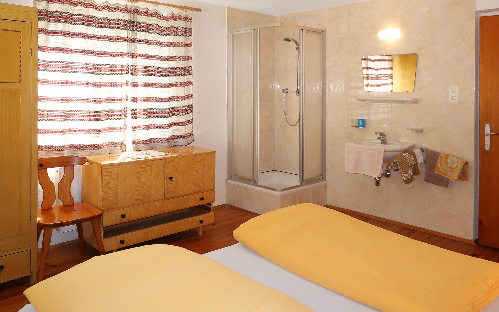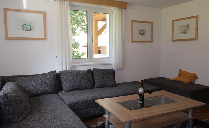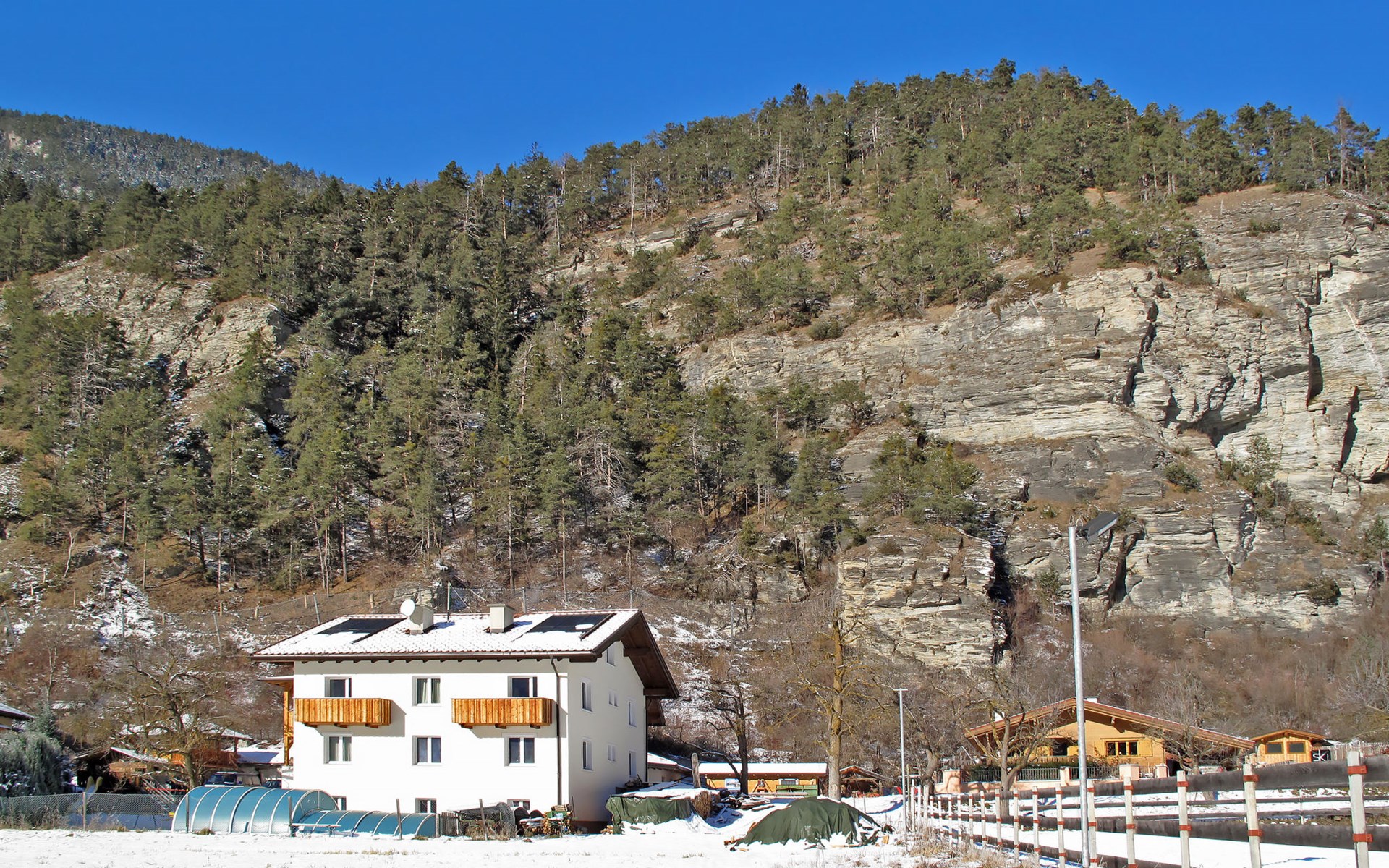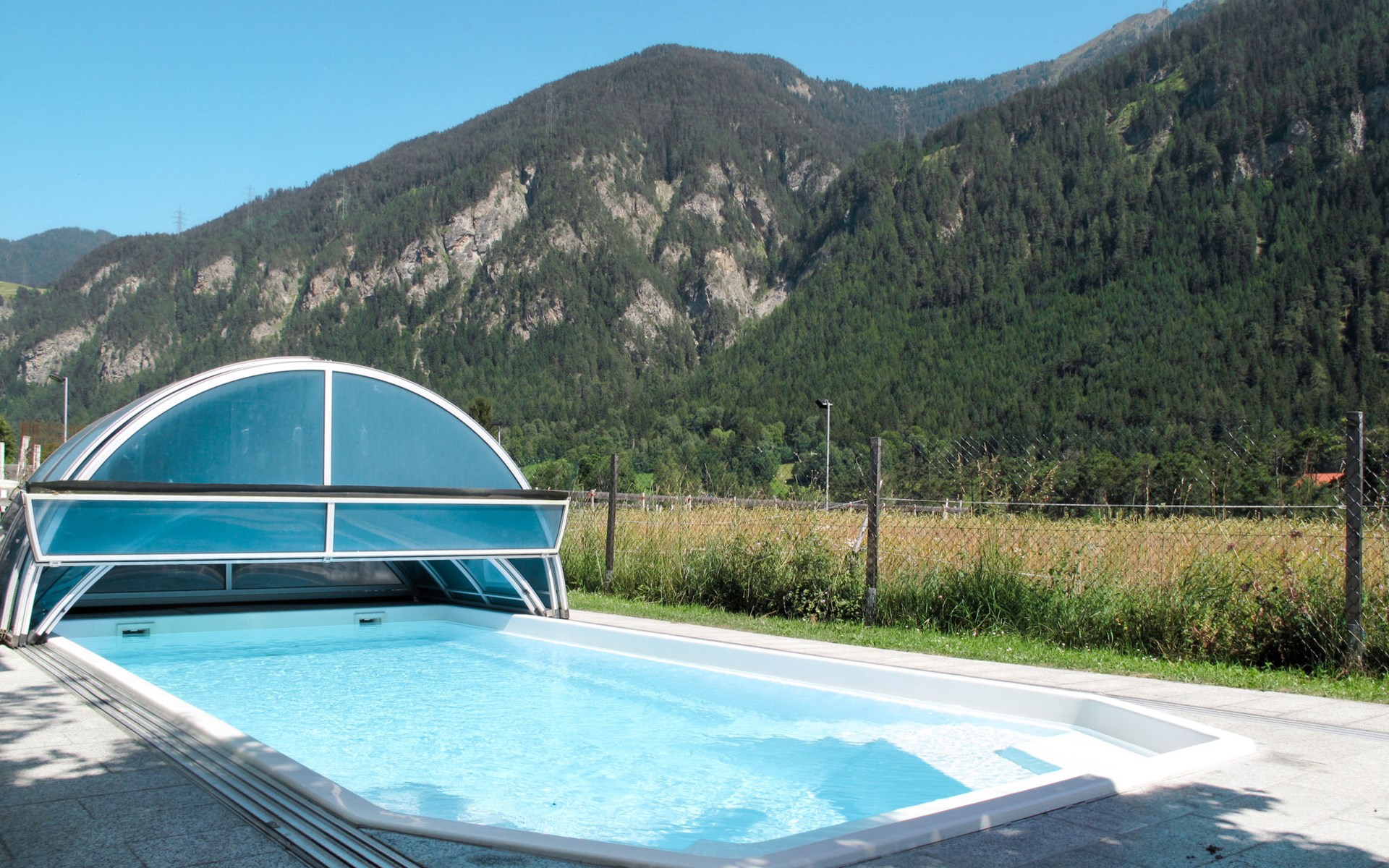 Tösens 7 km from Ried: Single-family house "Aster", 900 m a.s.l., 2 storeys, detached, surrounded by meadows and fields. In the hamlet Untertösens 1 km from the centre of Tösens, 7 km from the centre of Ried, 23 km from the centre of Landeck, 7 km from the lake, 7 km from the skiing area, in a cul-de-sac. Private: property (fenced), garden with trees, meadow, swimming pool heated (30 m2, seasonal availability: 01.May. - 15.Sep.). Children's playground. Bread roll service possible. Stepped path to the house. Parking (for 6 cars) on the premises. E-charging station. Shop 1 km, supermarket 8 km, bus stop 1 km, railway station "Landeck" 23 km, outdoor swimming pool 8 km, indoor swimming pool 22 km, bathing lake "Ried" 7 km. Golf course (9 hole) 44 km, walking paths from the house, cycle lane 50 m, mountain railway 7 km, ski lift 7 km, slopes 7 km, ski school 7 km. Well-known ski regions can easily be reached: Fendels 7 km, Fiss-Serfaus-Ladis 13 km, Nauders, Samnaun (Silvretta Skiarena) 25 km. Well-known lakes can easily be reached: Reschensee 35 km. Local sale of farm products. Please note: the owner lives on the same property. Owner uses some rooms in the house. Animals in the neighbourhood.