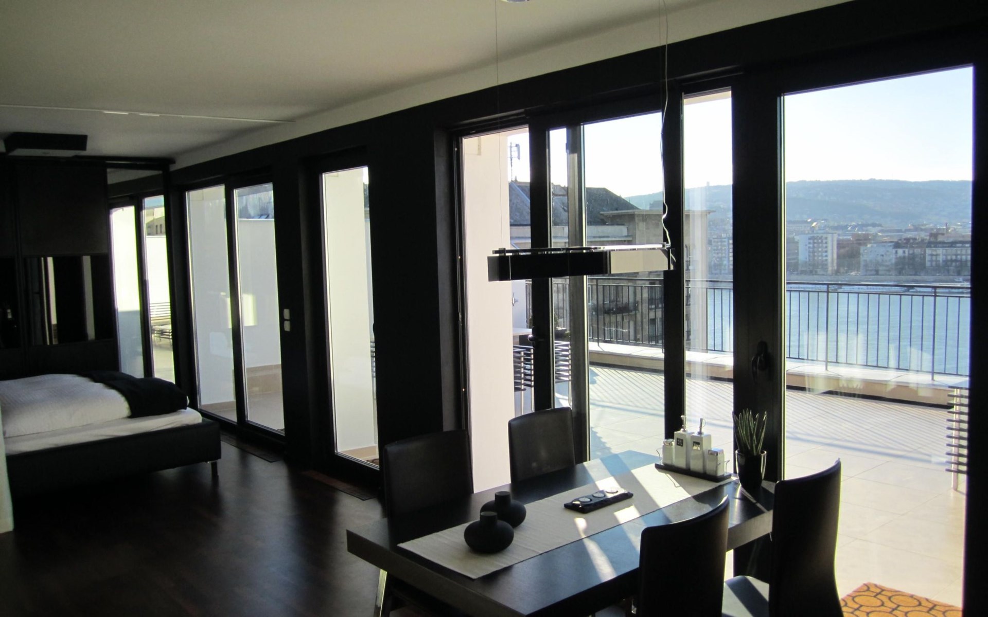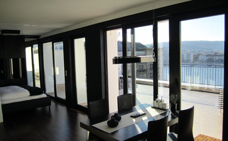 Outside, the spacious west-facing terrace, which is for exclusive use, invites you to relax. This private area is perfect for making the most of the hours of sunshine or enjoying a cosy dinner in the evening air. Guests also have access to a lovingly landscaped garden, which is available for communal use and offers an oasis of tranquillity in the midst of the urban surroundings.