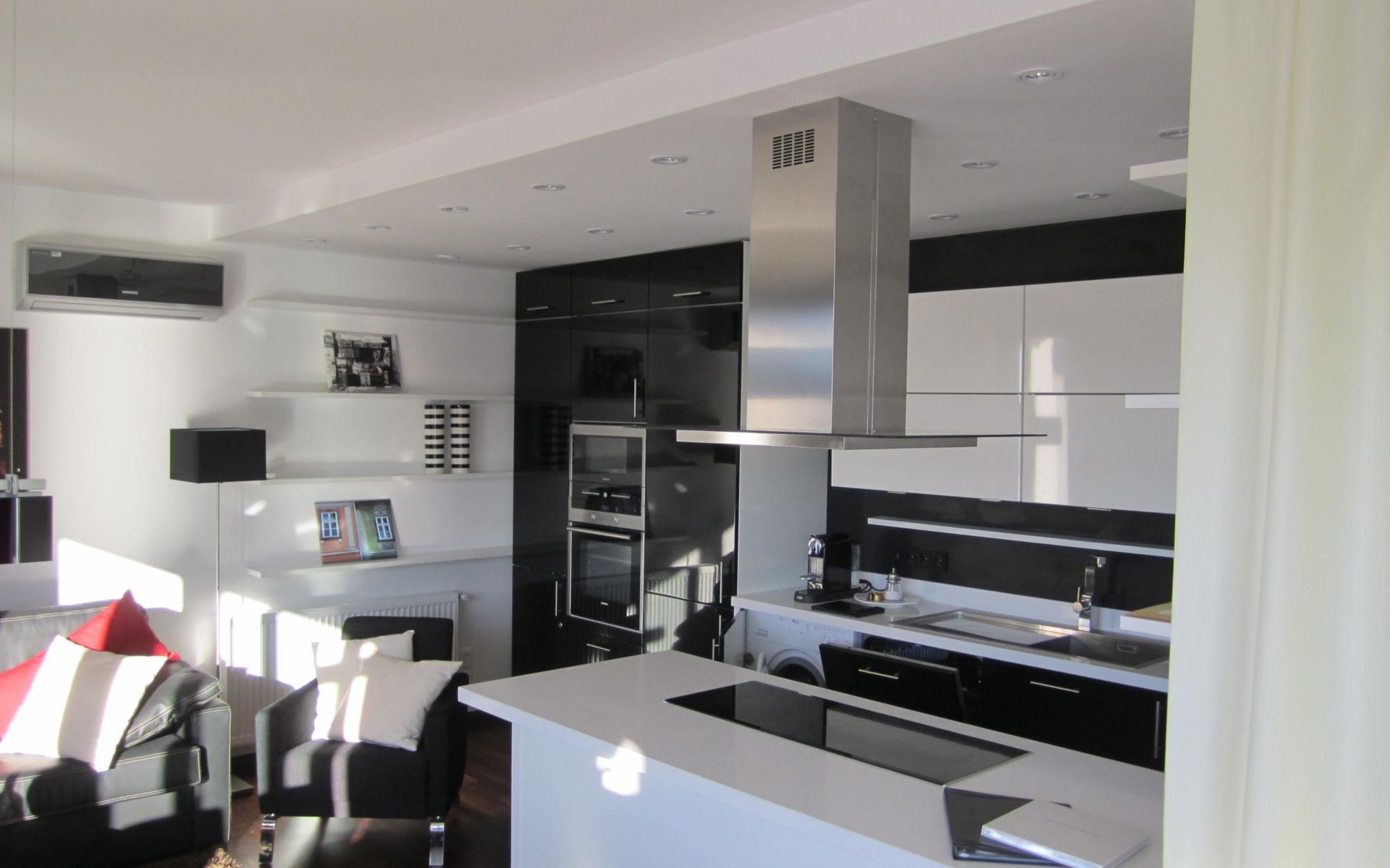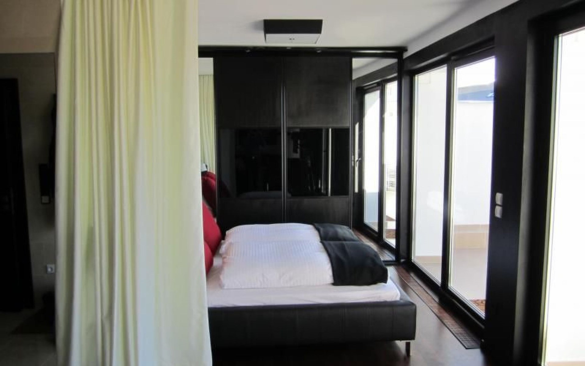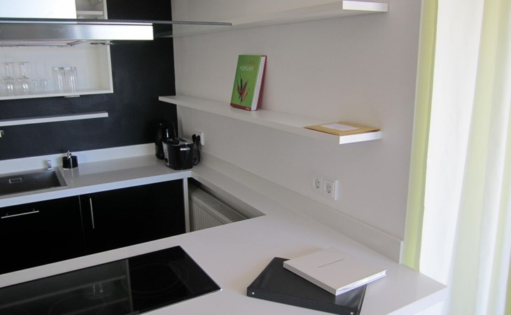This exquisite holiday flat has an upscale interior design that makes every stay a first-class experience. The careful selection of high-quality amenities ranges from two fully equipped bathrooms to a range of modern kitchen appliances, including a dishwasher, a filter and capsule coffee machine and a mini oven. For your comfort, the flat offers underfloor heating in some areas and individually controlled air conditioning throughout. During your stay, a washing machine and tumble dryer are available for your sole use, guaranteeing a stress-free stay.