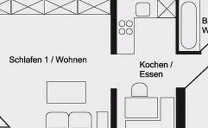The interior of the flat leaves nothing to be desired. The combined living room and bedroom offers enough space for two adults, while the separate bedroom is suitable for either 1-2 children or an additional adult. The modern kitchen-cum-living room with dishwasher, fridge, freezer compartment, oven and microwave promises complete self-catering. A contemporary bathroom, TV and WLAN contribute to a carefree stay. As a special highlight, guests who book at least four nights receive free one-off access to the sauna area on the first floor.
