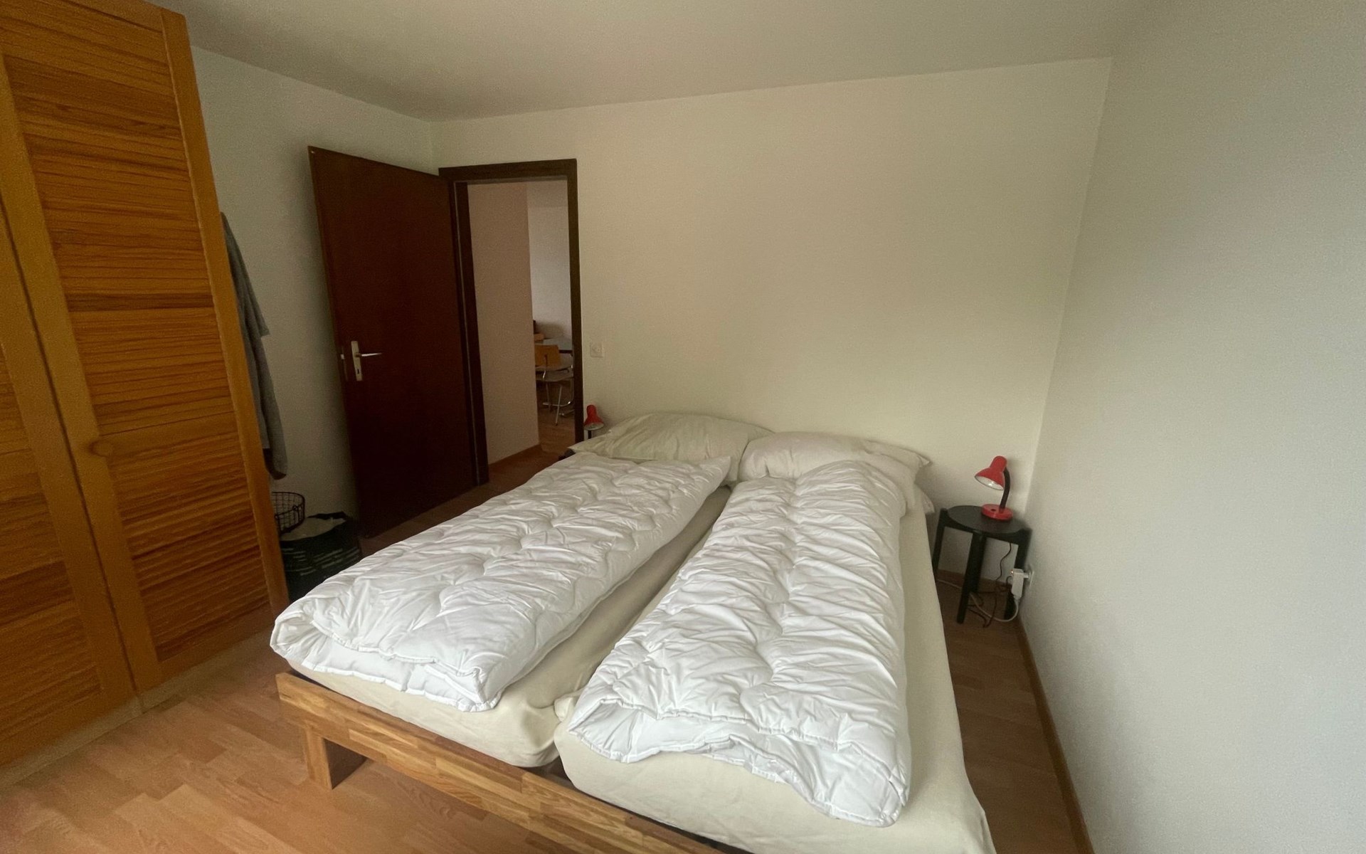 Inside, the flat boasts two bedrooms that can be darkened, promising peace and quiet. The well-equipped kitchen with a 3-ring hob, capsule coffee machine and dishwasher fulfils all your culinary needs, while the separate washing machine provides additional convenience during your stay. The bathroom has a handy bath with shower attachment, and a tumble dryer is available in the building for communal use to make your stay as comfortable as possible.