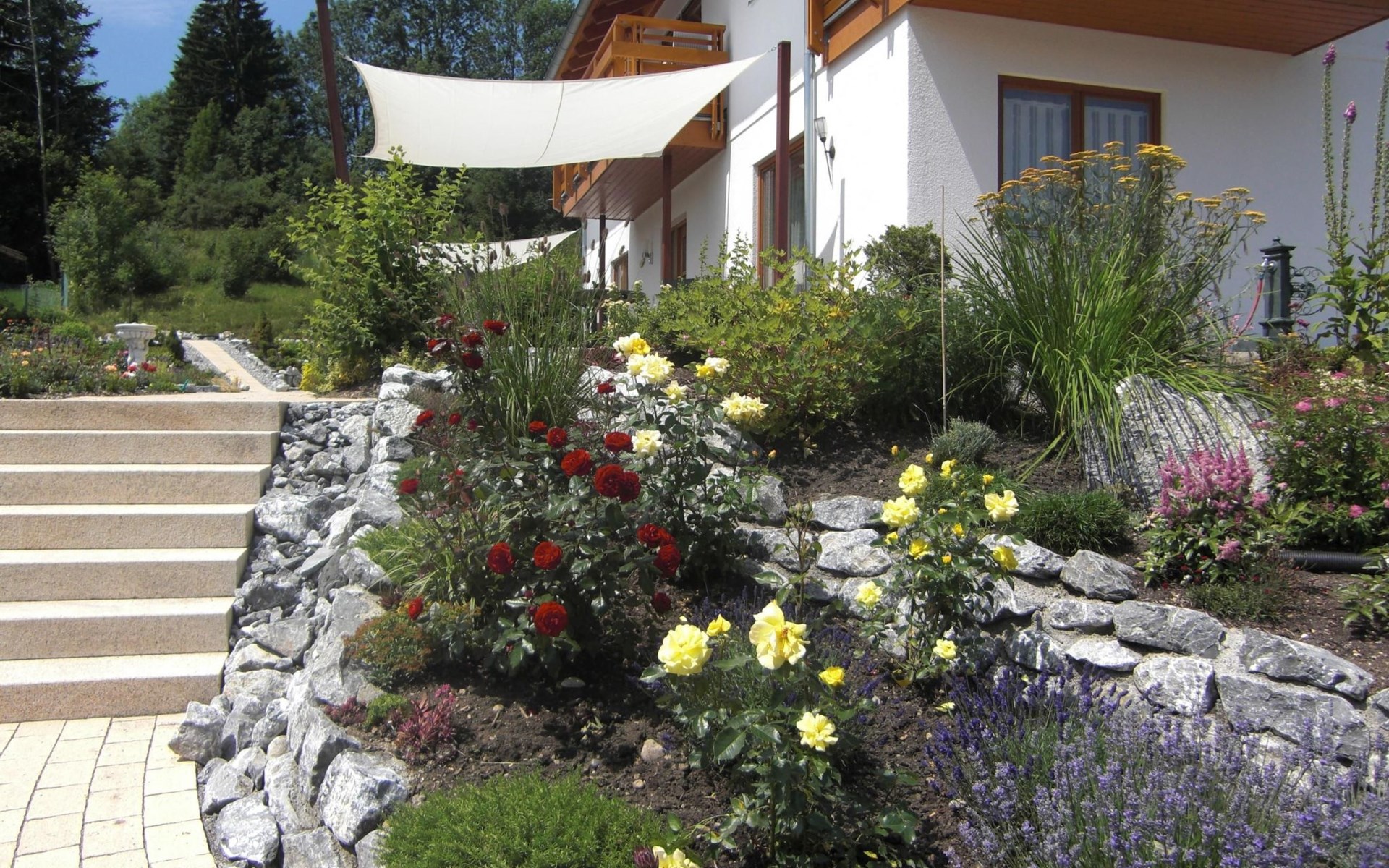 Pure relaxation on your sun terrace, south-facing in the middle of a large flower and shrub garden.
