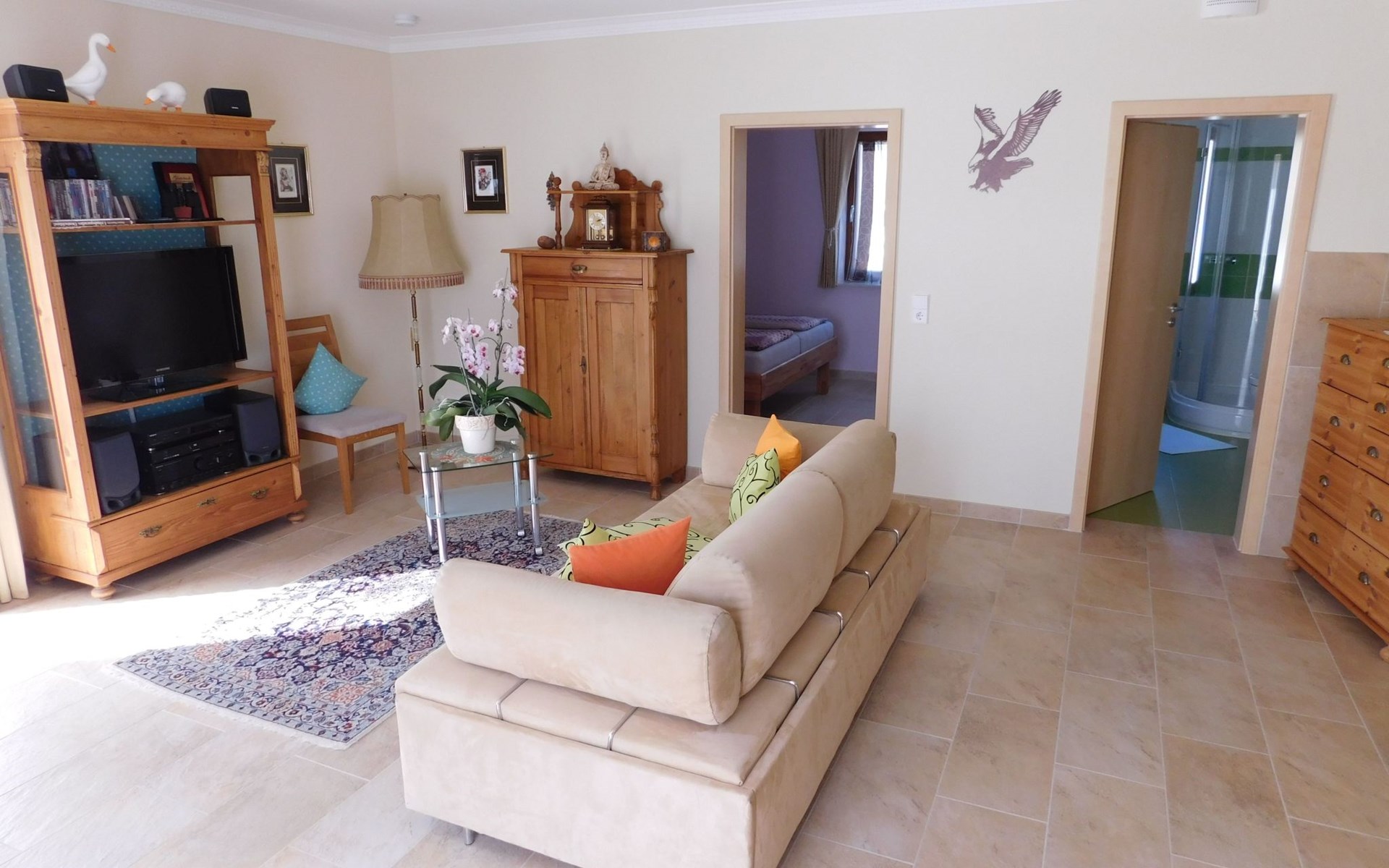 40'' flat screen TV and DVD / CD player, hi-fi system with radio, telephone and fast WLAN.
